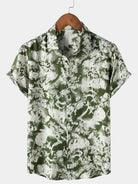 Chemise Homme à Boutons Manches Courtes à Motif Botanique Abstrait