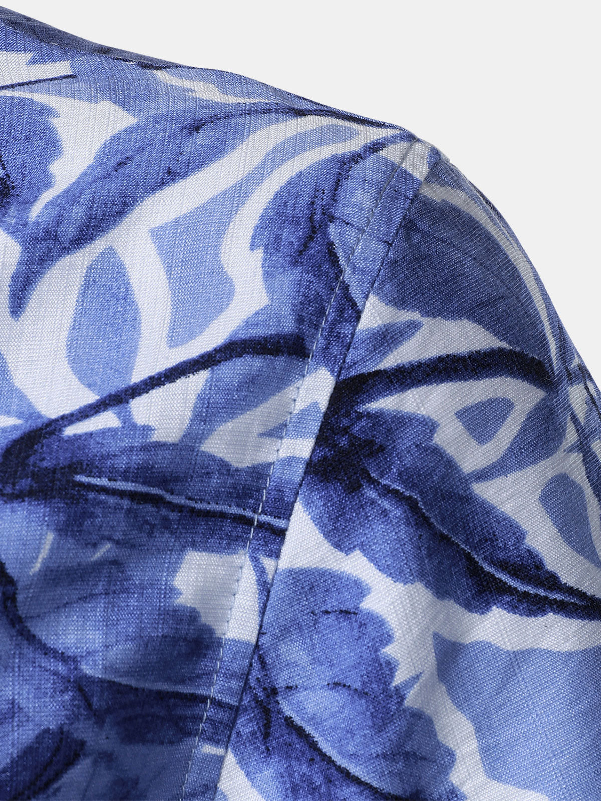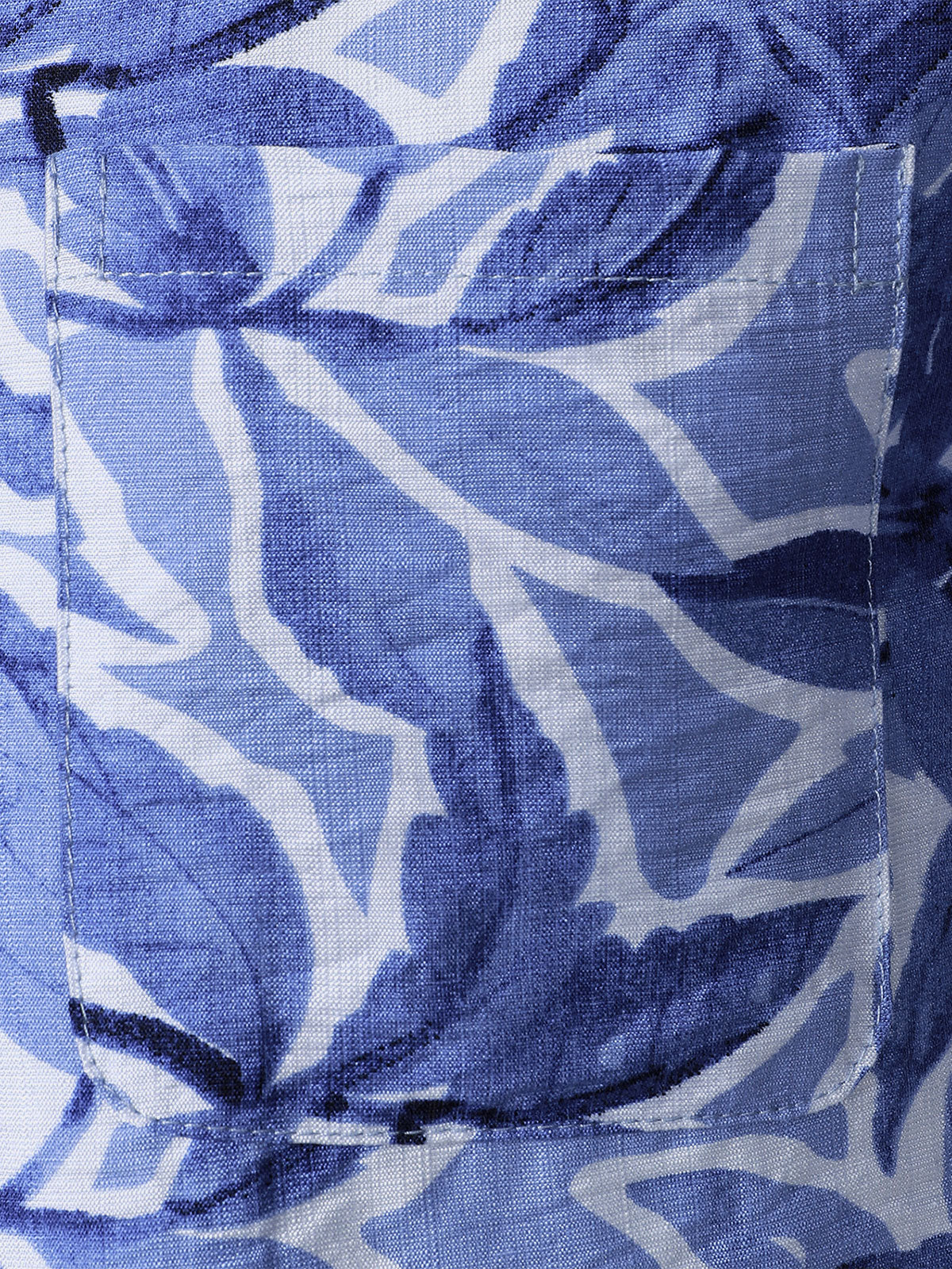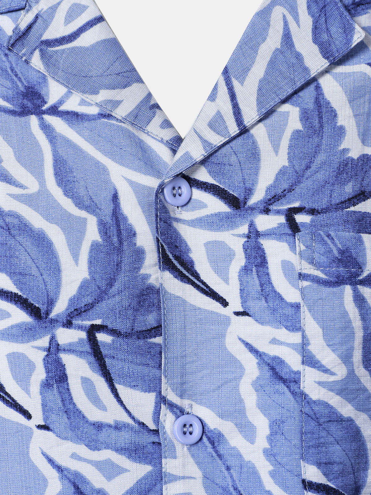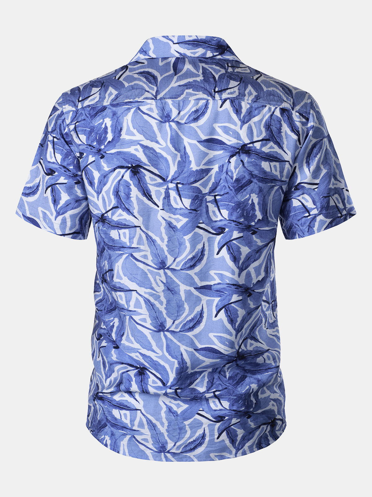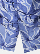 Chemise Homme à Boutons Manches Courtes à Imprimé Tropical Bleu avec Poche Style Resort