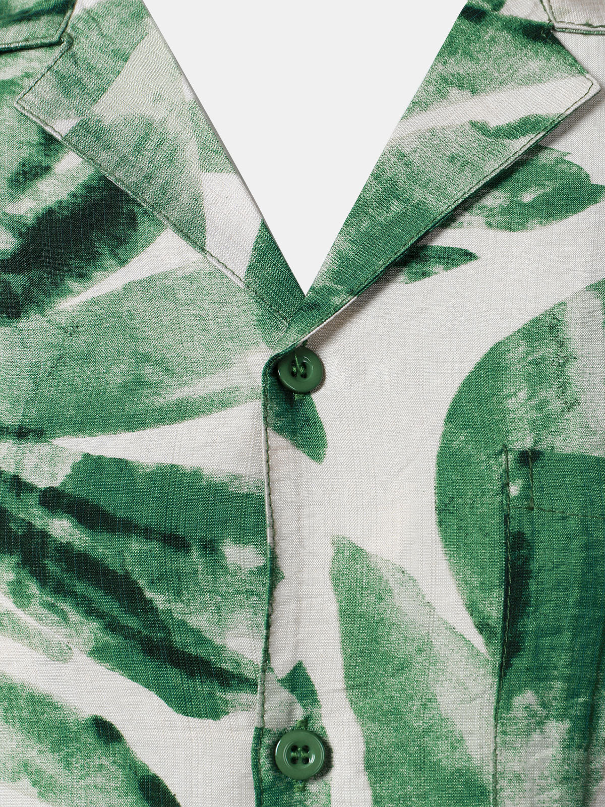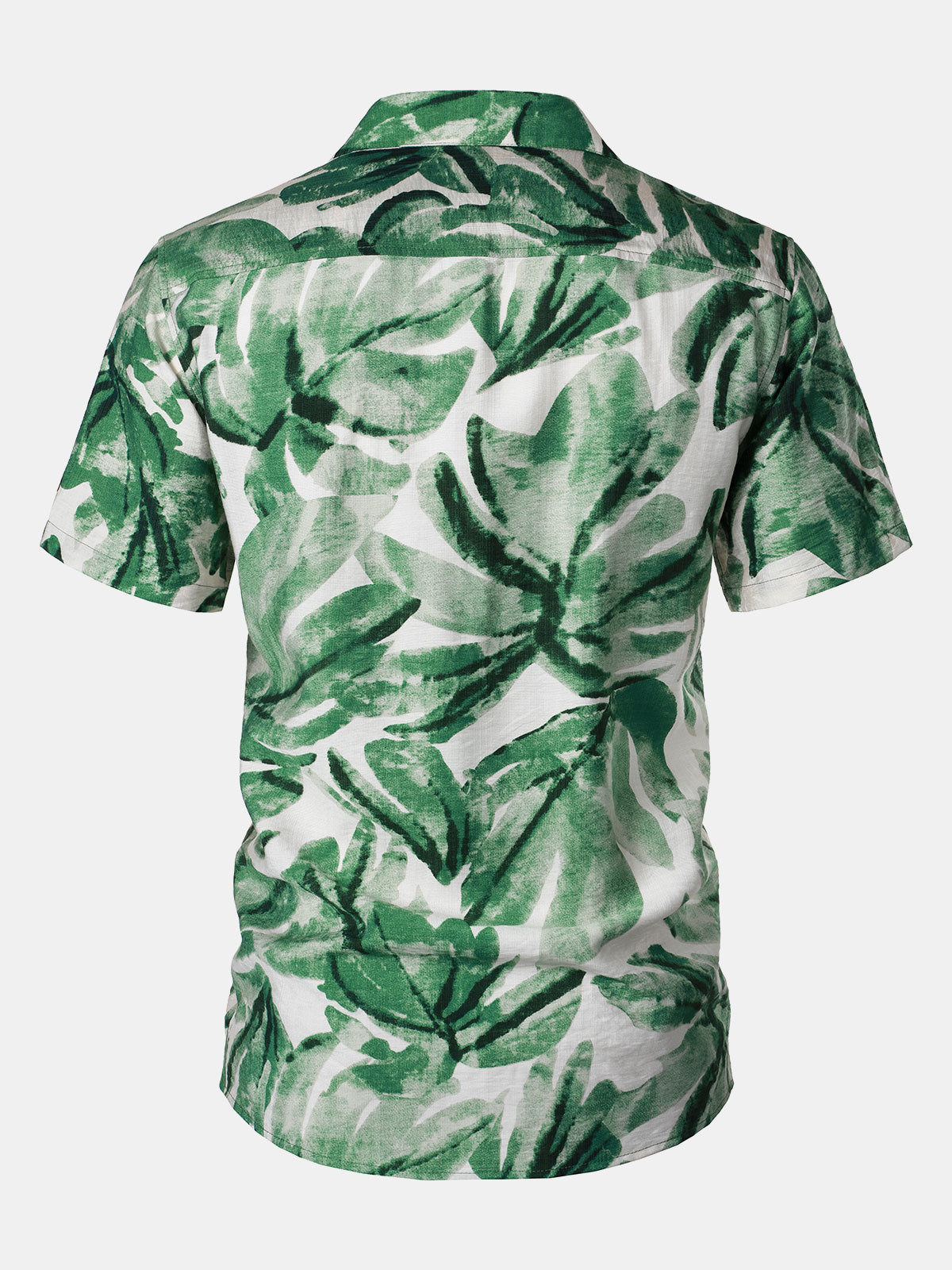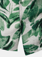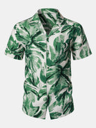 Chemise Homme à Boutons Manches Courtes à Imprimé Feuilles Tropicales Vert avec Poche Style Hawaïen