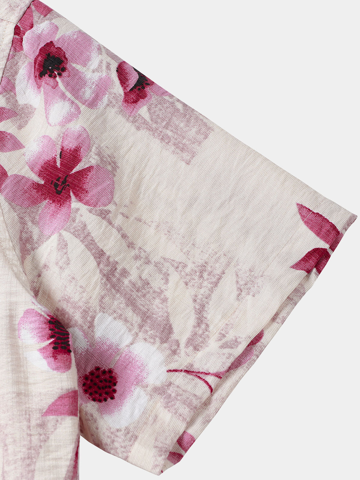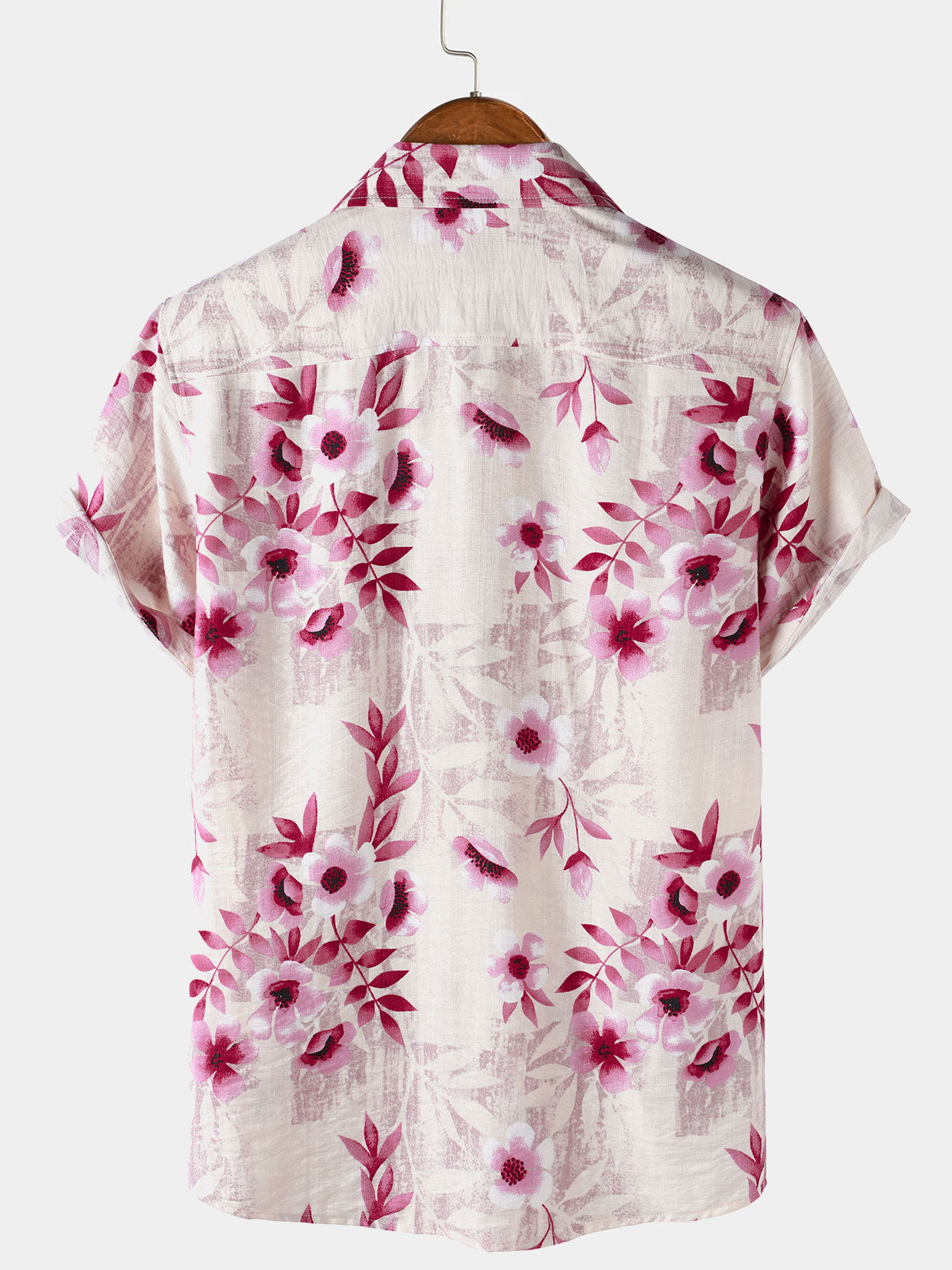 Chemise Homme Rose à Fleurs de Vacances Manches Courtes Boutonnée