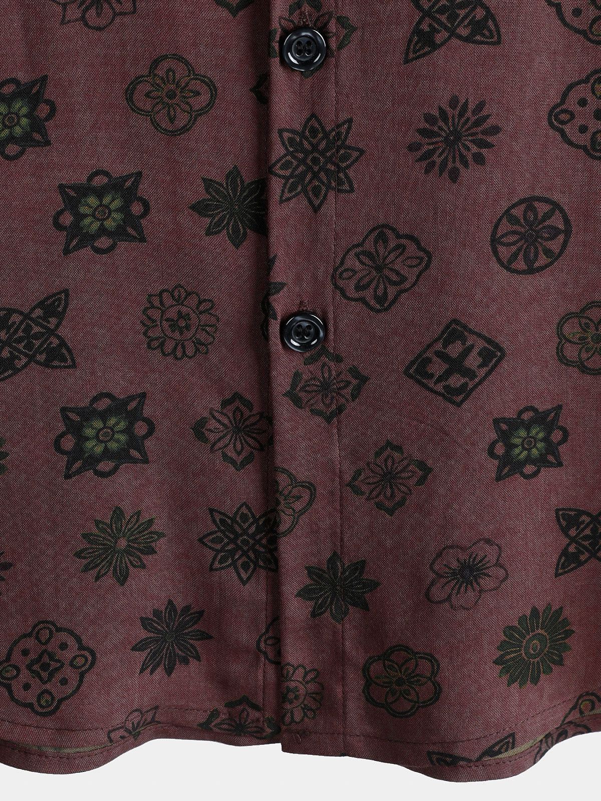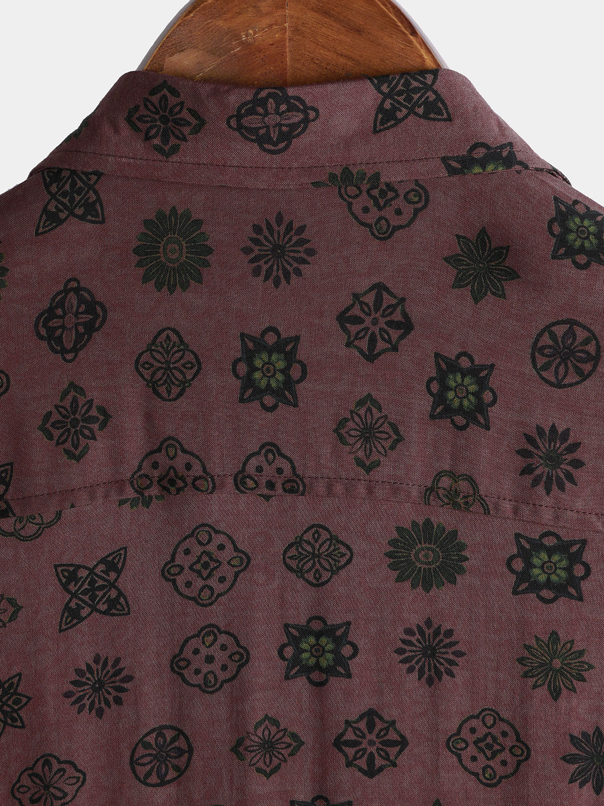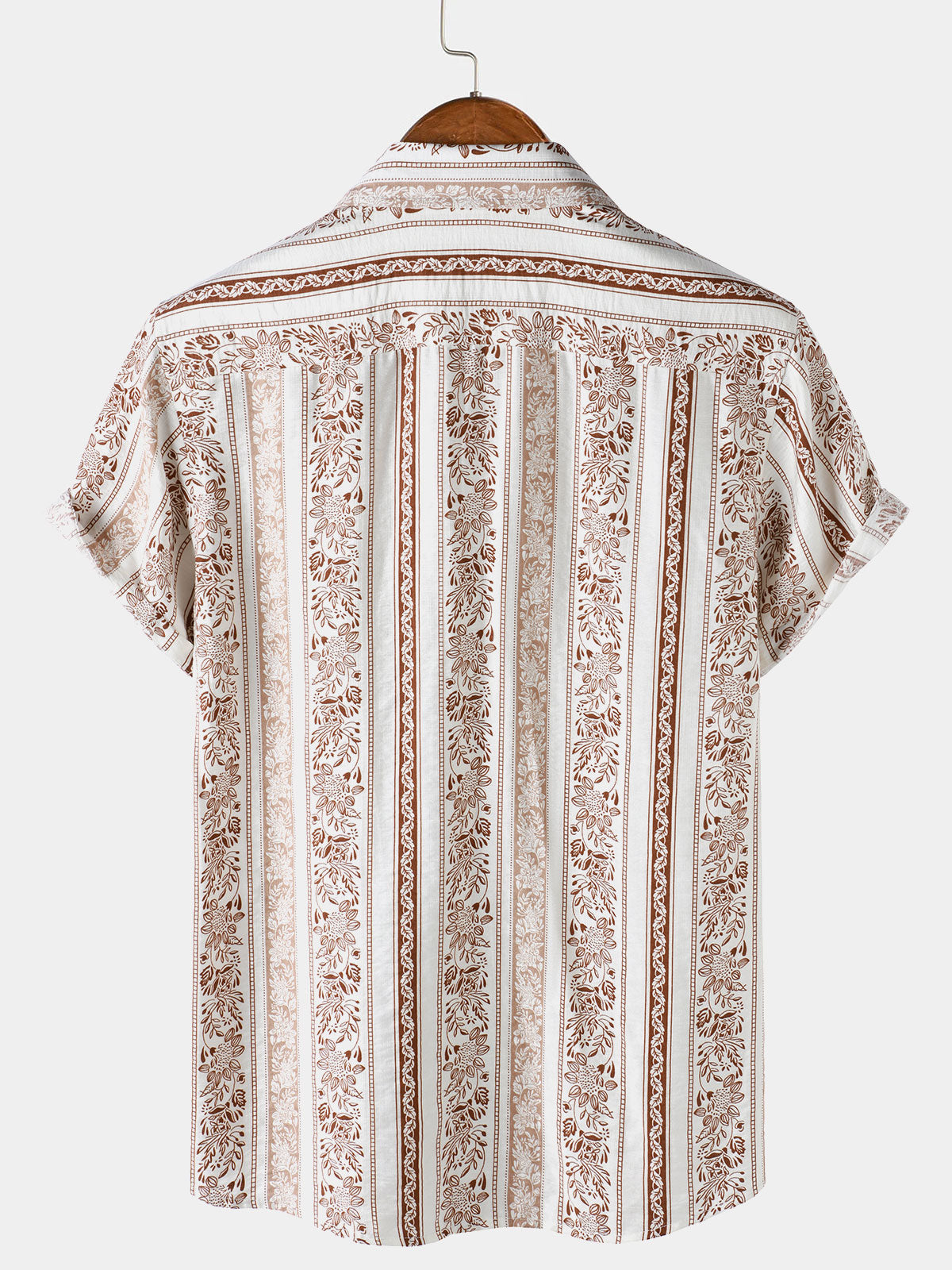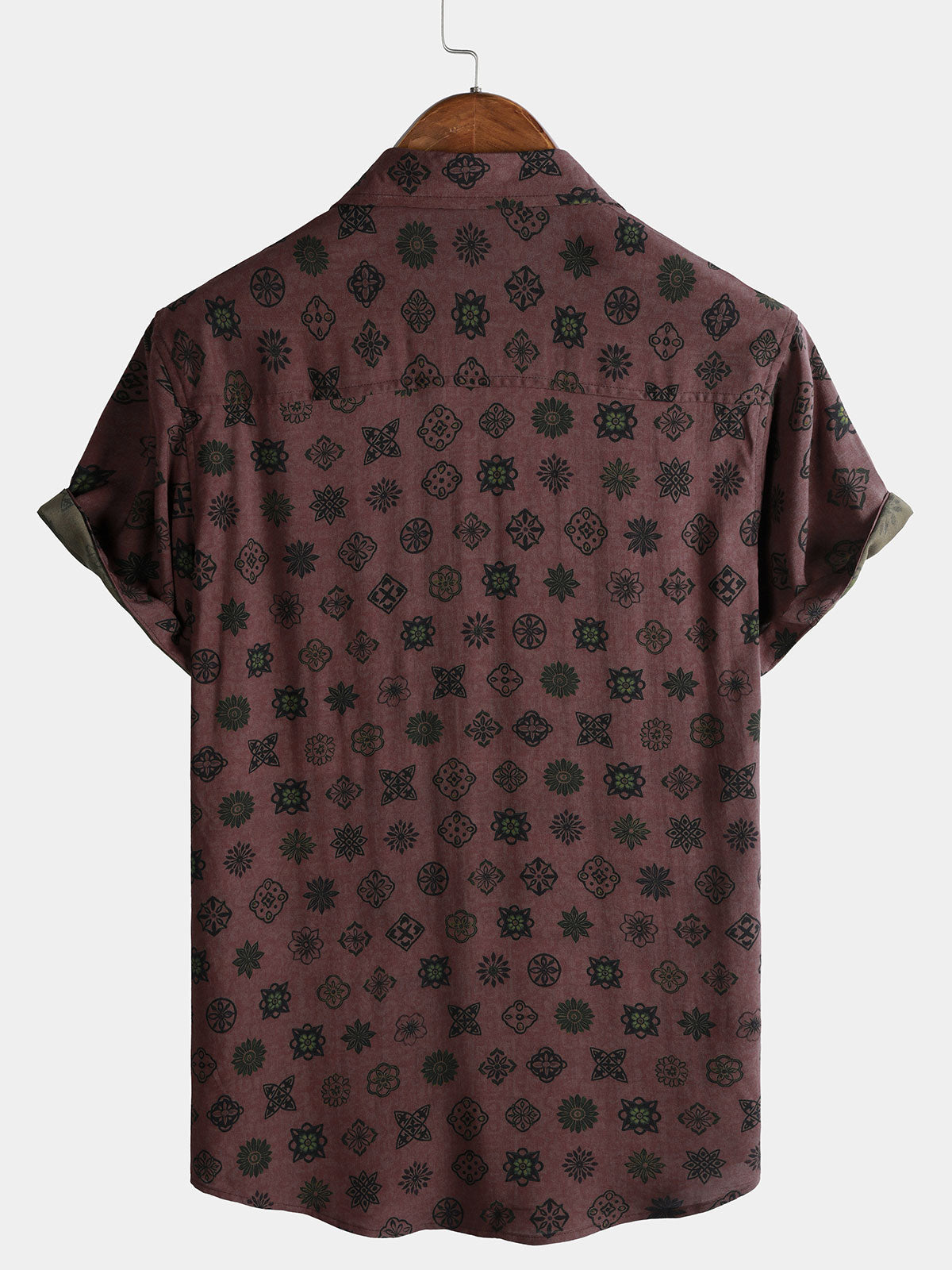 Chemise Homme Vintage à Imprimé Ethnique Manches Courtes