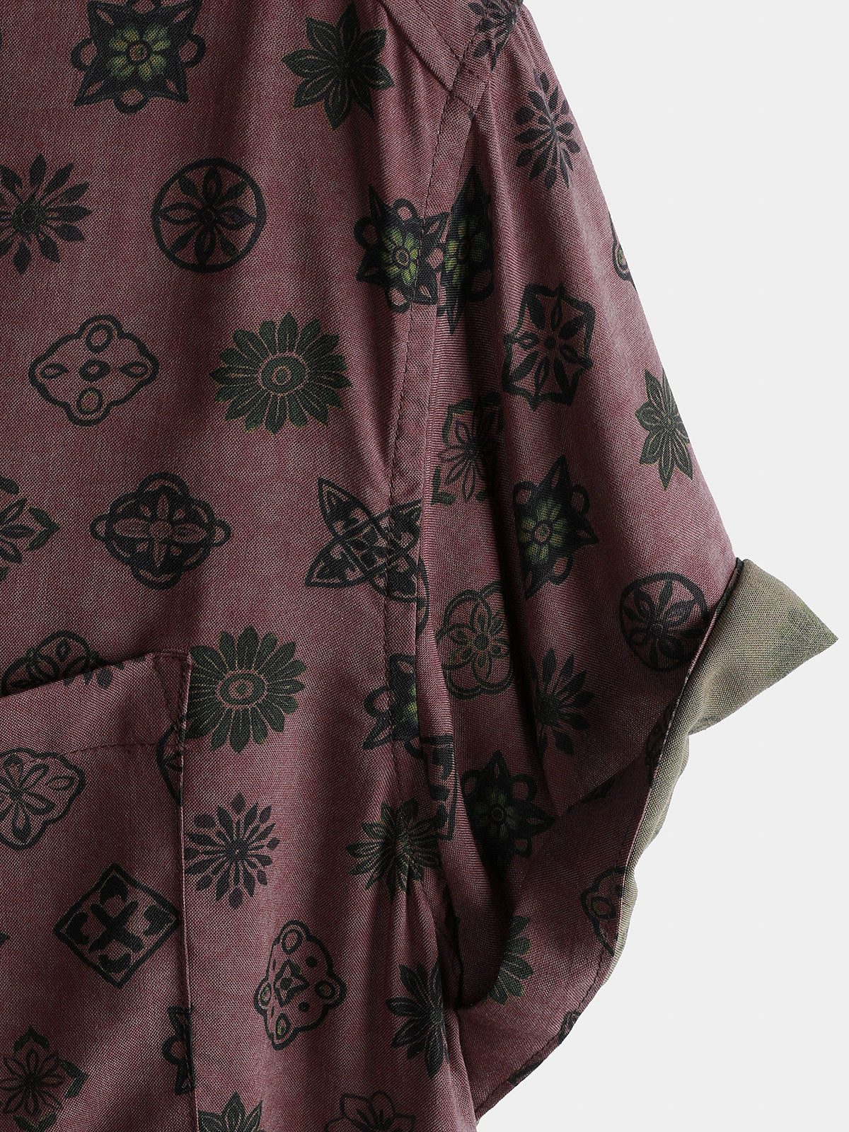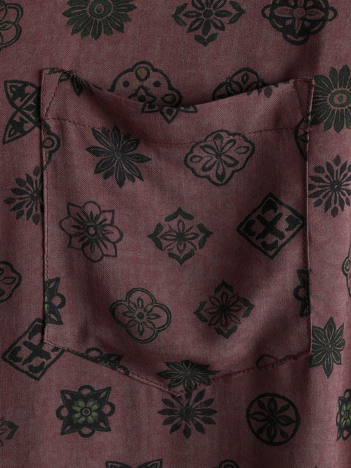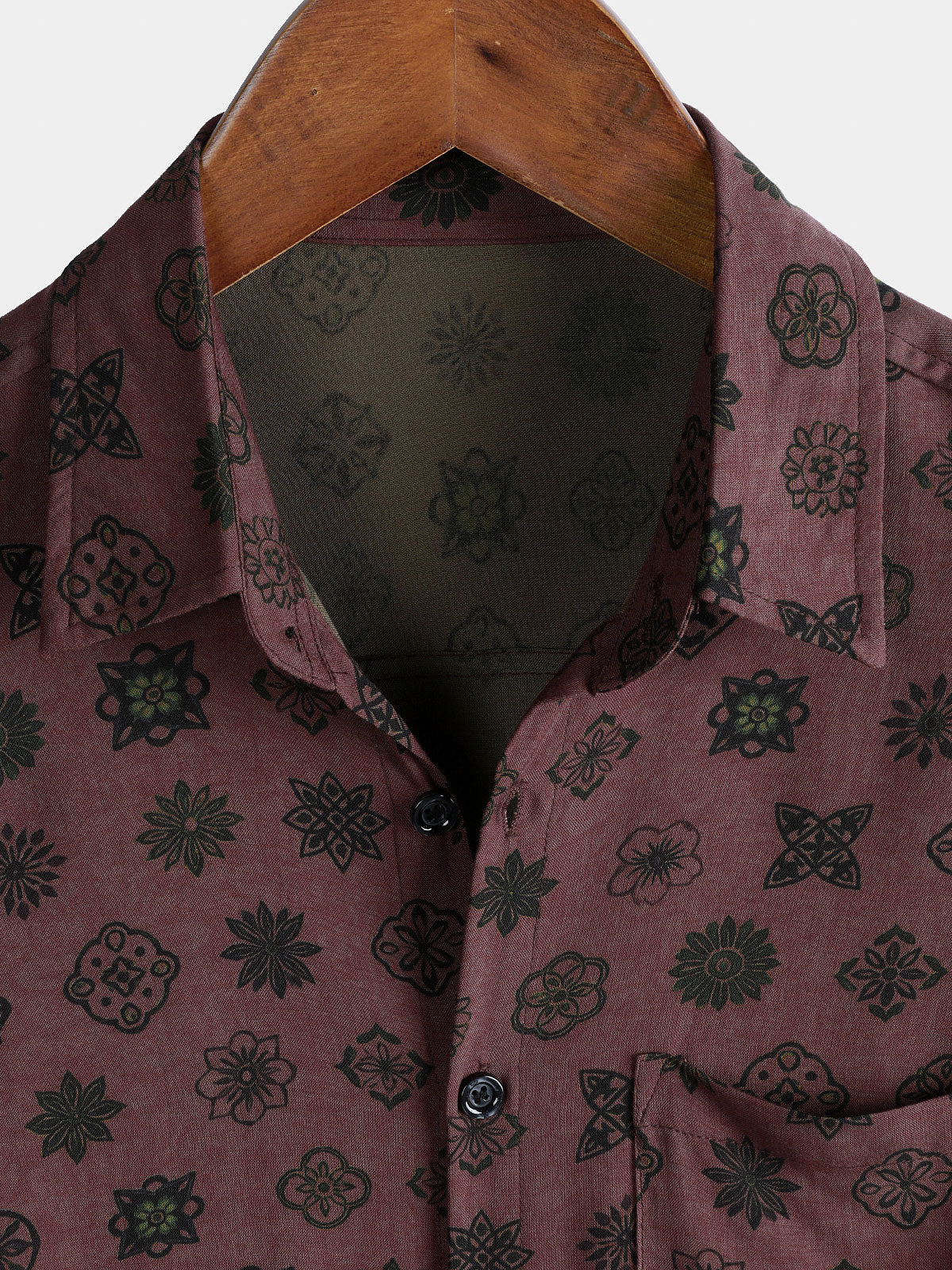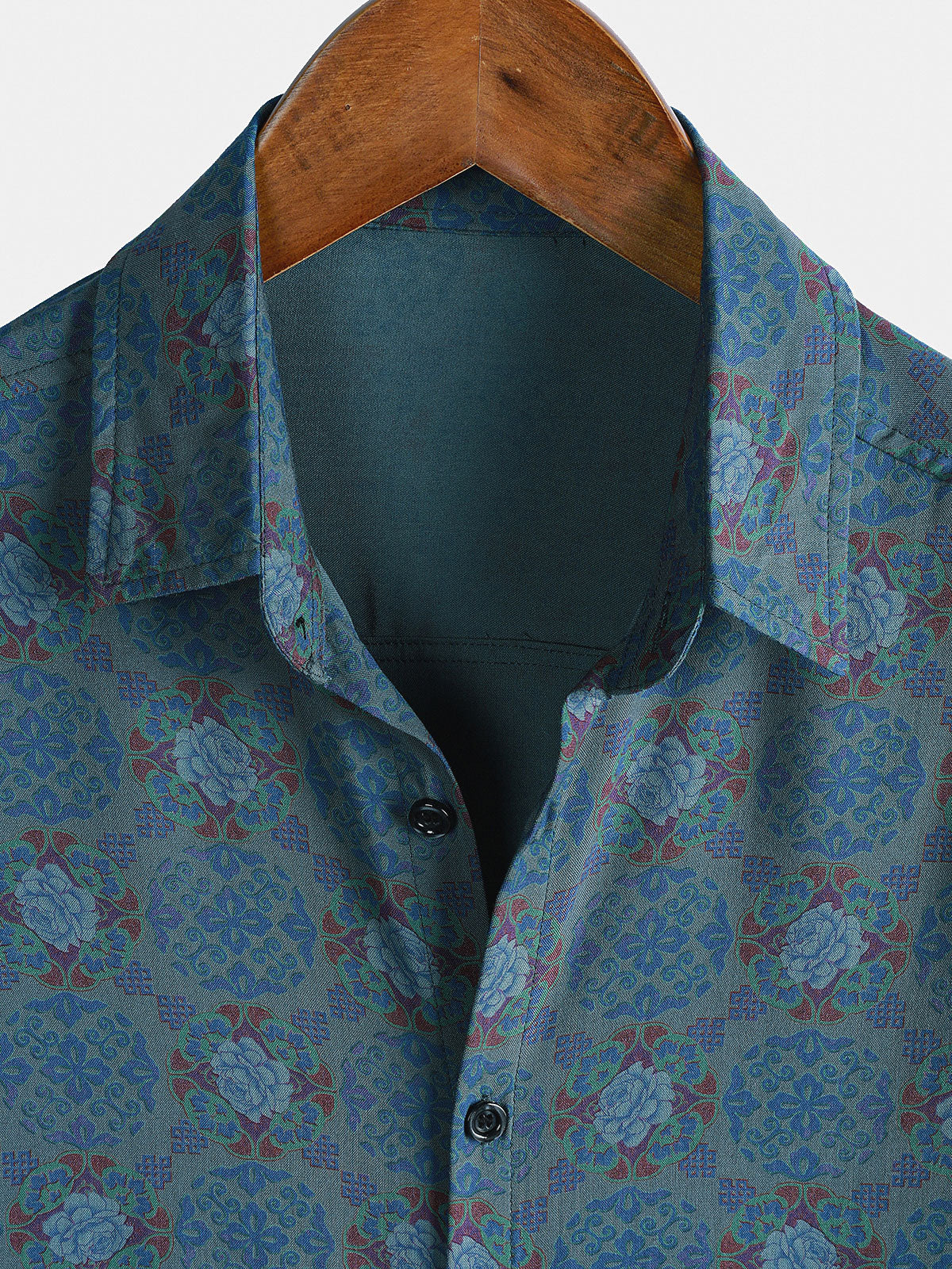Chemise Homme Vintage à Imprimé Ethnique Manches Courtes