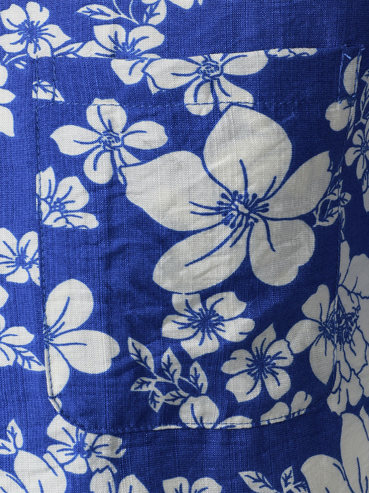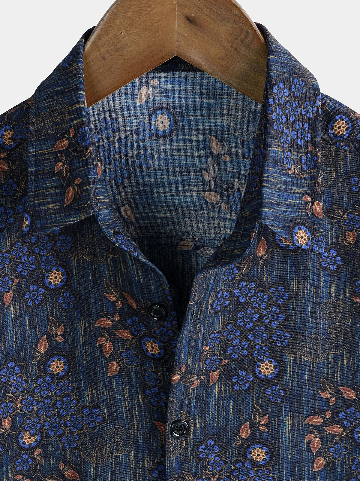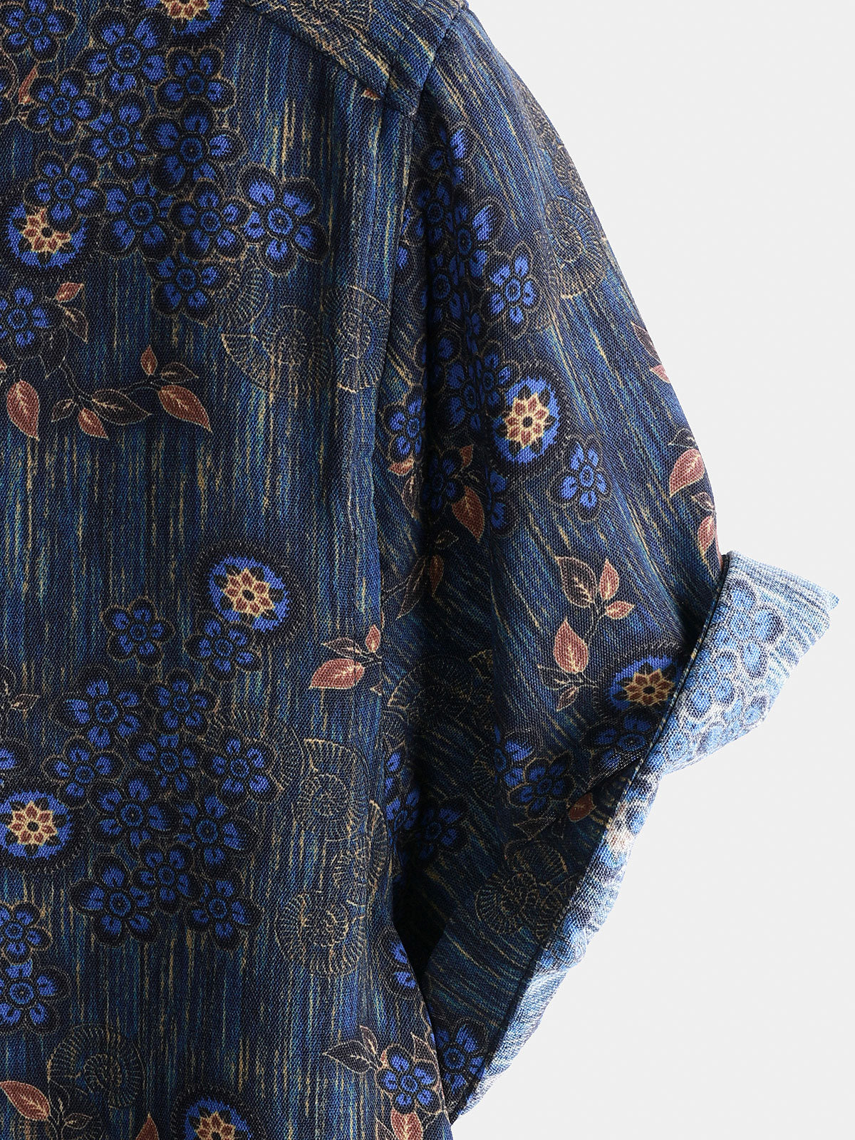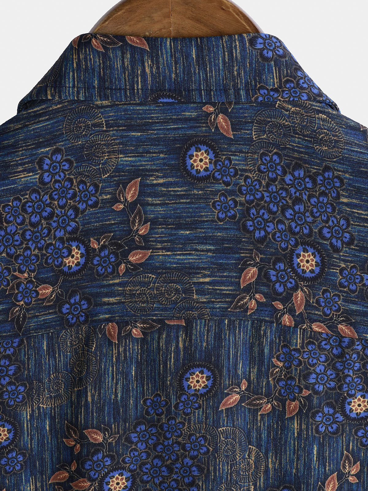Chemise Homme Hawaïenne Vintage Bleu Foncé à Imprimé Floral avec Poche Poitrine Manches Courtes