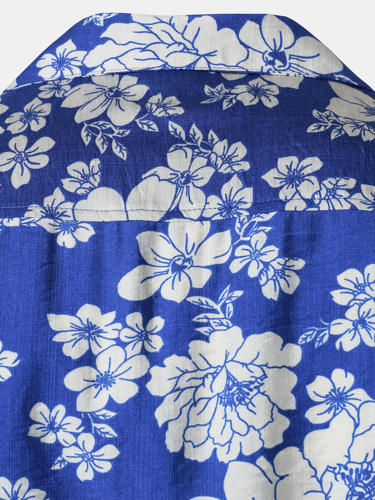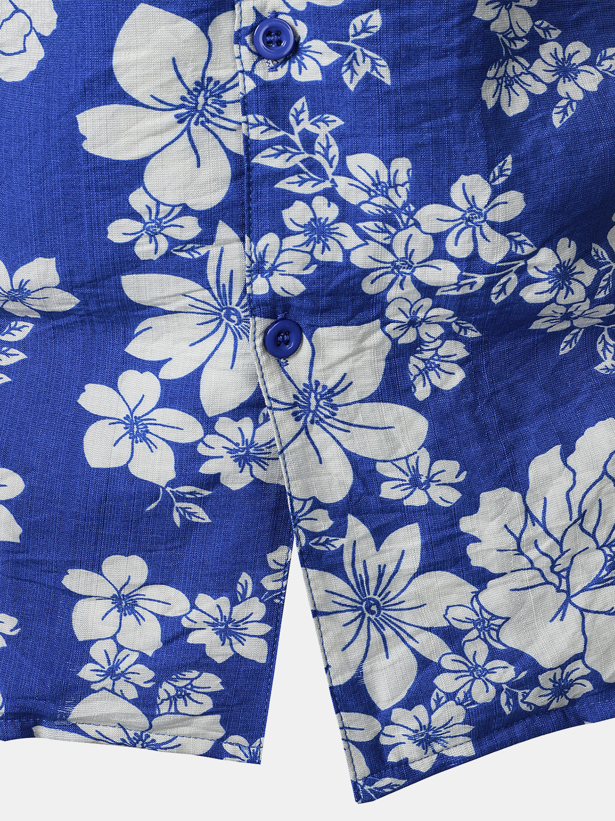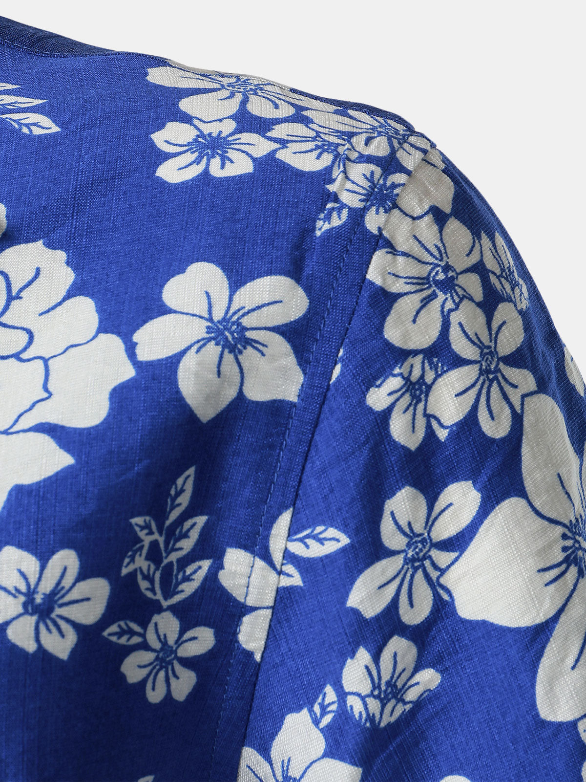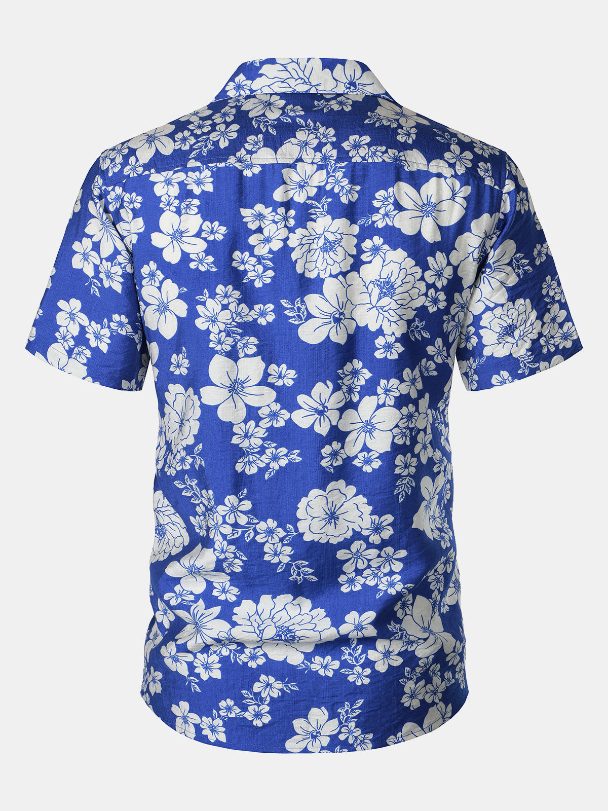 Chemise Homme Hawaïenne Bleue à Imprimé Floral en Coton Léger et Respirant avec Poche Poitrine Manches Courtes