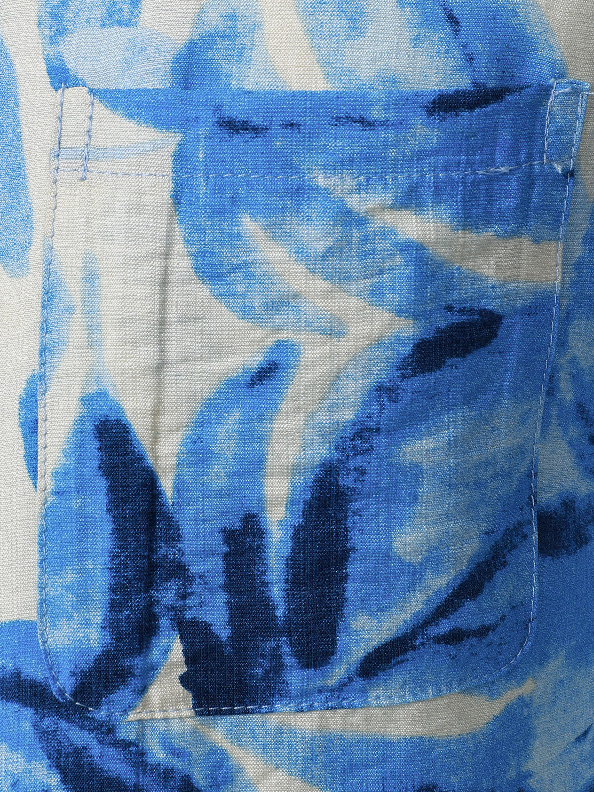Chemise Homme à Boutons Manches Courtes à Imprimé Tropical Bleu avec Poche Style Resort