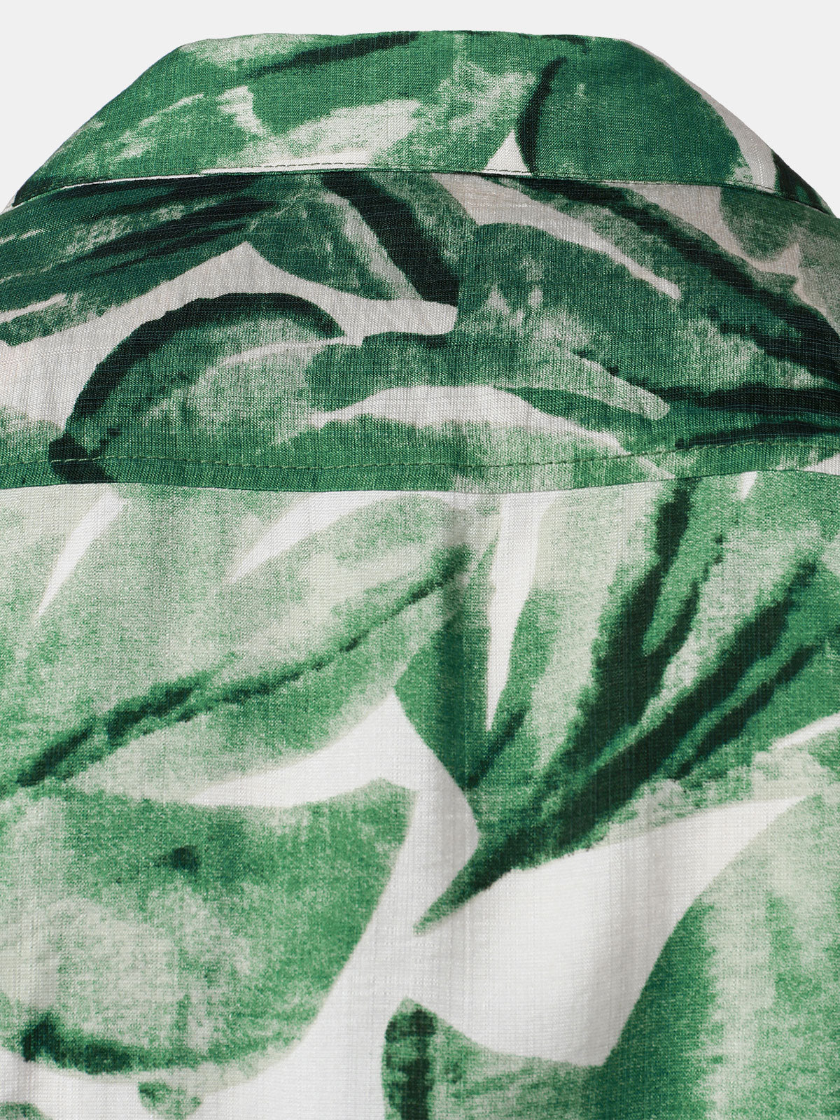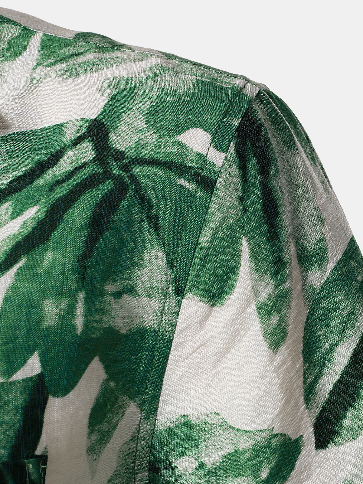 Chemise Homme à Boutons Manches Courtes à Imprimé Feuilles Tropicales Vert avec Poche Style Hawaïen