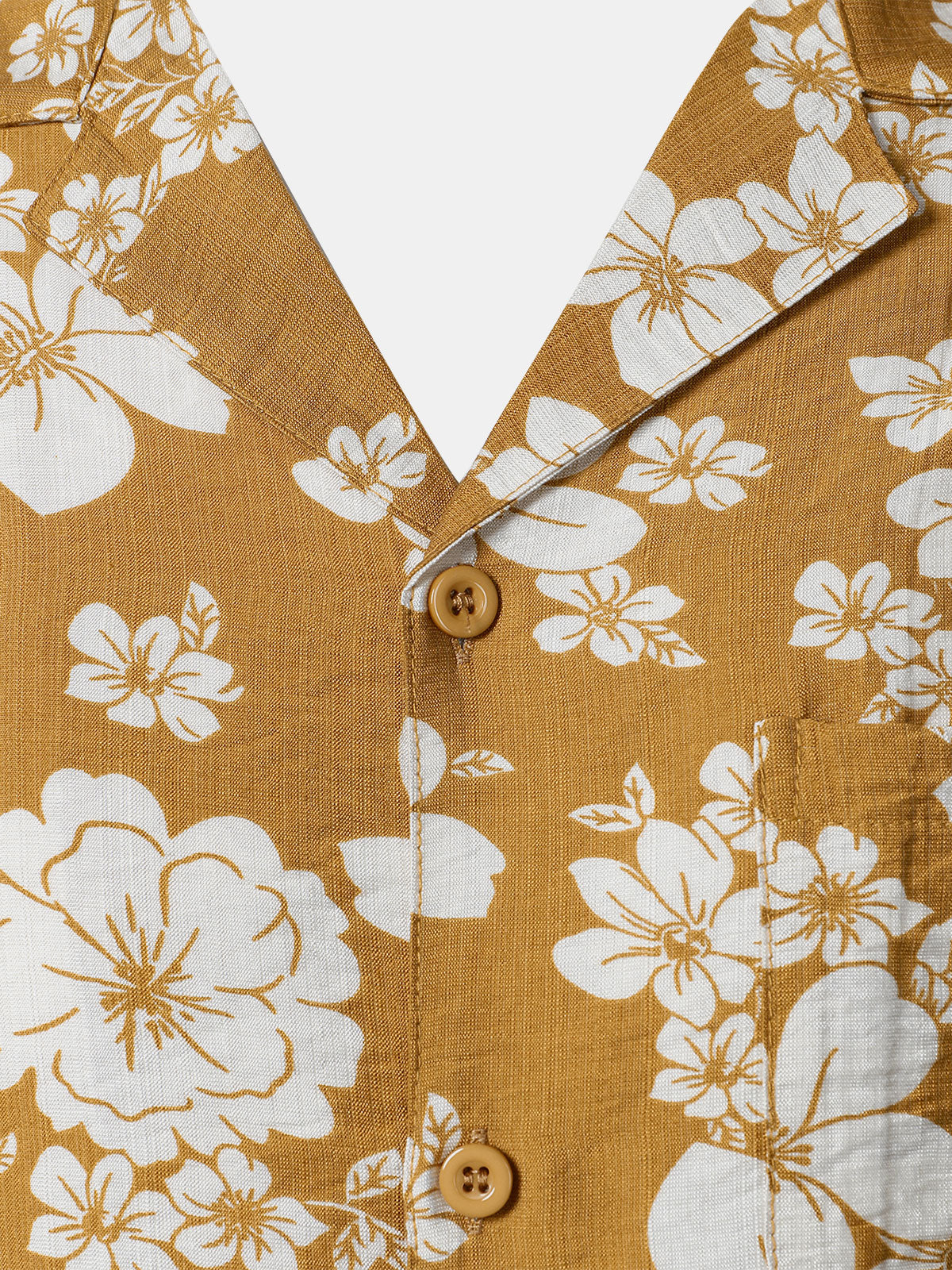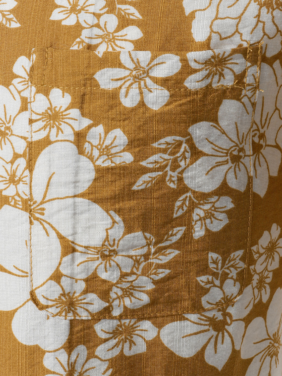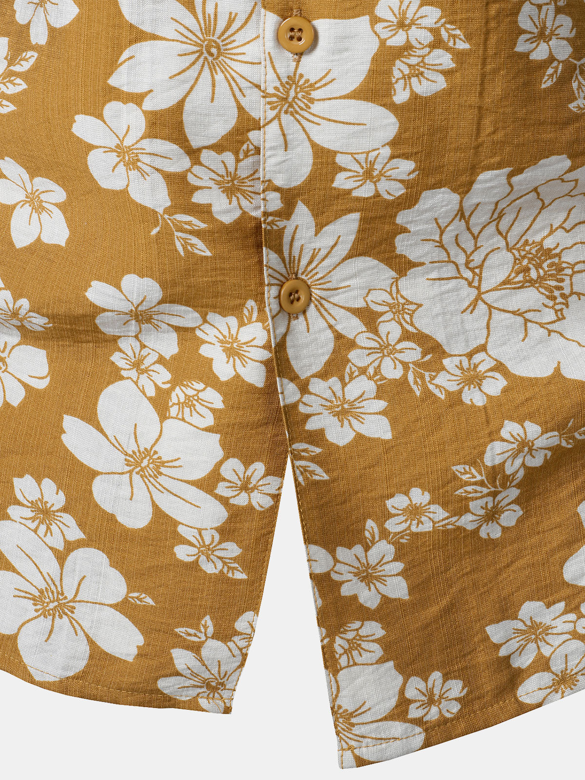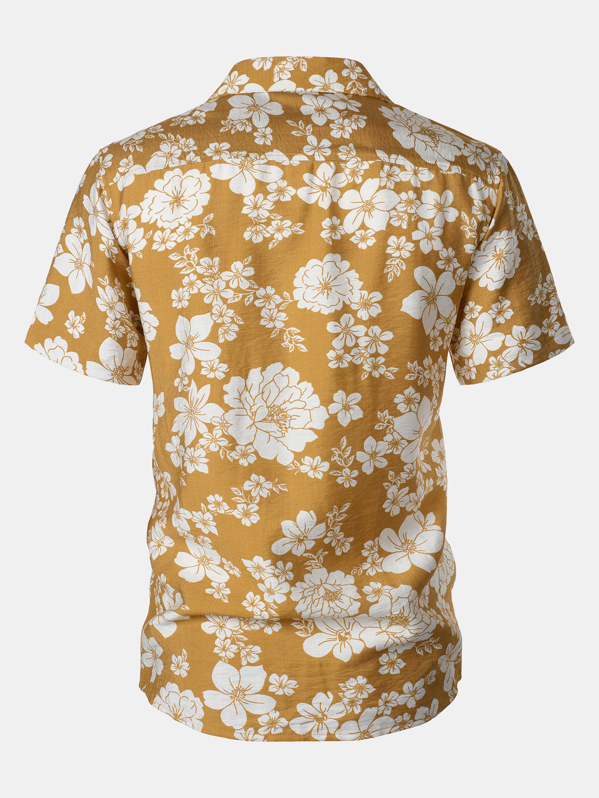 Chemise Homme à Boutons Manches Courtes à Imprimé Floral Jaune avec Poche Style Resort