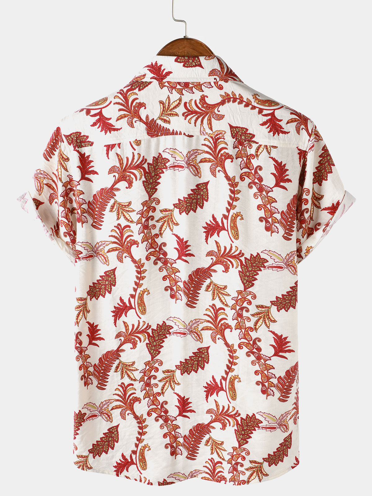 Chemise Homme à Fleurs et Motif Paisley de Vacances Manches Courtes Boutonnée