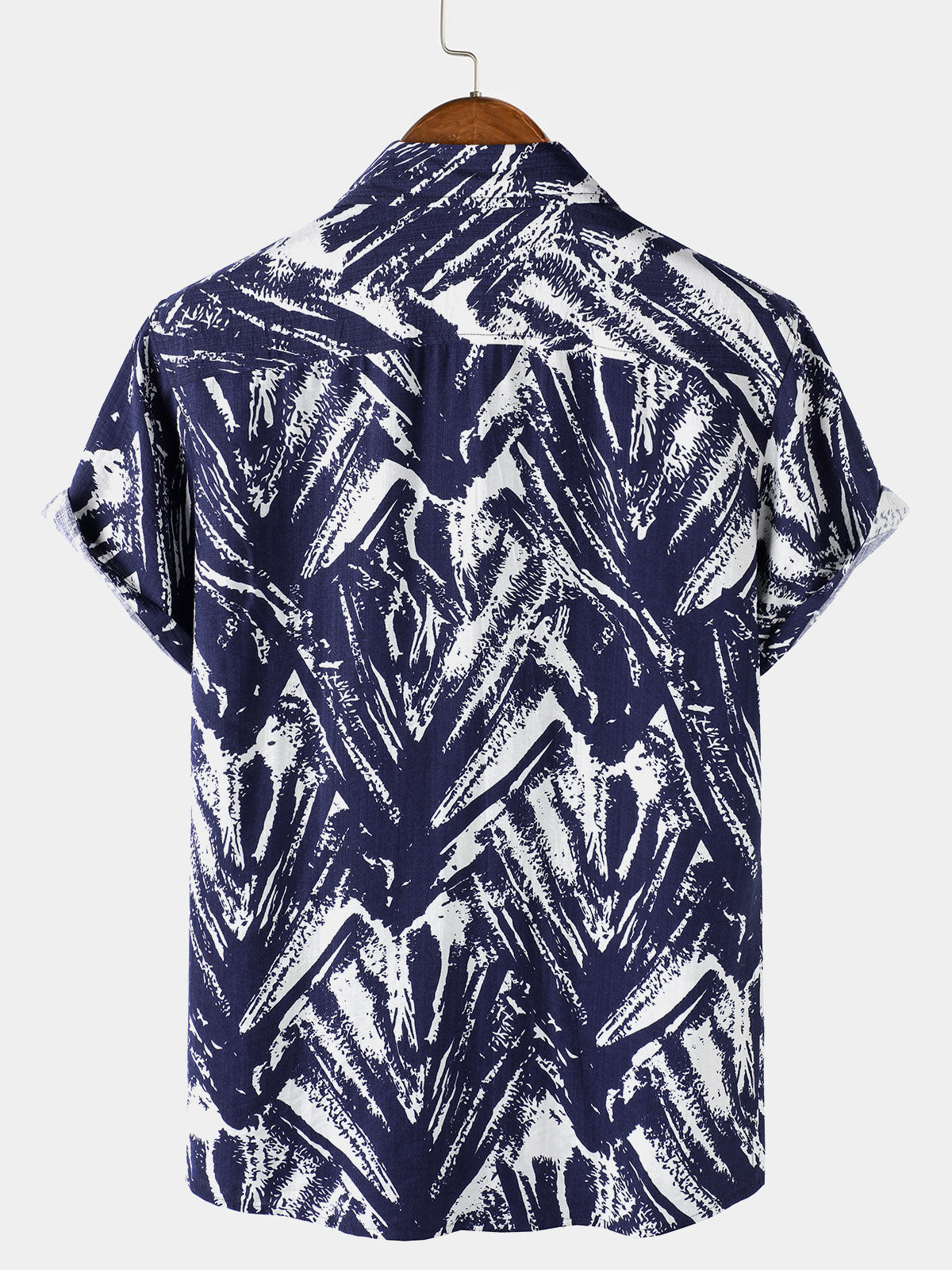 Chemise Homme Bleu Marine à Manches Courtes à Imprimé Géométrique Abstrait