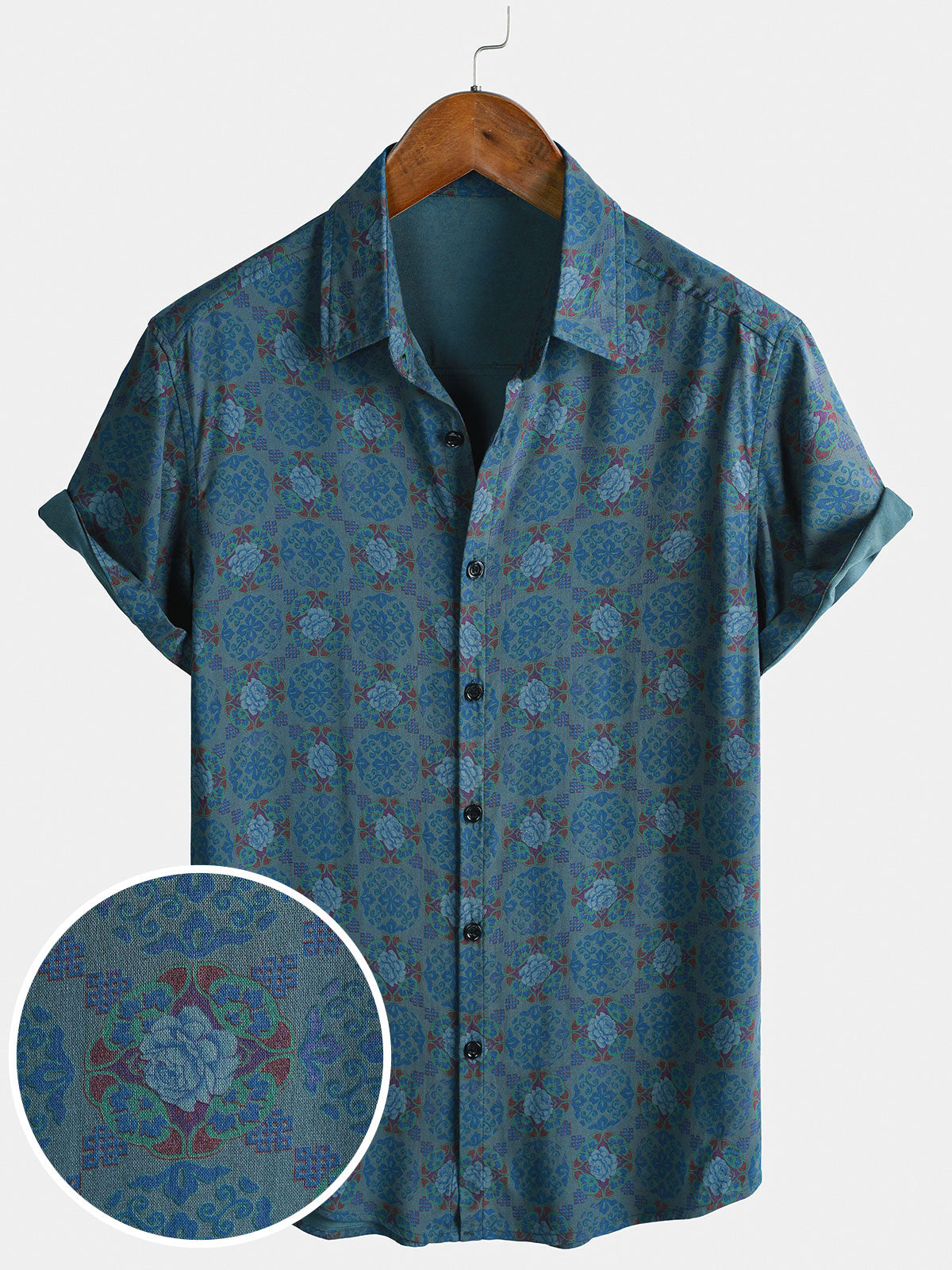 Chemise Homme Décontractée Style Bohème Rétro Manches Courtes