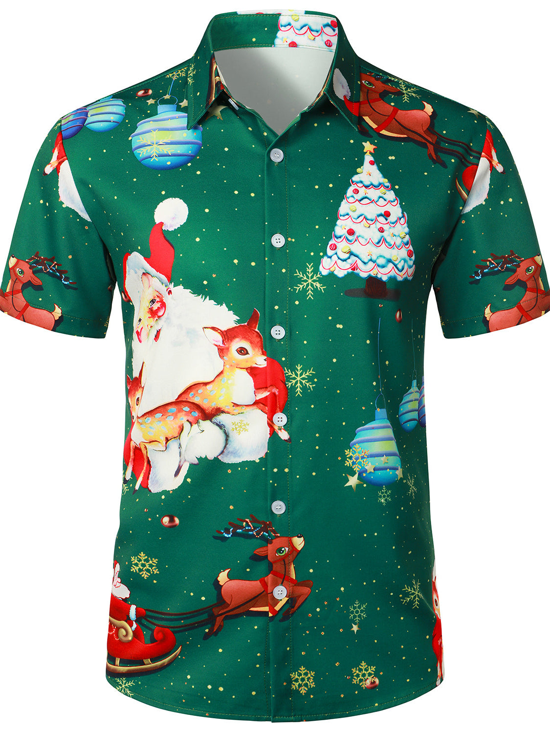 Vert foncé Chemise de Noël à manches courtes drôle pour homme