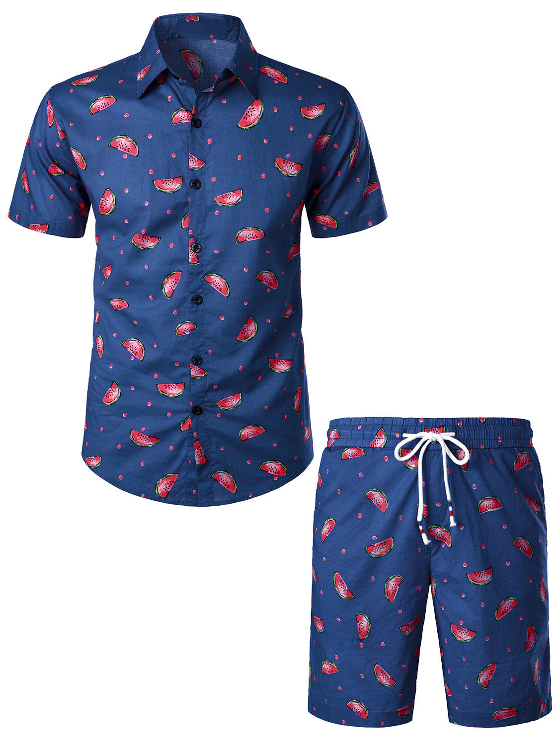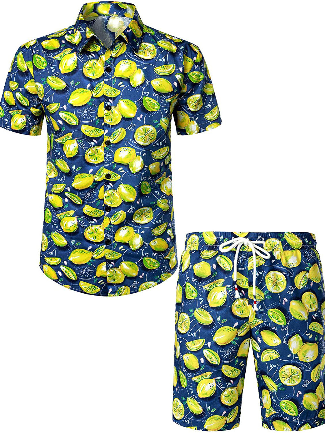Men's Lemon Print Cotton Hawaiian Shirt and Shorts Set