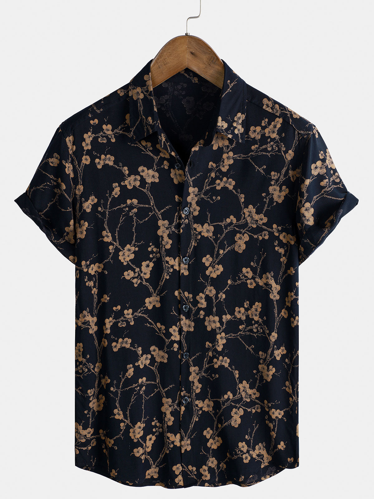 Chemise de plage décontractée à manches courtes en coton à fleurs pour homme