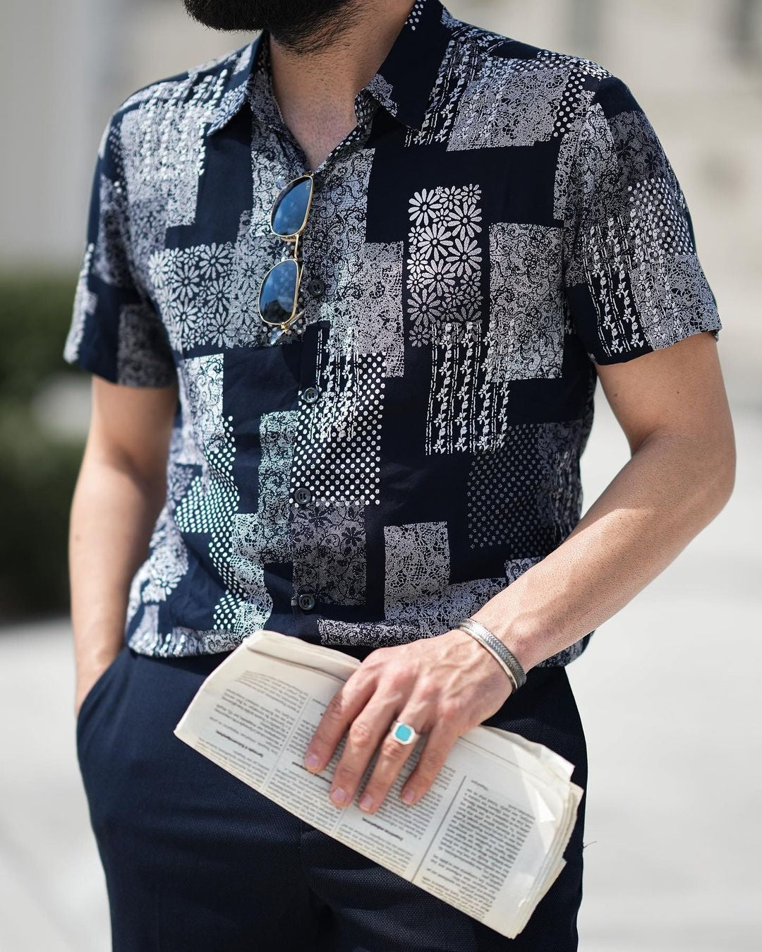 Chemise d'été décontractée à manches courtes pour homme, imprimé patchwork, style vintage