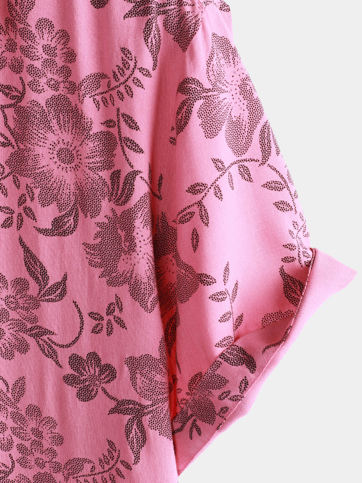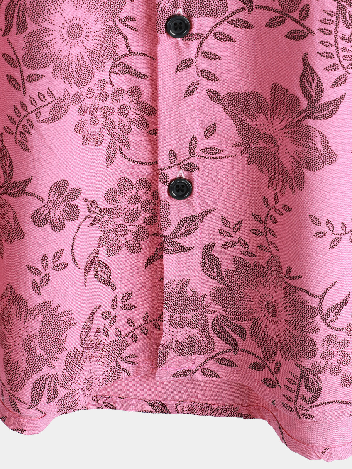 Chemise hawaïenne à manches courtes et boutons respirants à imprimé floral rose pour homme