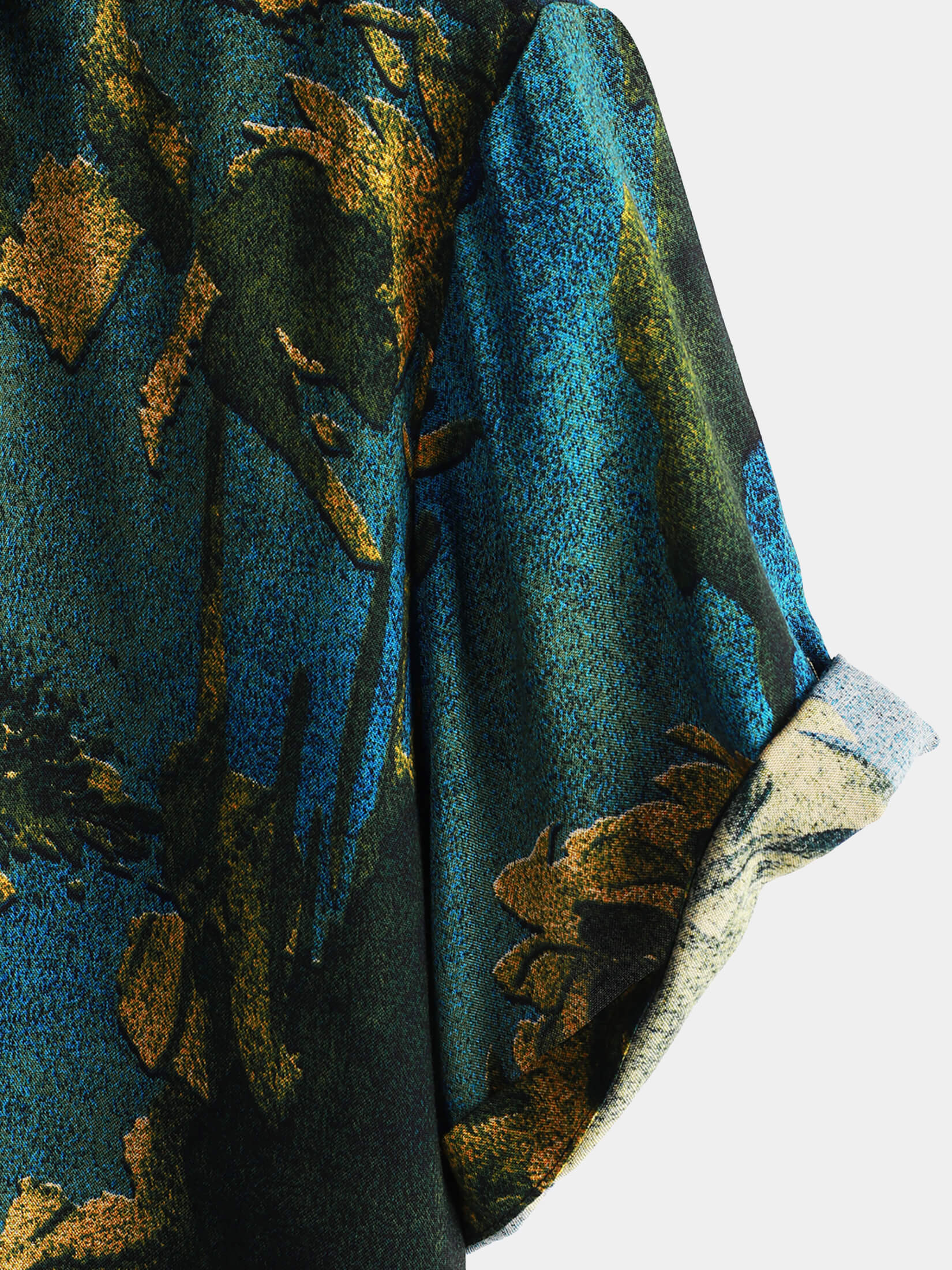 Chemise hawaïenne à manches courtes et boutons pour homme, style vintage, respirante, pour les vacances, été
