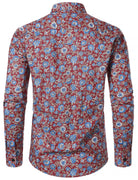 Chemise à manches longues rouge en coton respirant à imprimé floral des années 70 pour homme