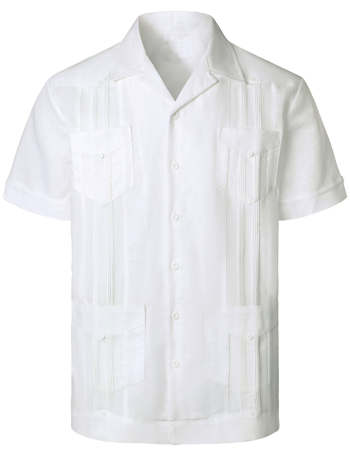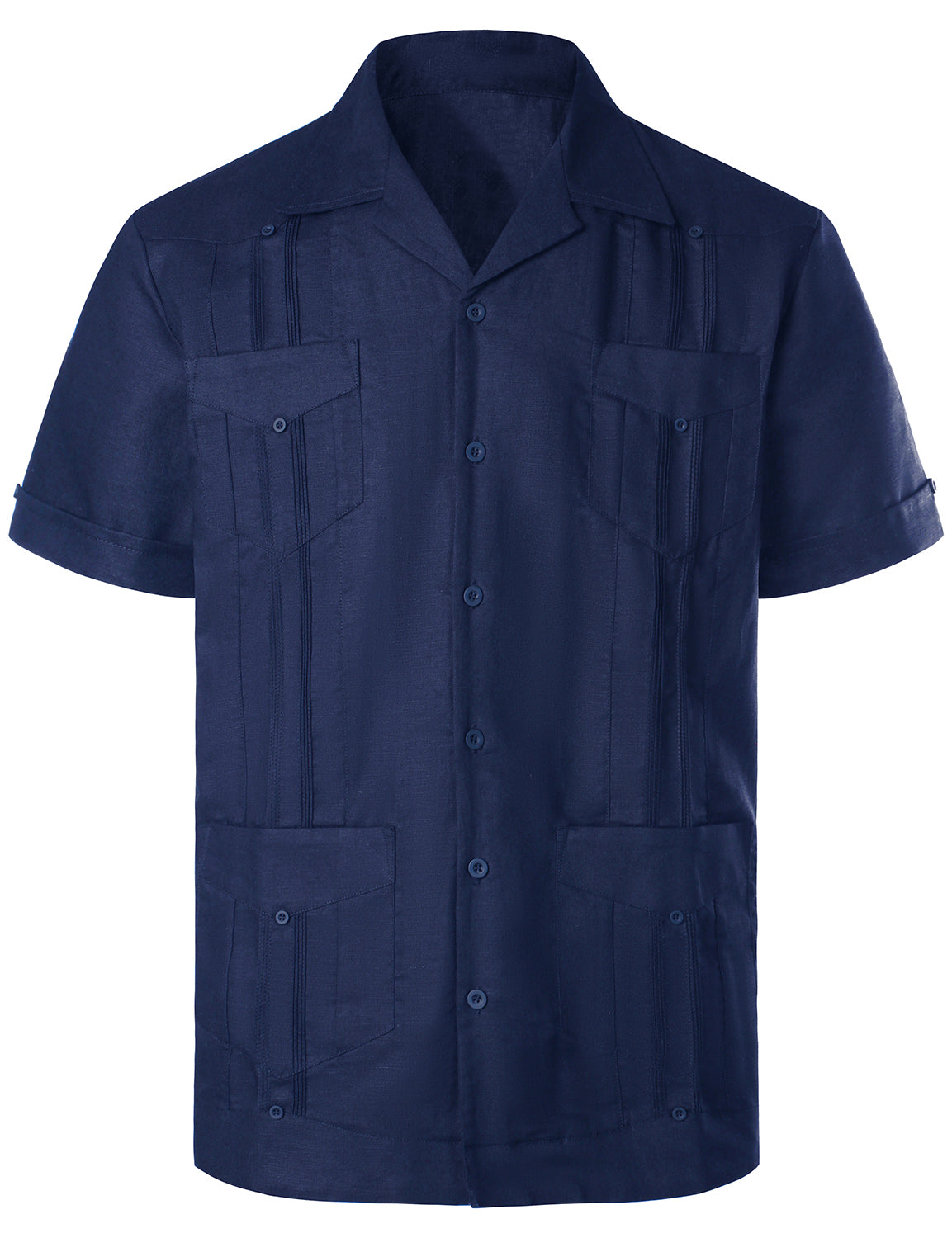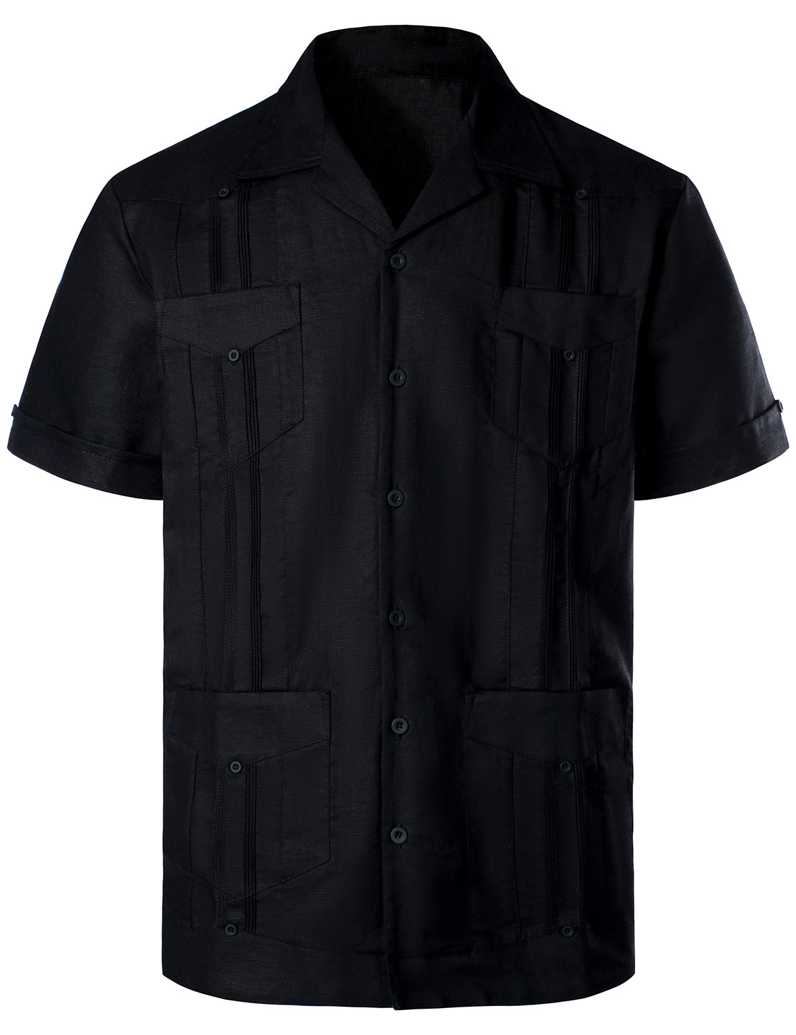 Chemise d'été décontractée à manches courtes en lin cubain Guayabera pour hommes
