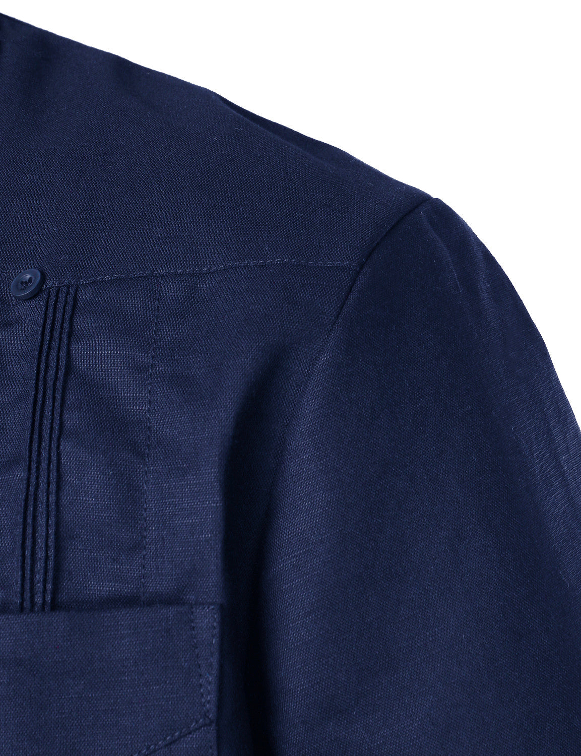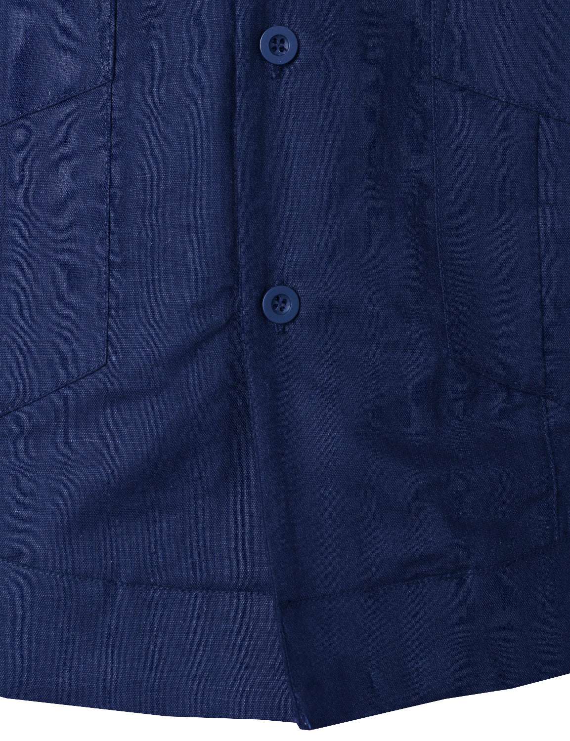 Chemise à manches courtes en coton et lin avec poches poitrine pour hommes