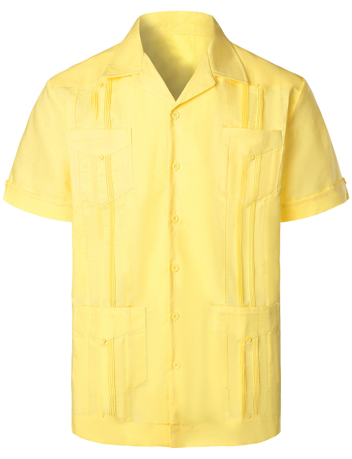 Chemise décontractée à manches courtes pour homme avec poche en lin cubain Guayabera Summer Camp