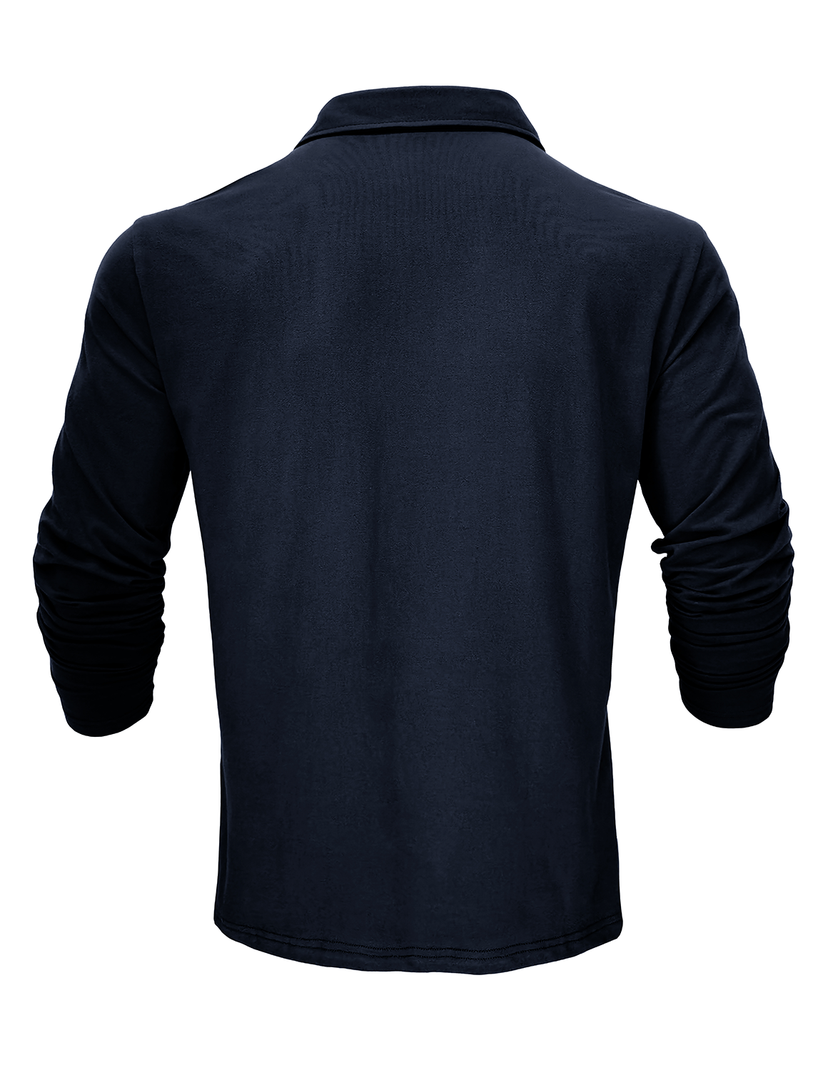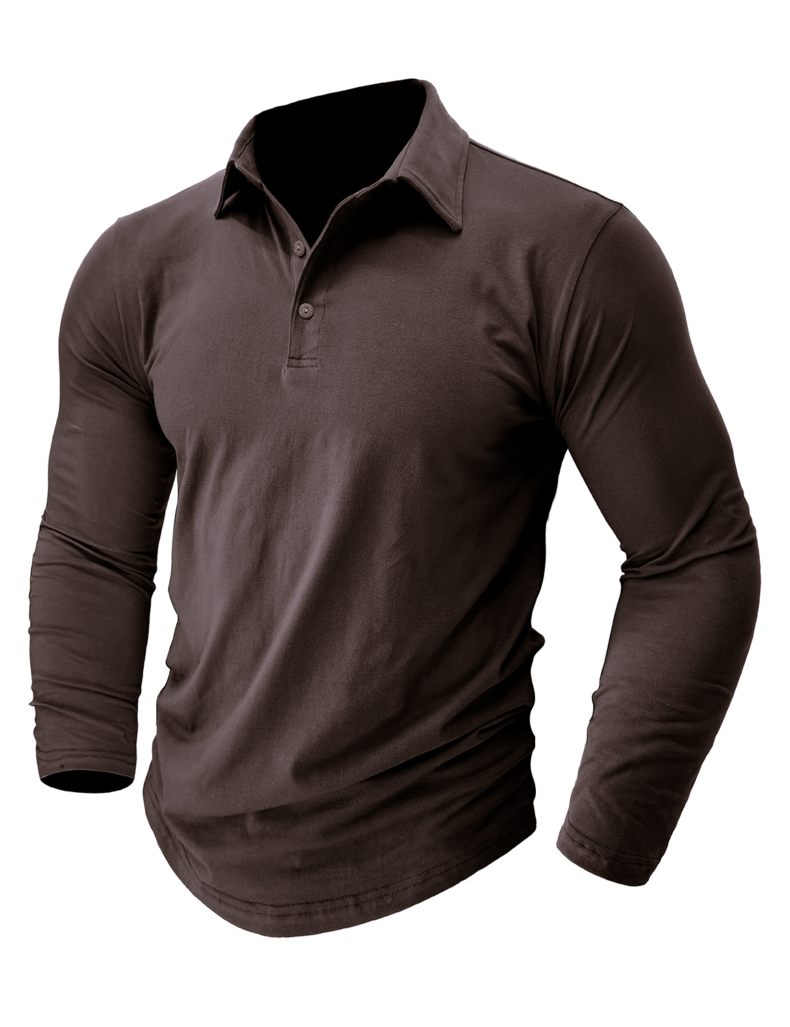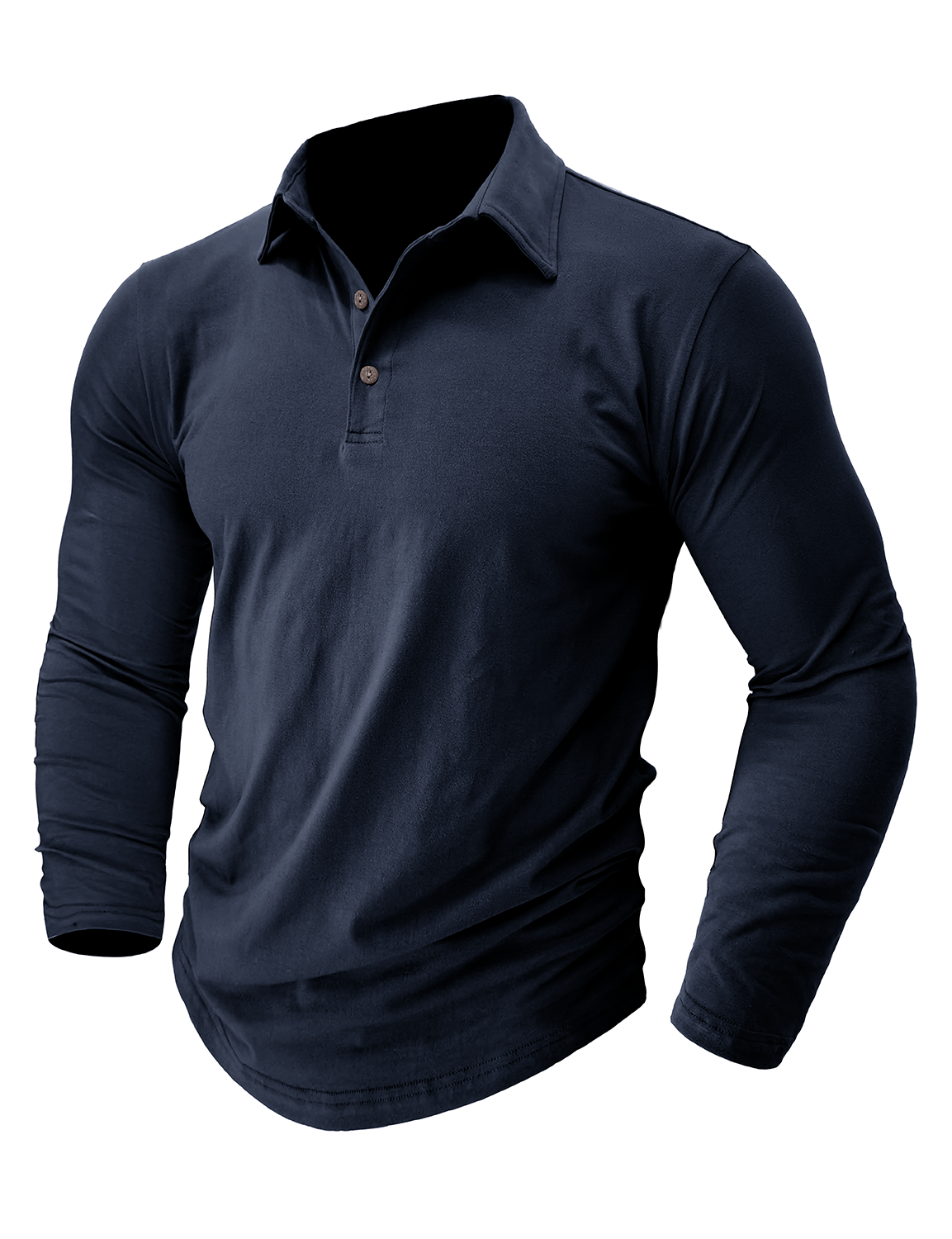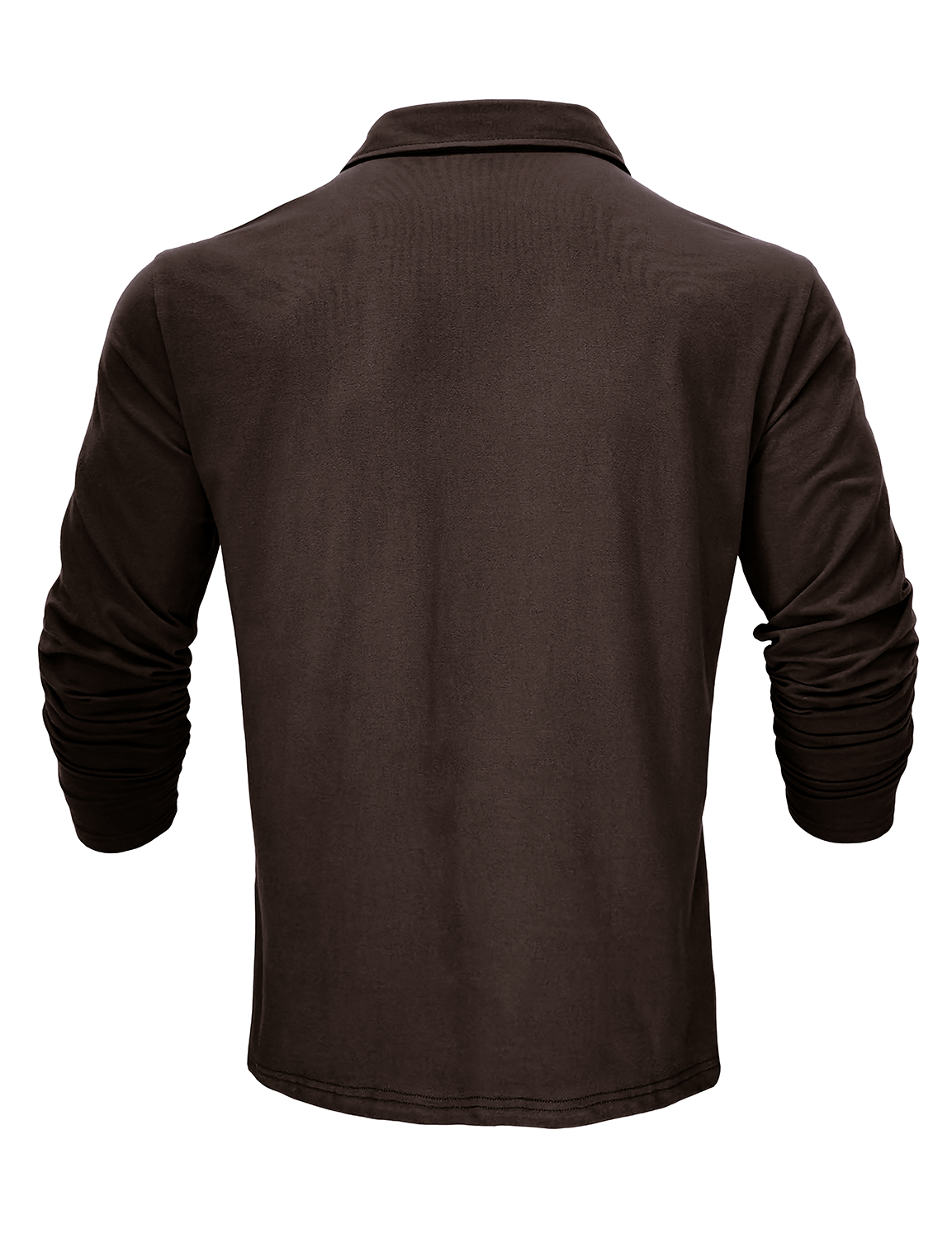 Polo long décontracté en coton avec poche de couleur unie pour hommes