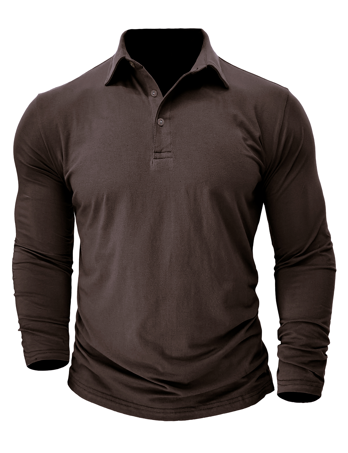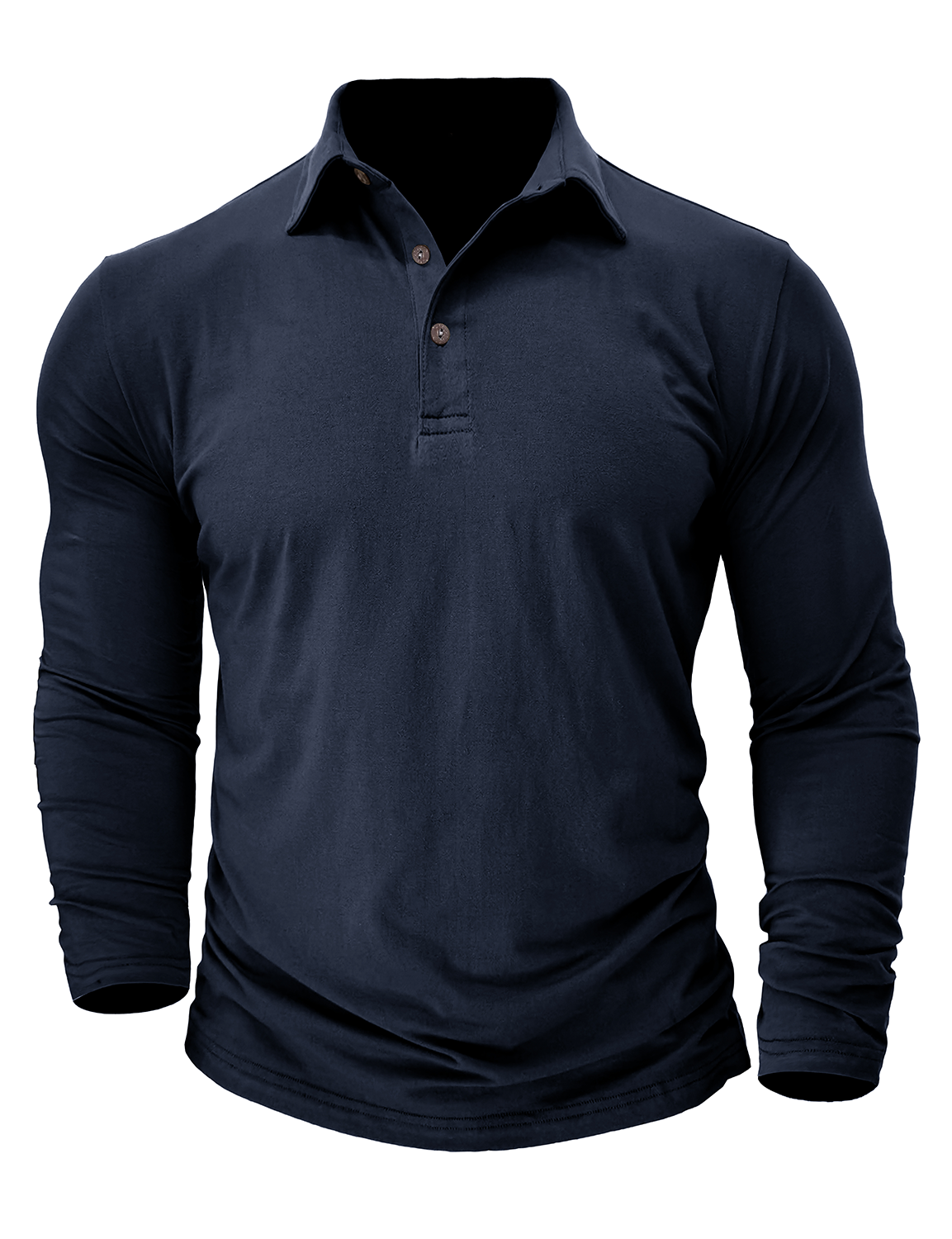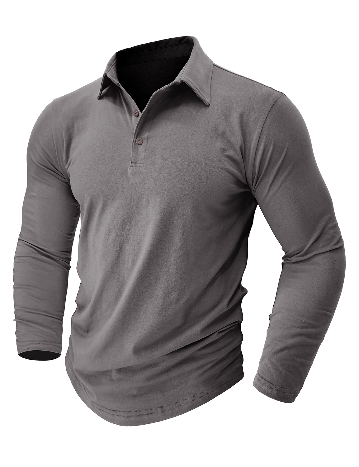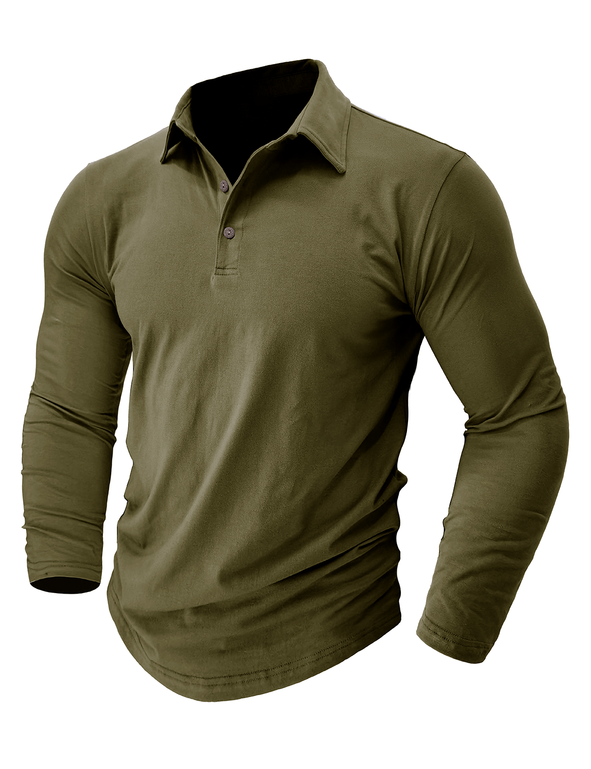 Polo long décontracté en coton avec poche de couleur unie pour hommes