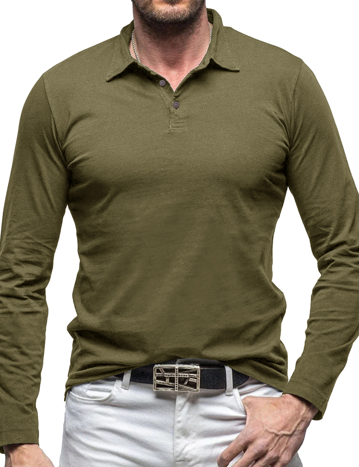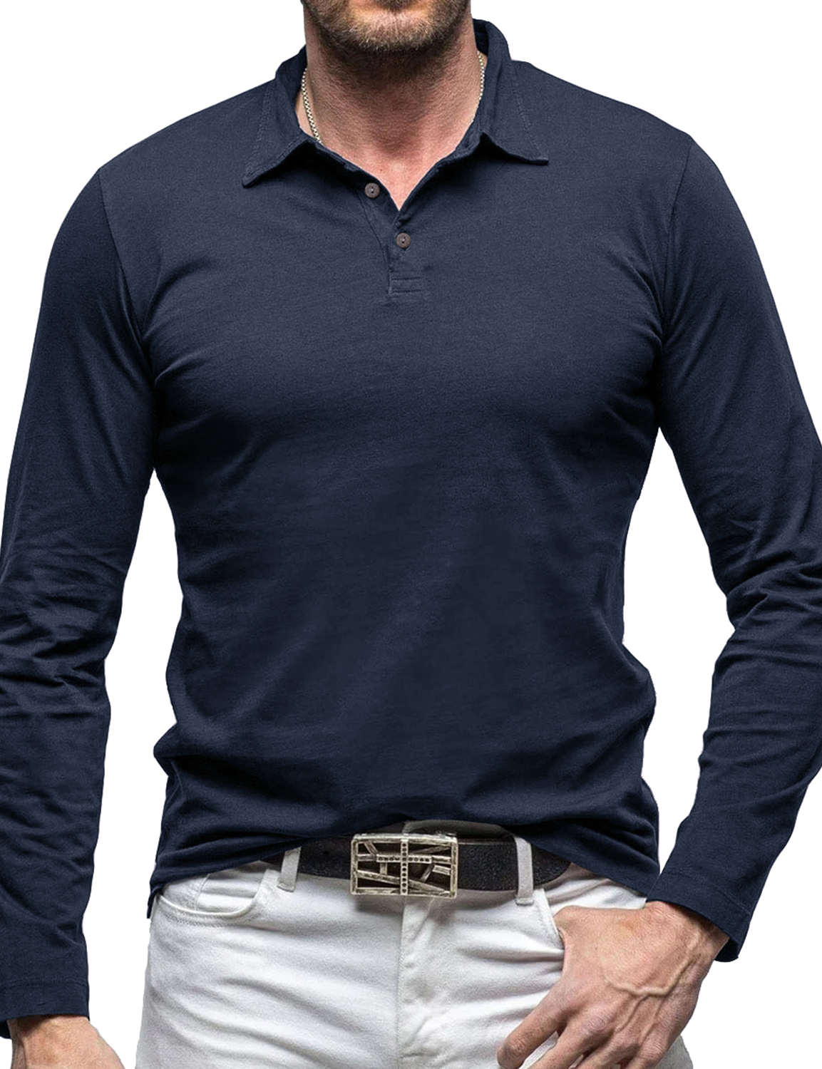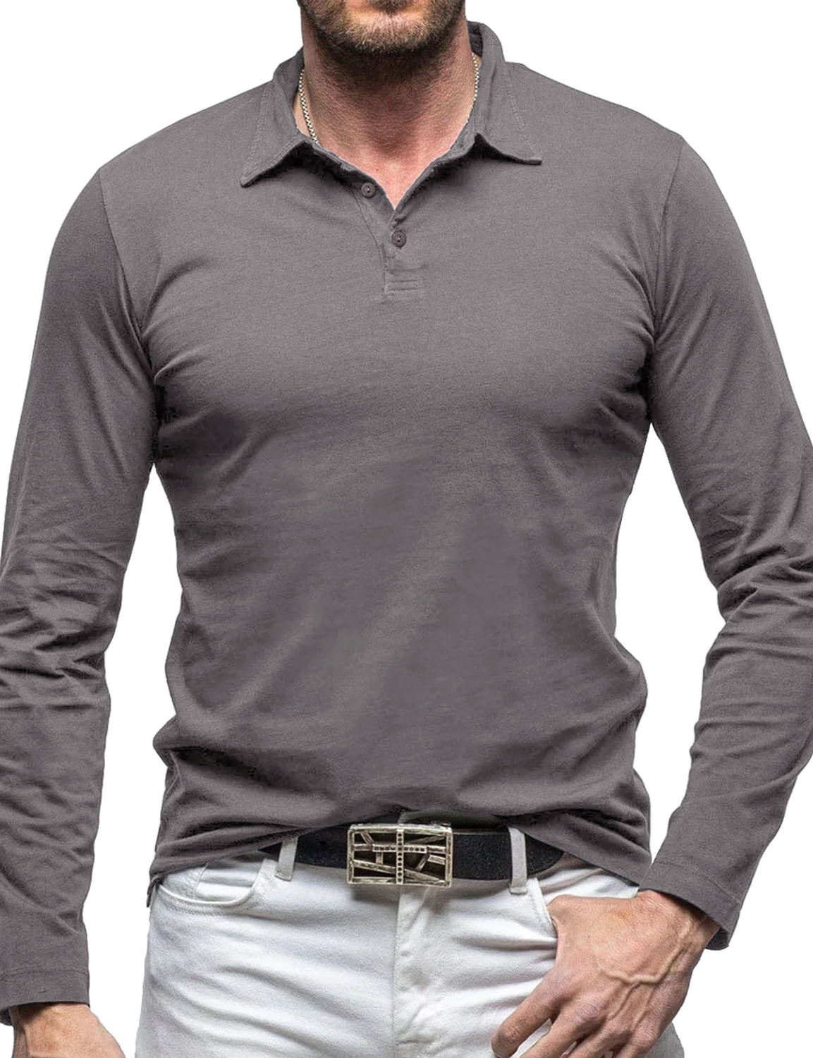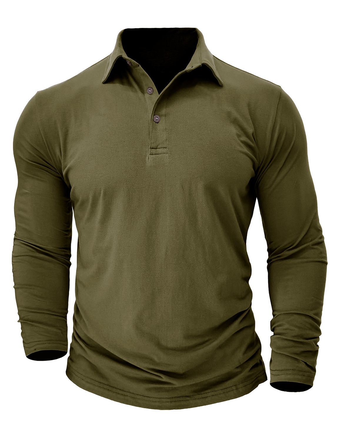 Polo long décontracté en coton avec poche de couleur unie pour hommes