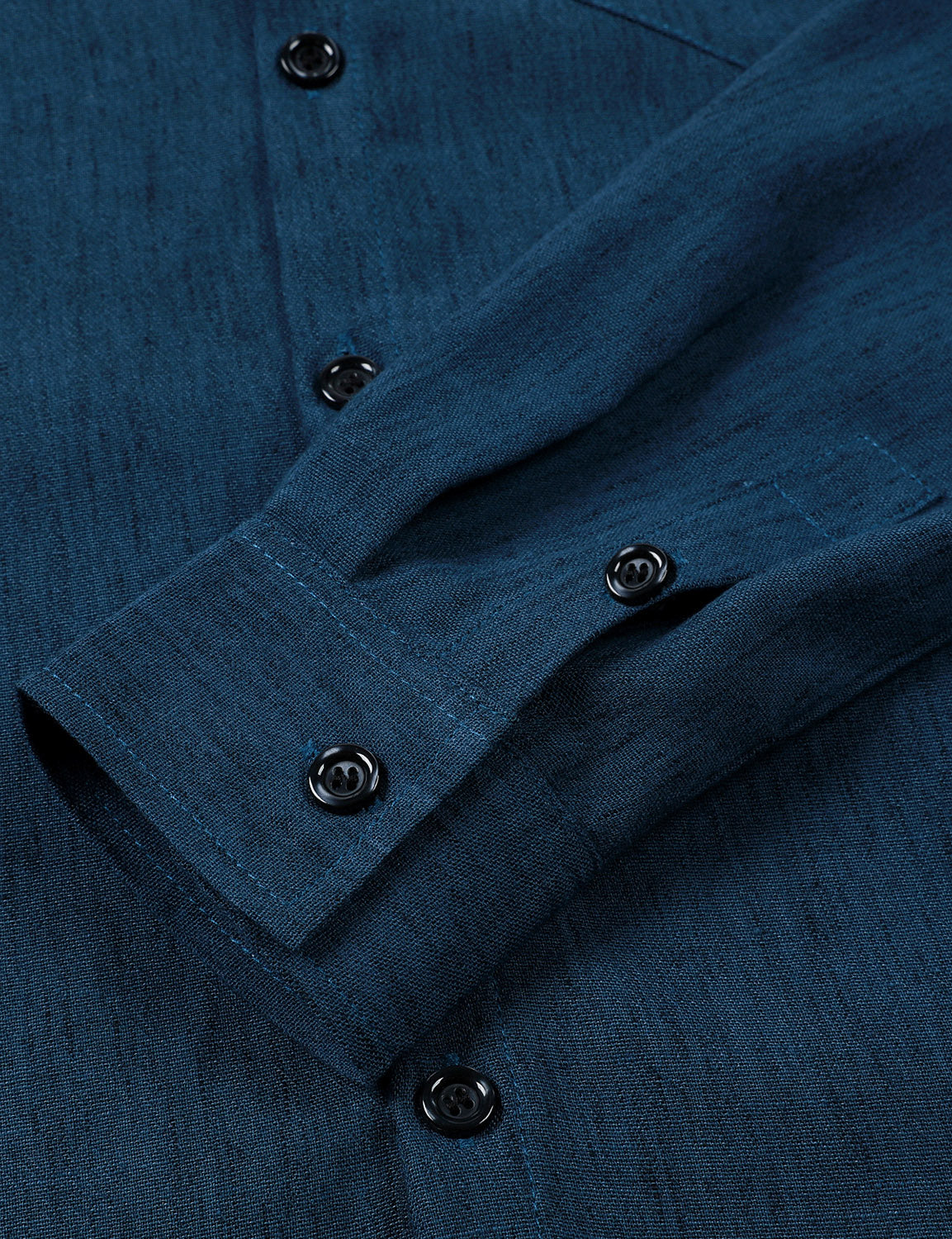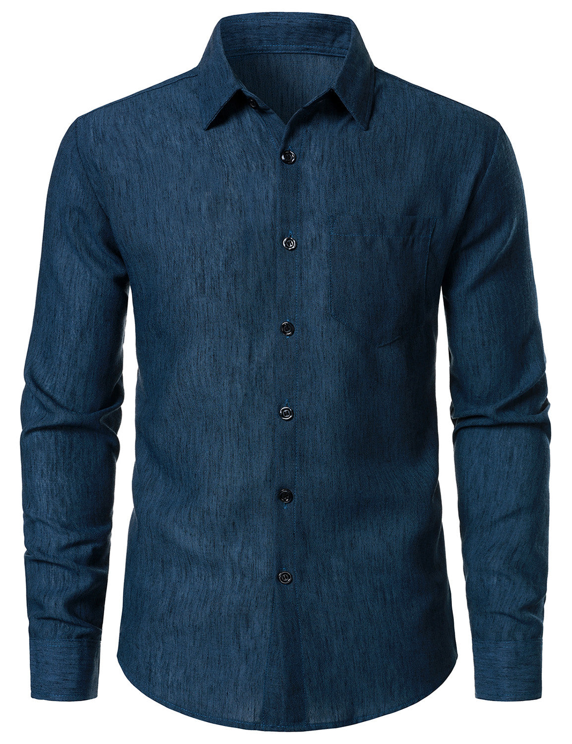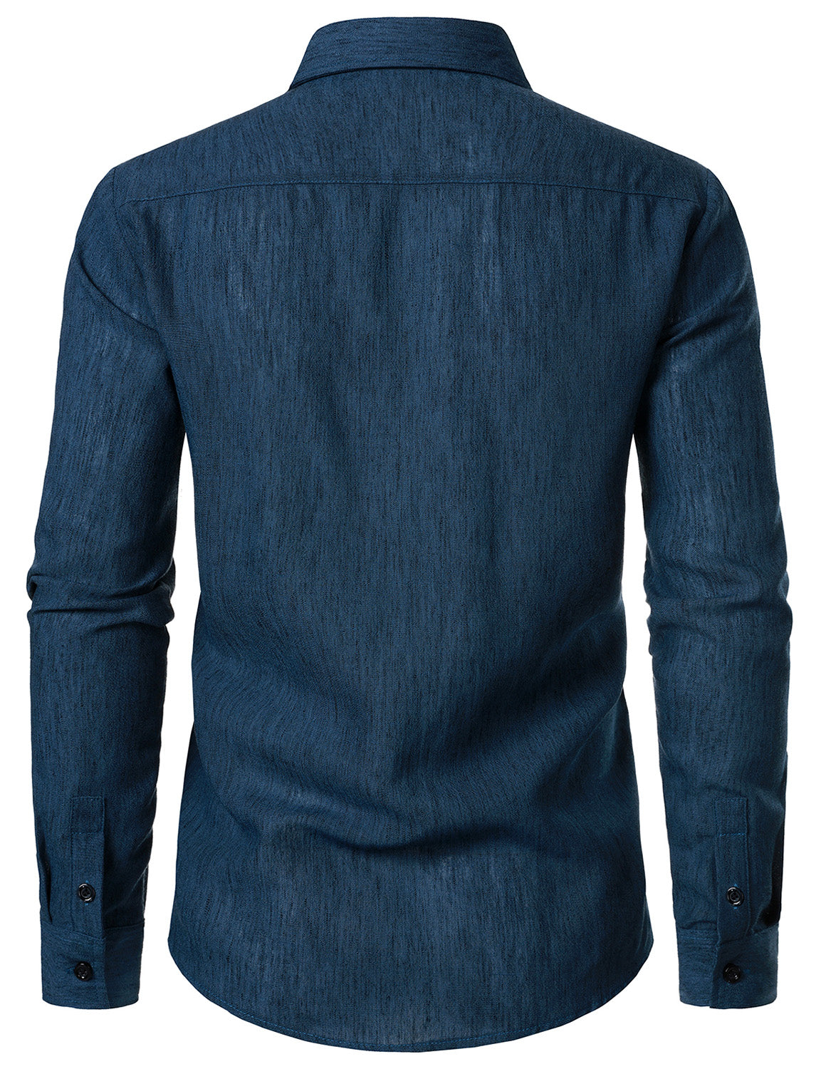 Chemise boutonnée à manches longues en coton respirant pour homme, couleur unie