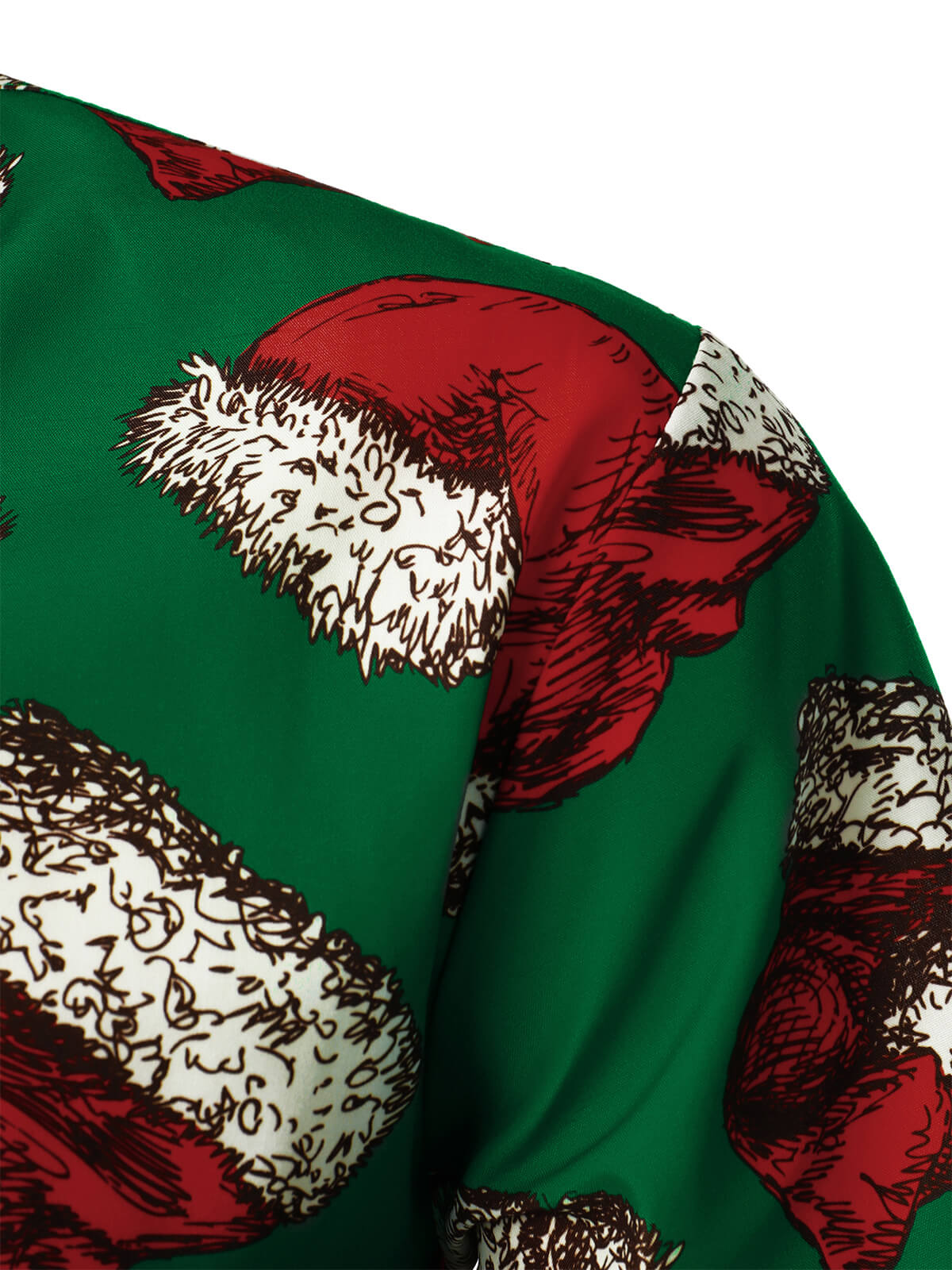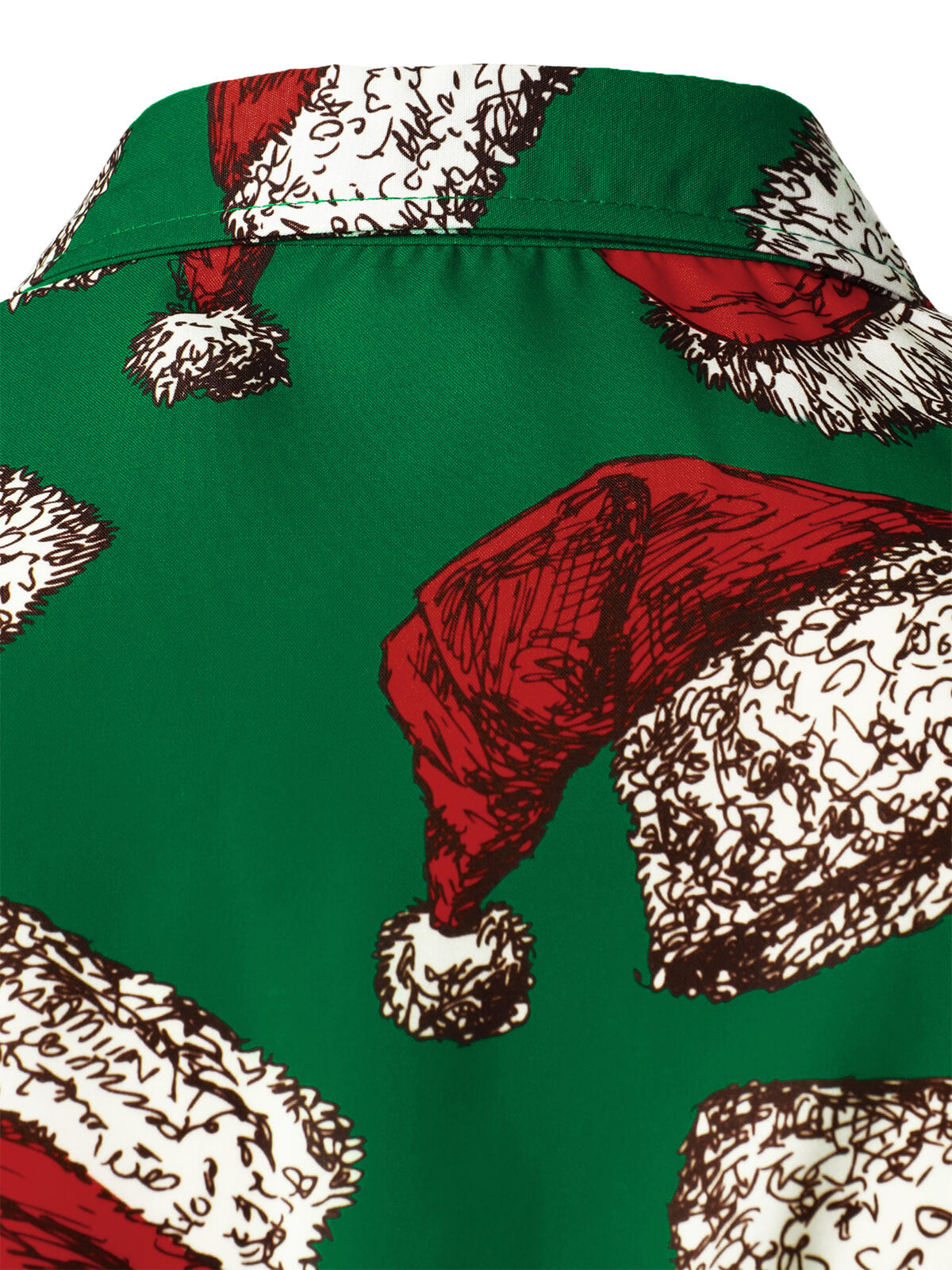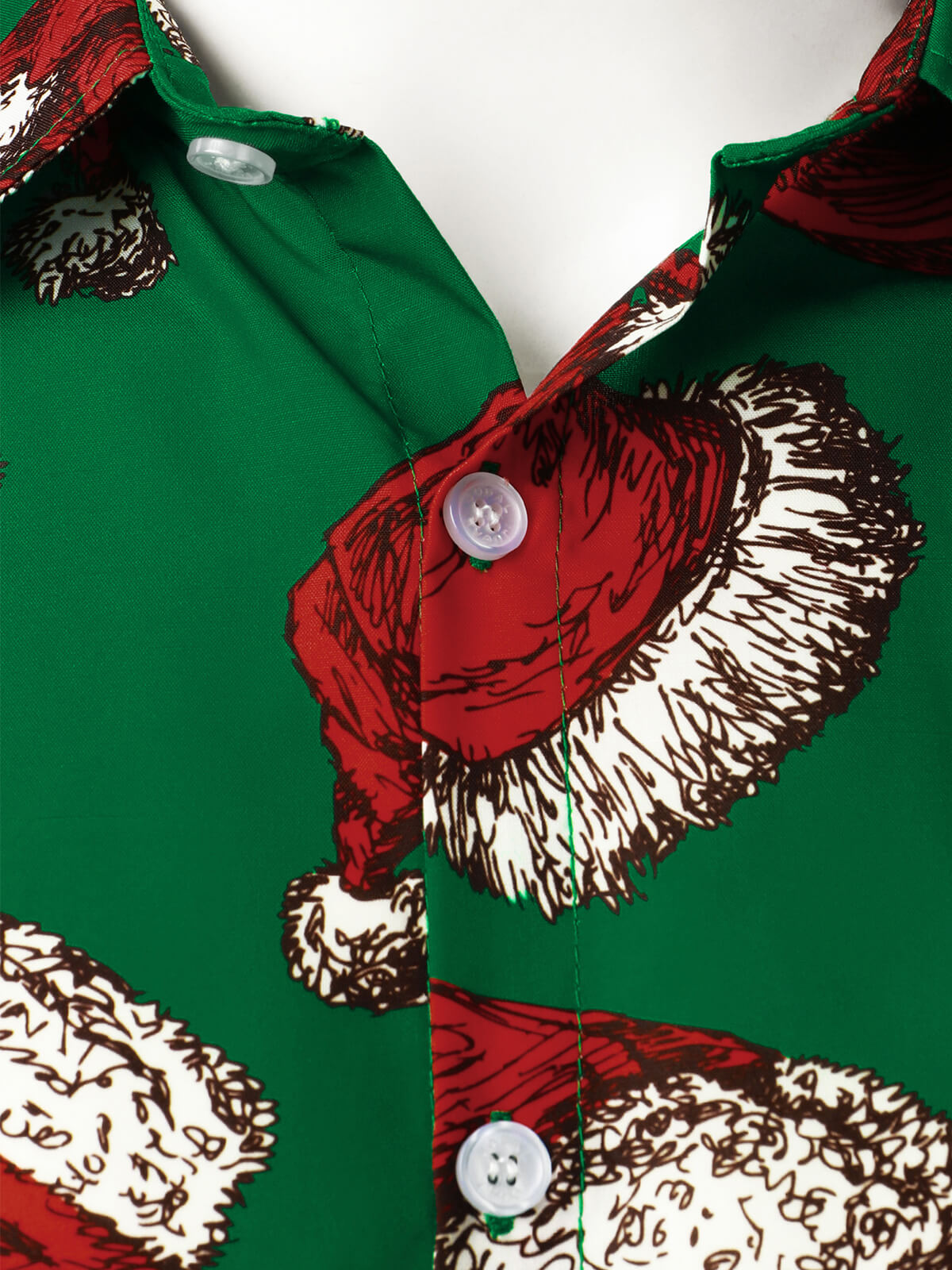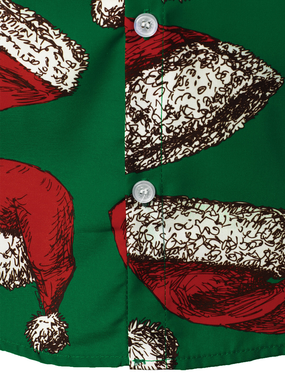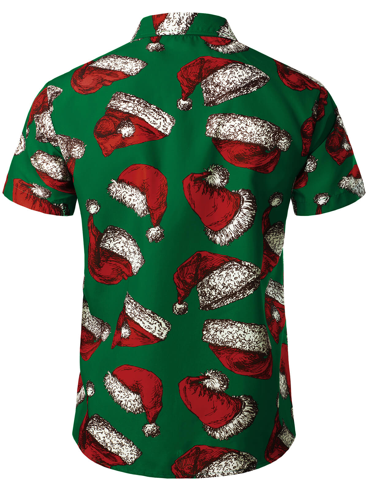 Chemise à manches courtes à boutons pour homme avec imprimé chapeau de Noël vert