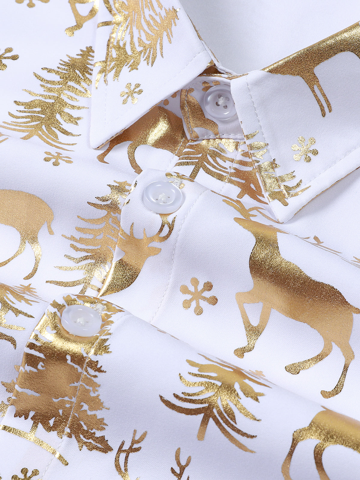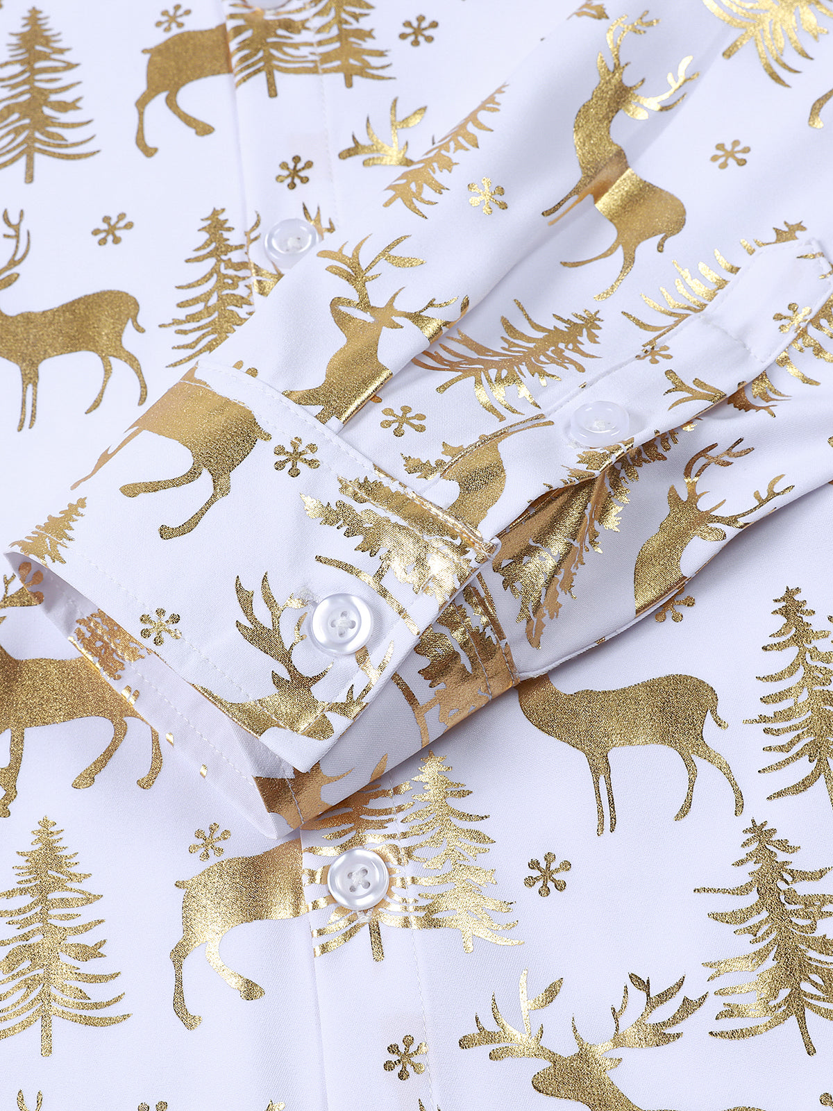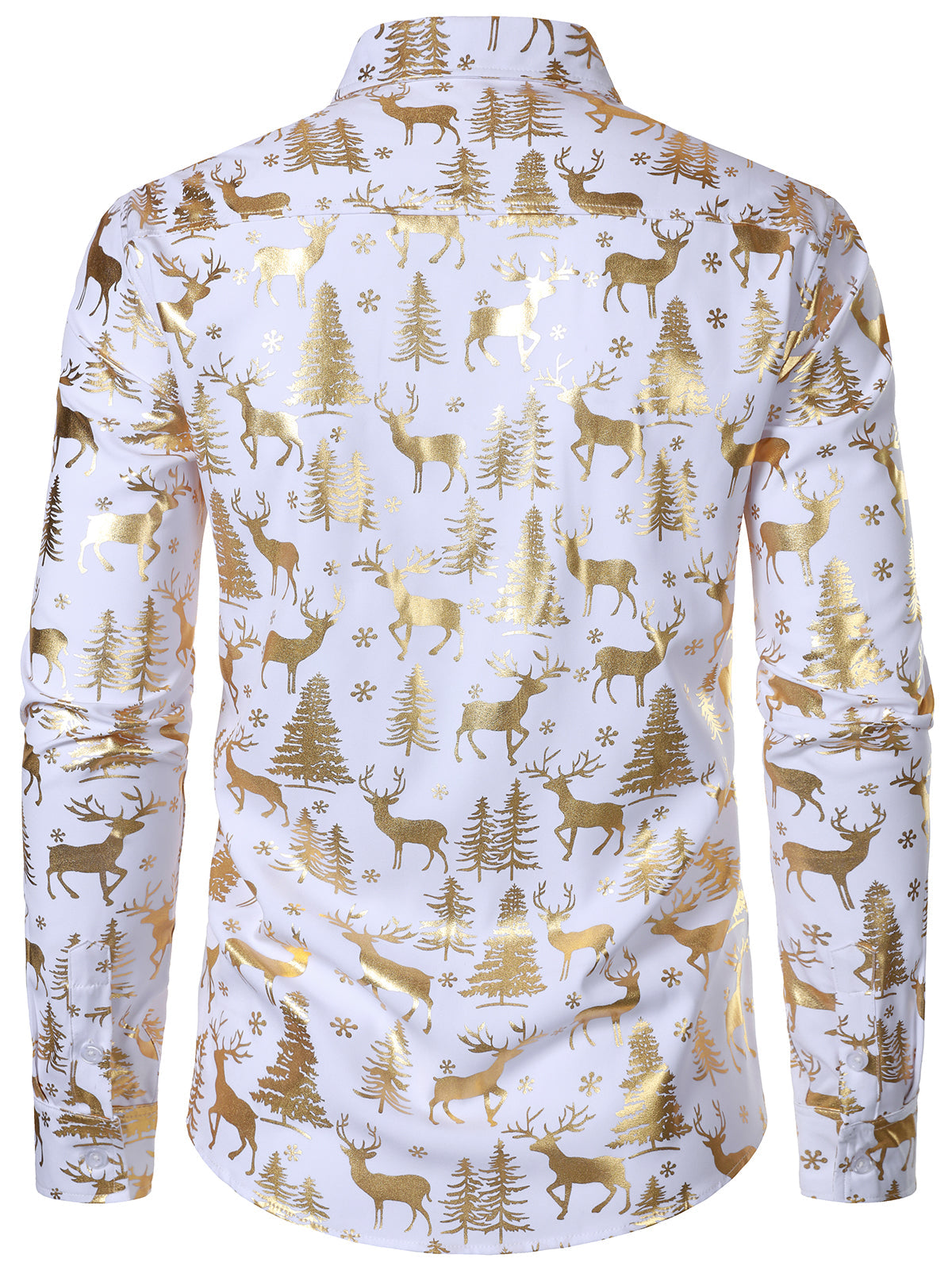 Chemise blanche à manches longues pour homme avec imprimé festif de rennes dorés de Noël