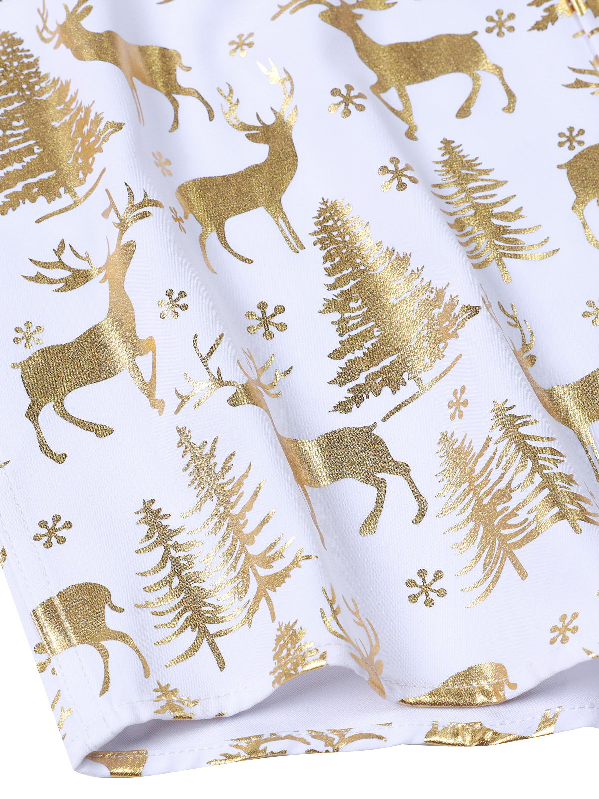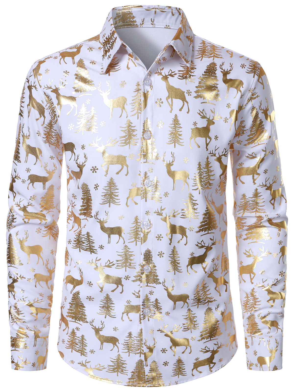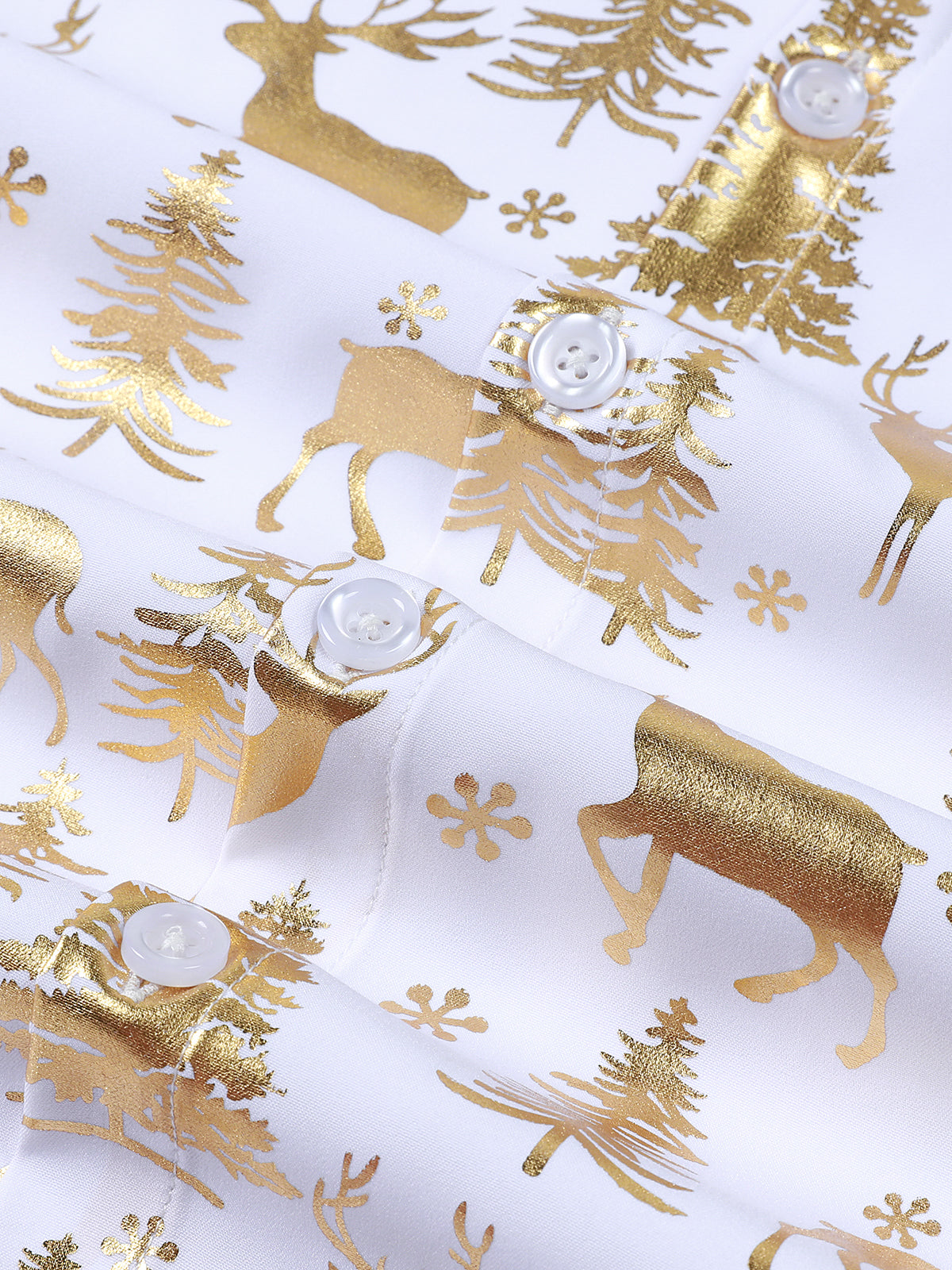 Chemise blanche à manches longues pour homme avec imprimé festif de rennes dorés de Noël