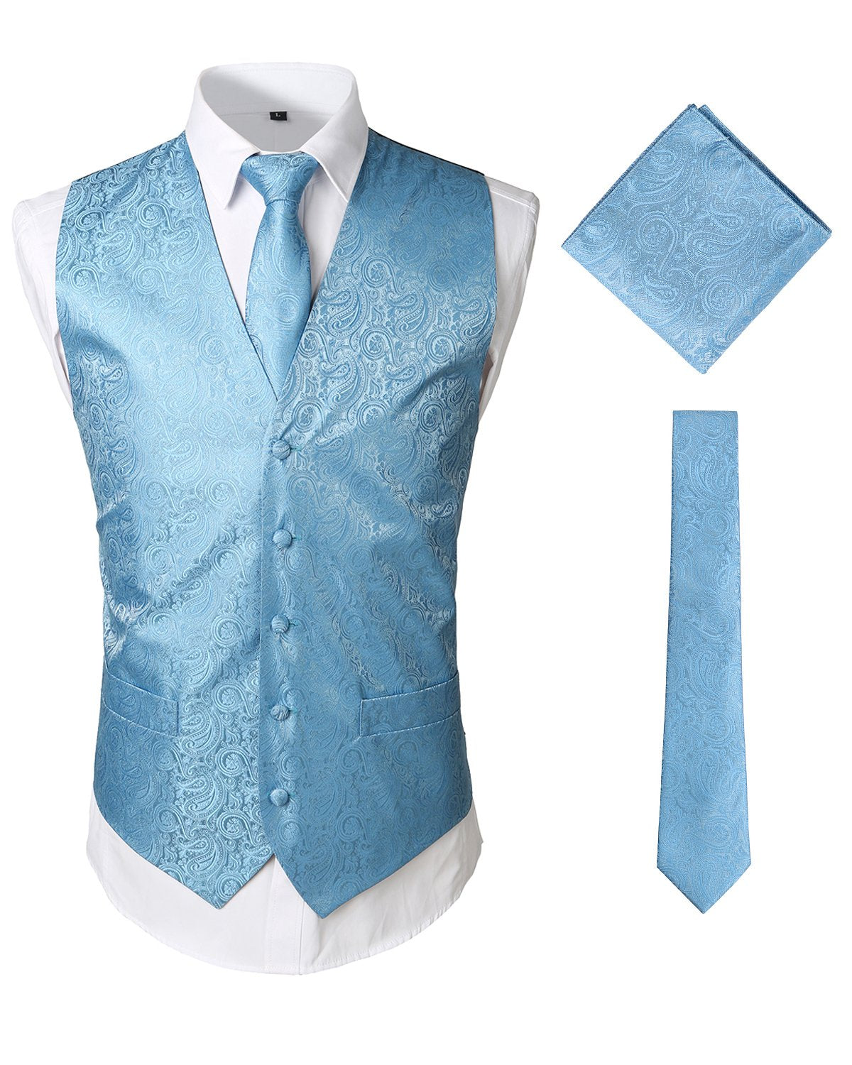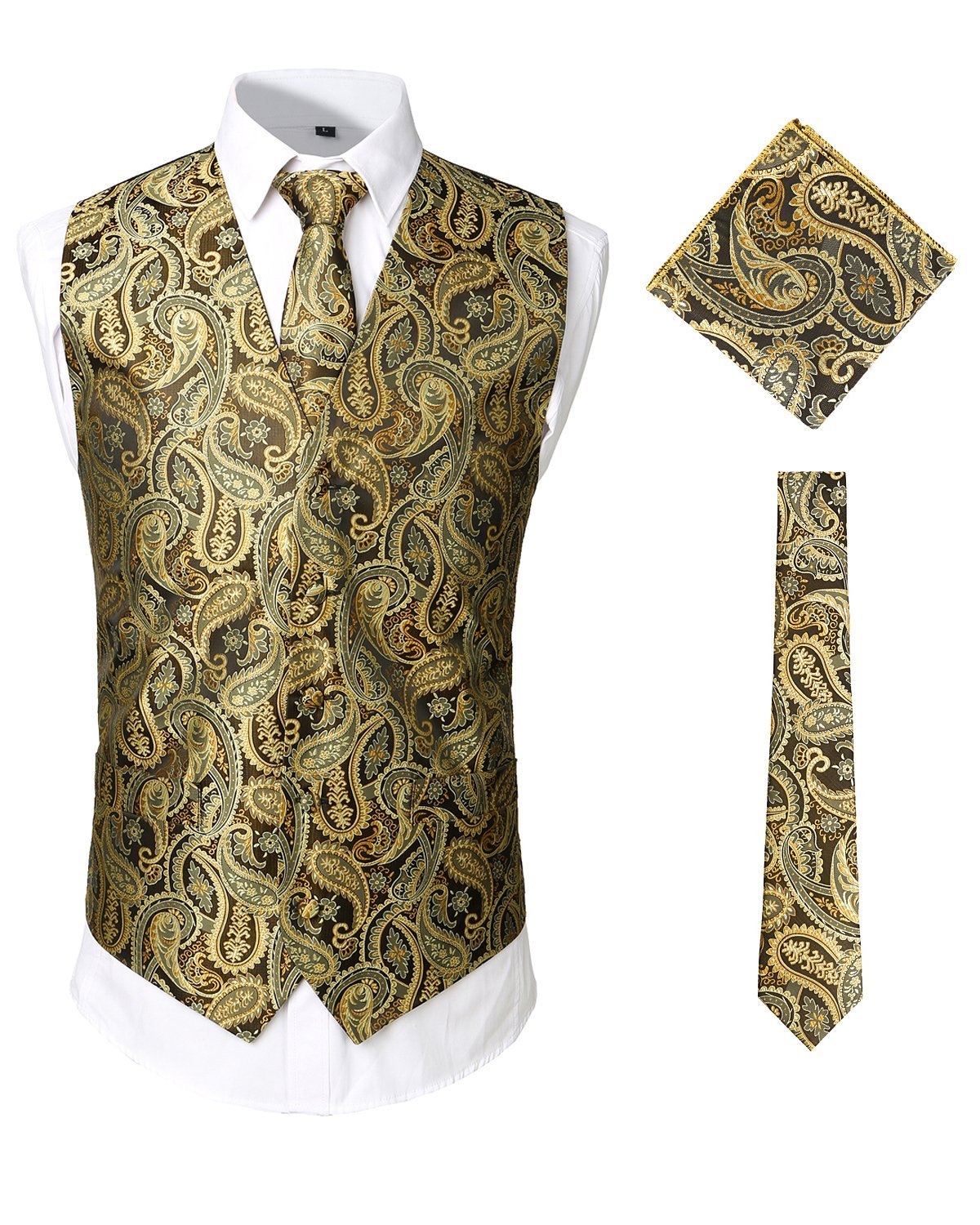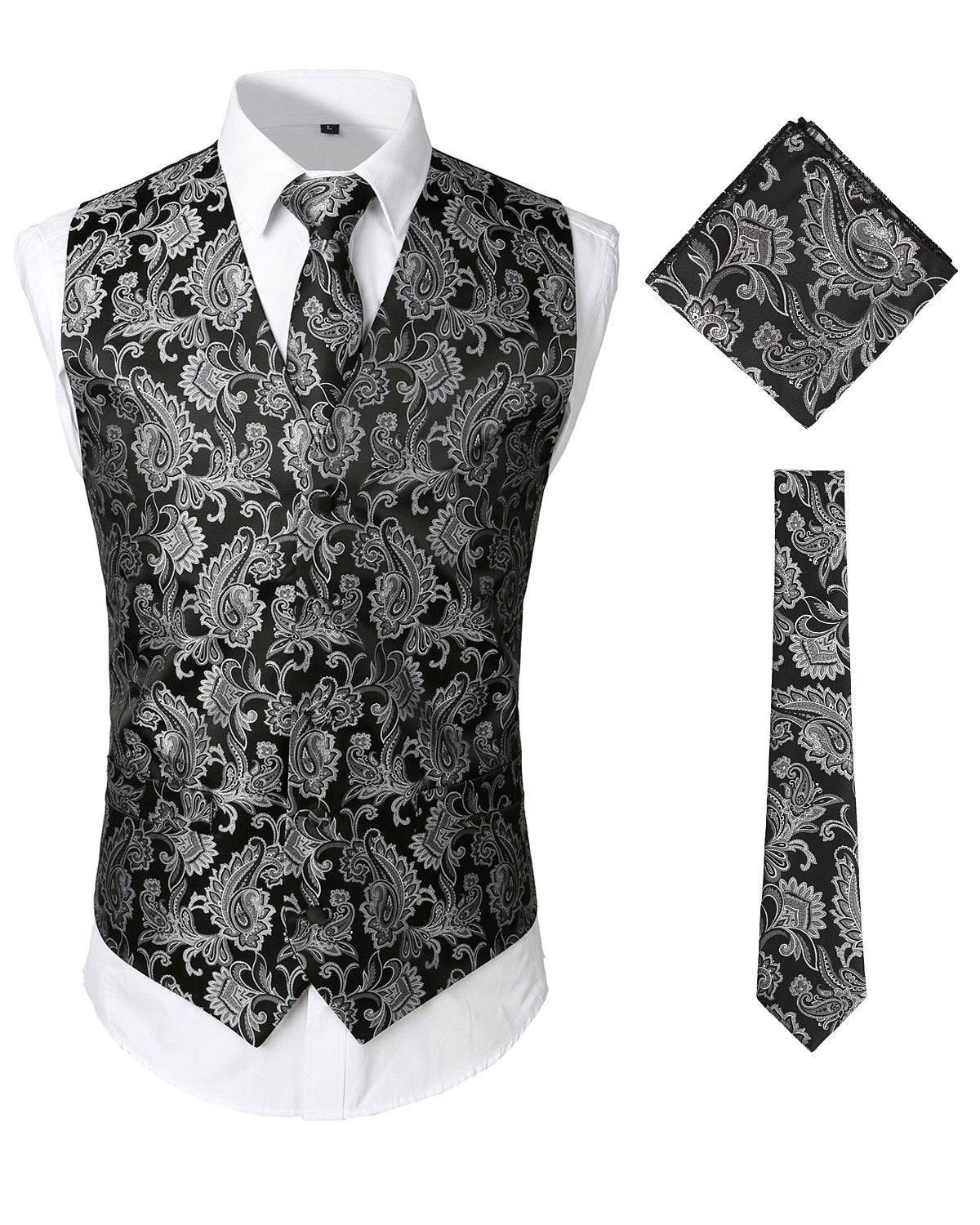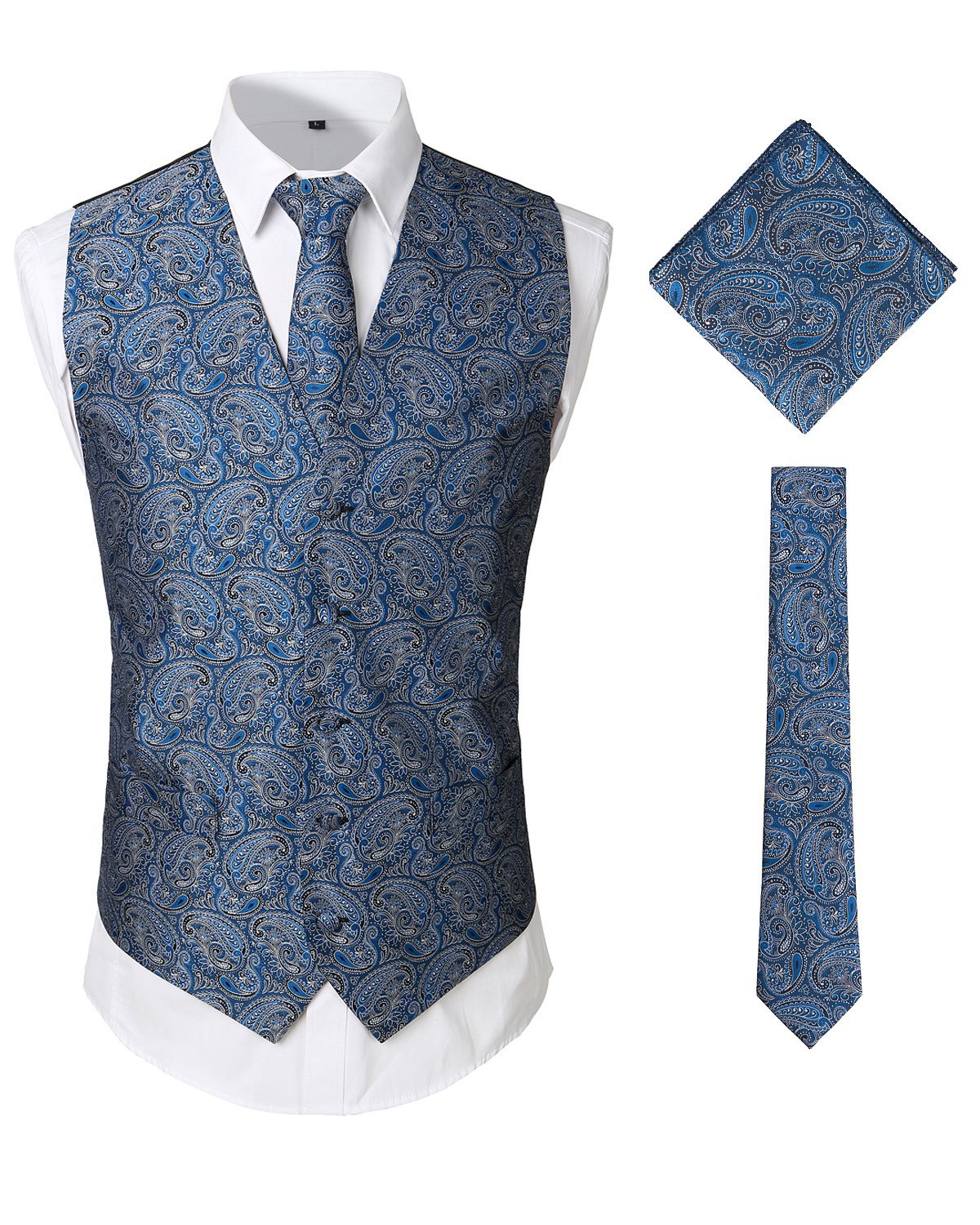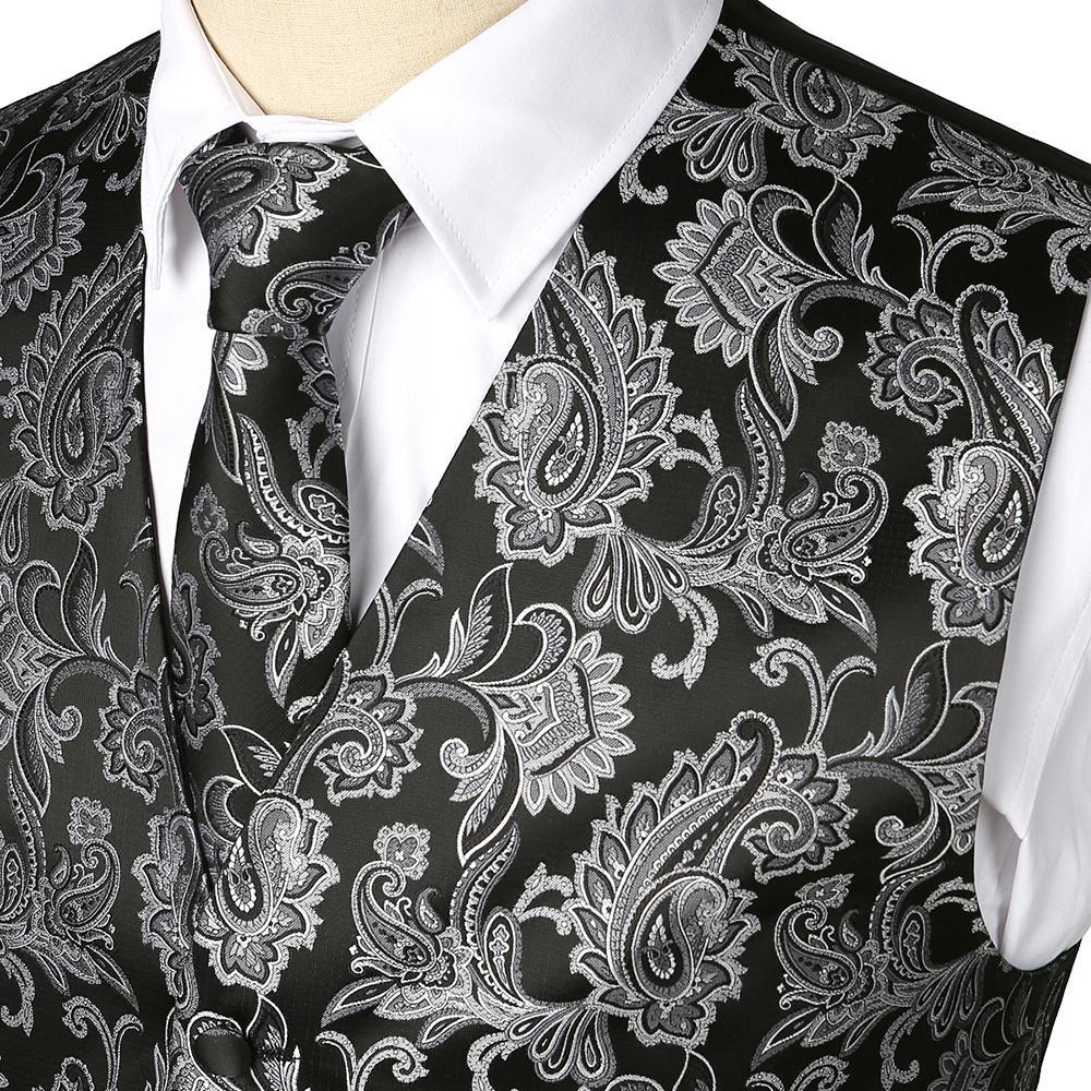- Ensemble de 3 pièces de gilet de robe comprend: gilet, cravate, mouchoir. Cravate: 2,8 "x 57", mouchoir: 8,8 "x 8,8" de dimension. Tous les accessoires sont dans le modèle Paisley assorti.