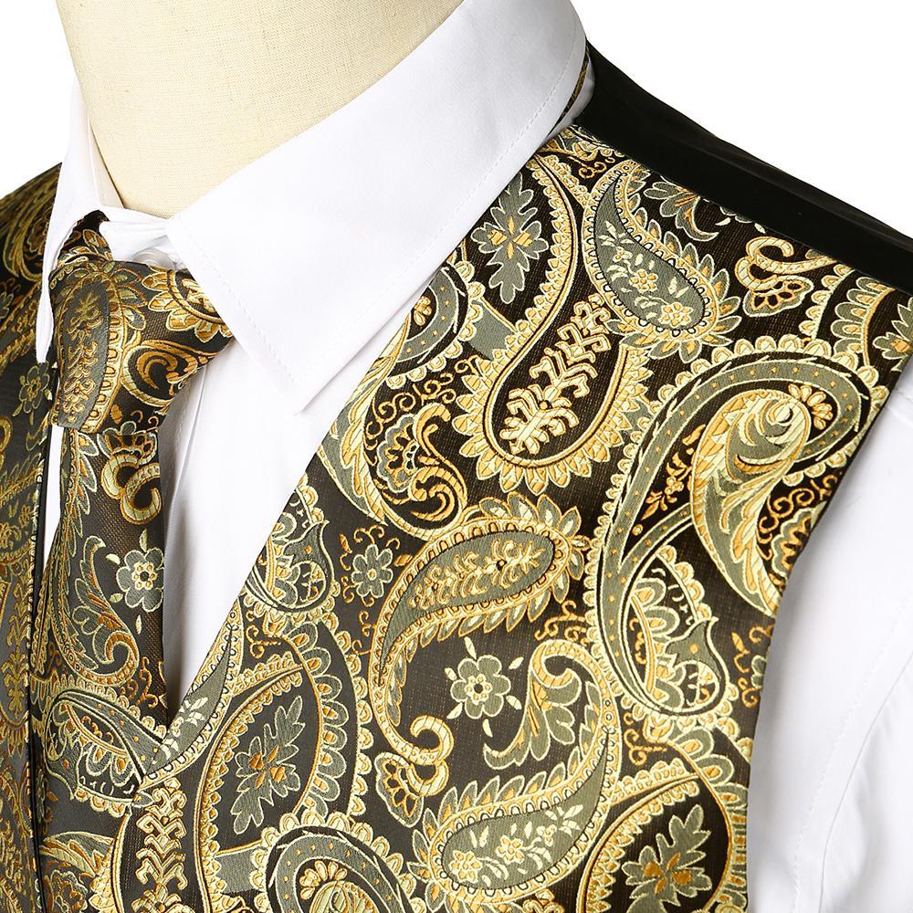 Ensemble de 3 pièces pour hommes Paisley Gilet cravate pour costume ou smoking
