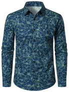 Chemise à manches longues bleue à fleurs en coton pour homme