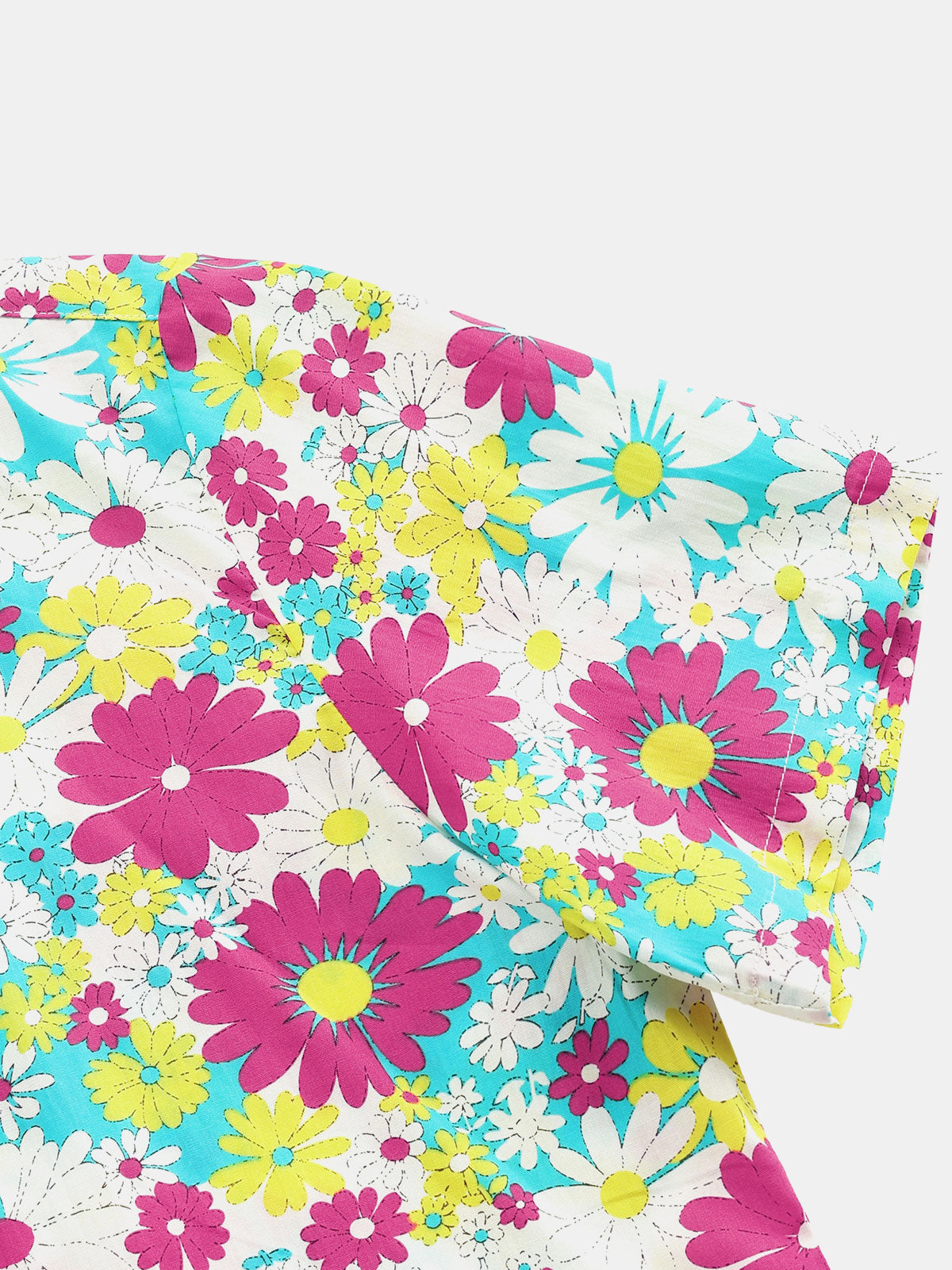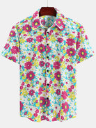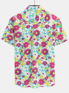 Chemise hawaïenne à manches courtes en coton décontracté à fleurs pour hommes