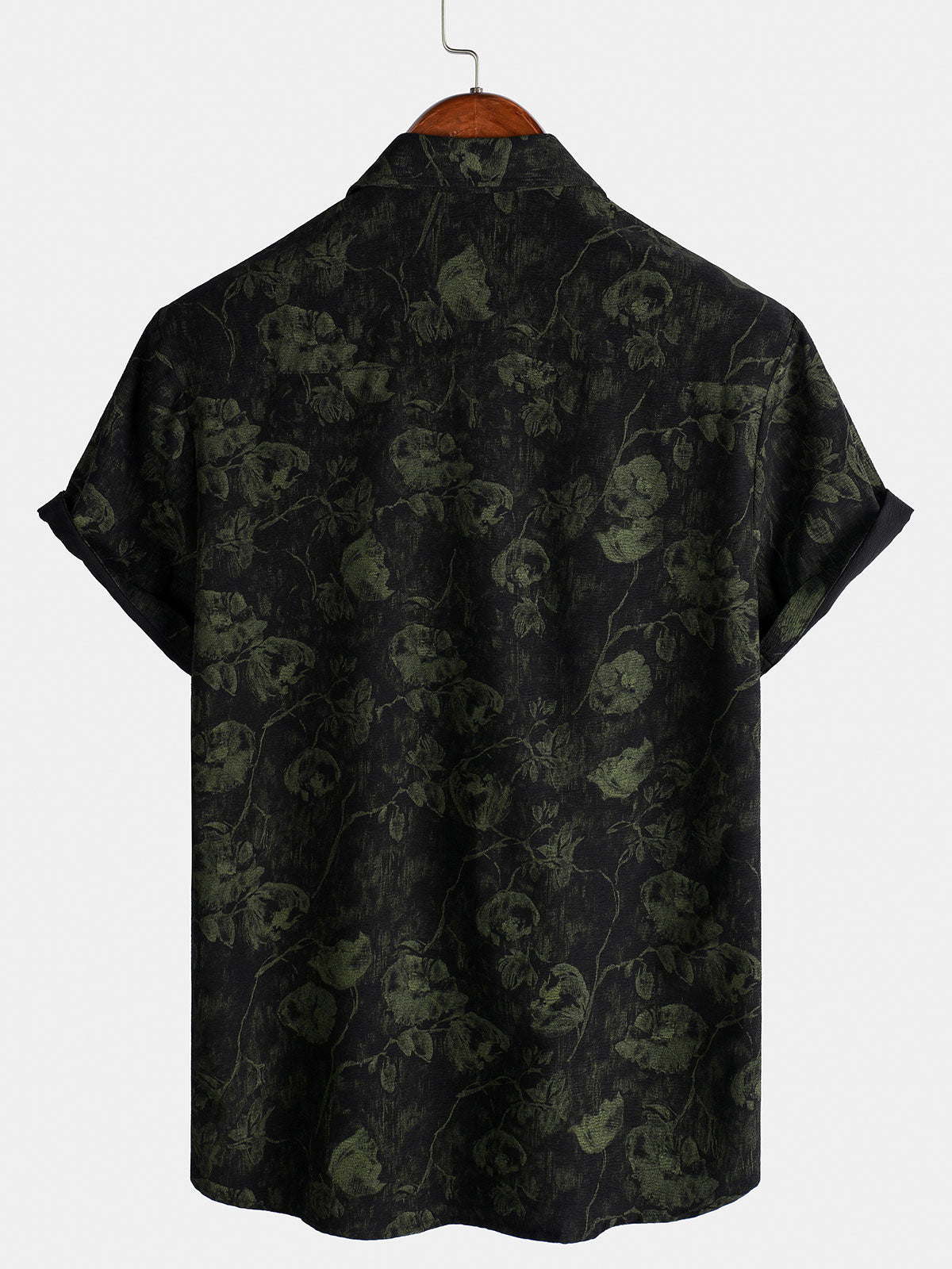 Chemise hawaïenne respirante à manches courtes et imprimé floral rétro pour homme