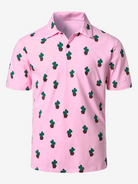 Polo à manches courtes en coton rose imprimé cactus pour hommes, sport de vacances, golf