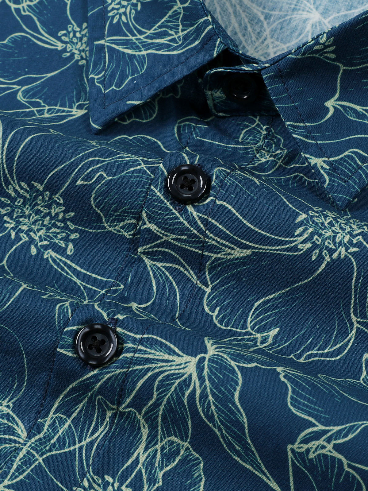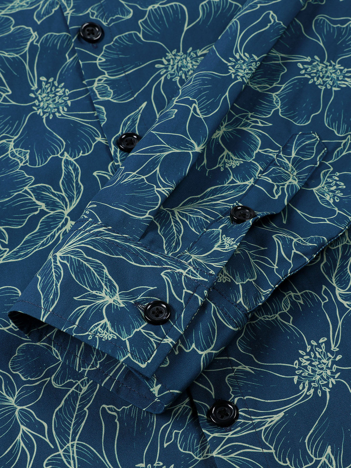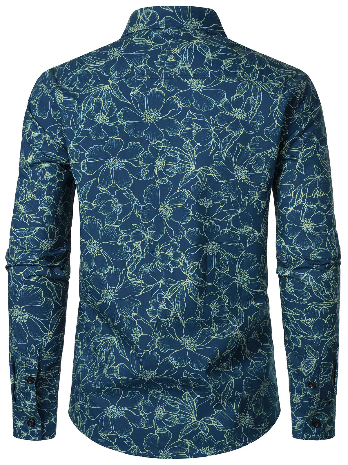 Chemise à manches longues bleue à fleurs en coton pour homme