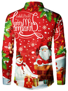Chemise à manches longues boutonnée pour homme avec imprimé Joyeux Noël Père Noël