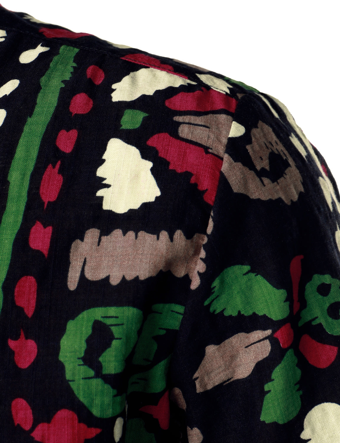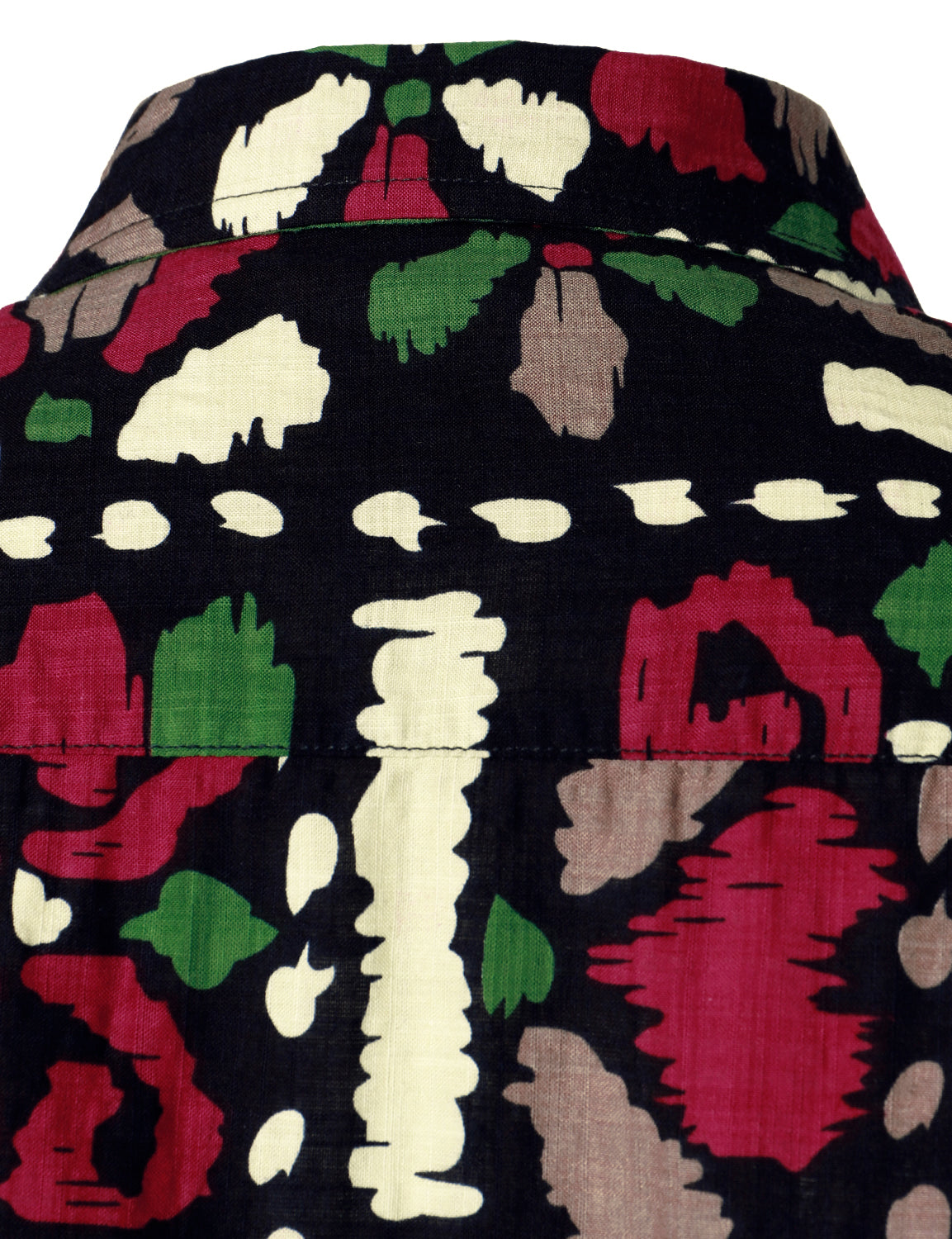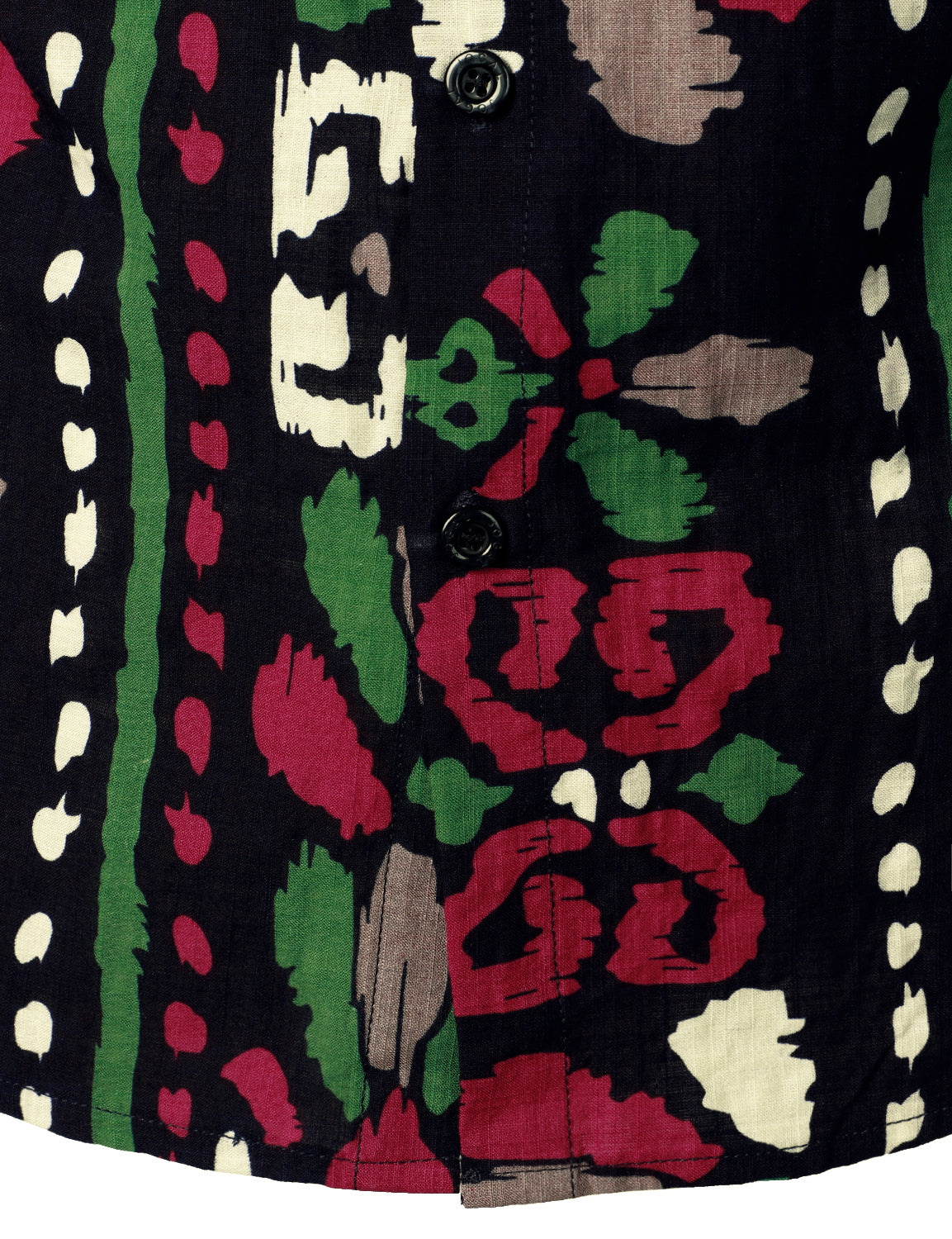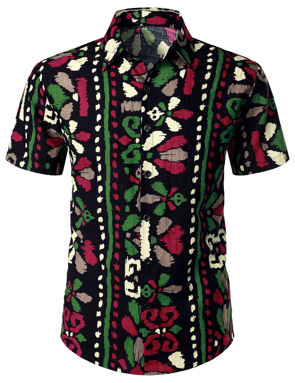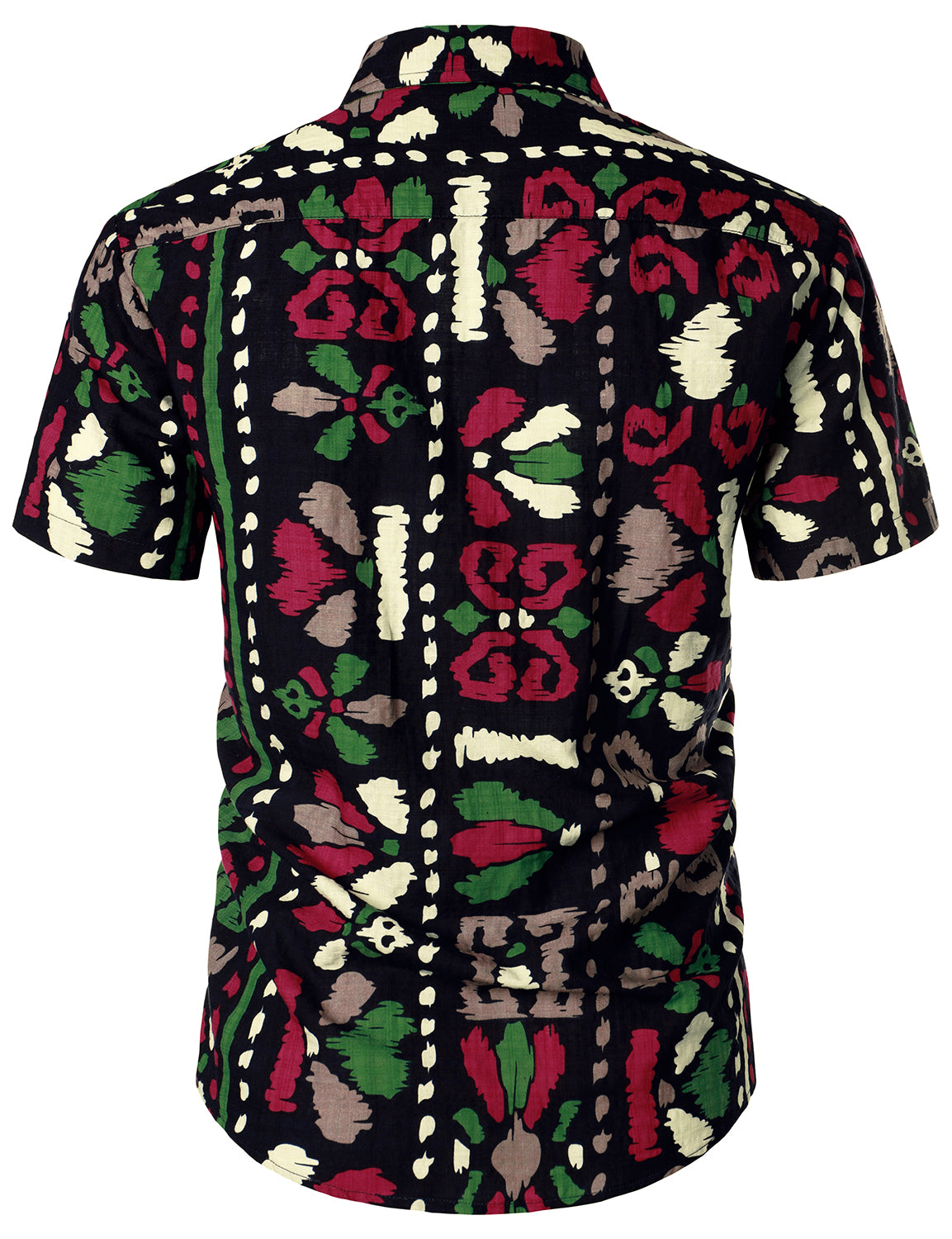 Chemise noire bohème à manches courtes d'été à imprimé floral tribal rétro pour hommes