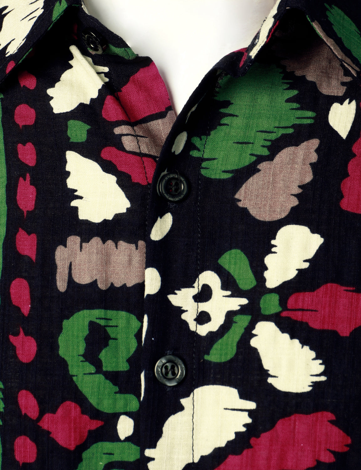 Chemise boutonnée à manches courtes respirante en coton à fleurs vintage pour hommes