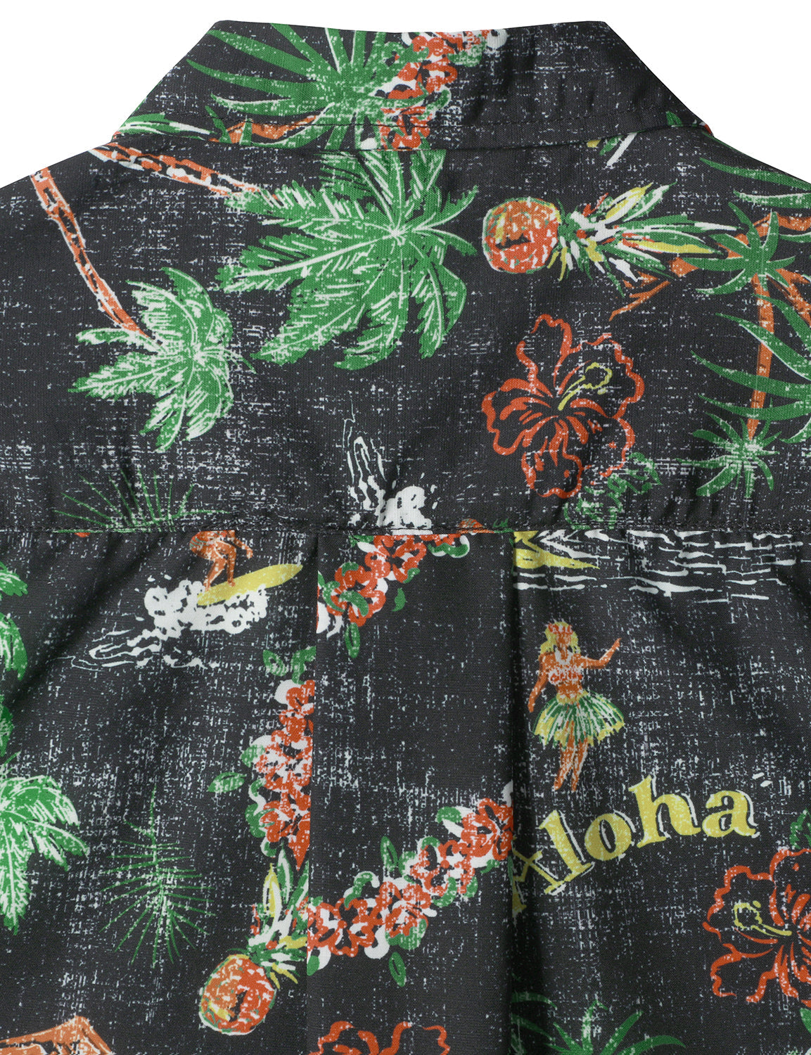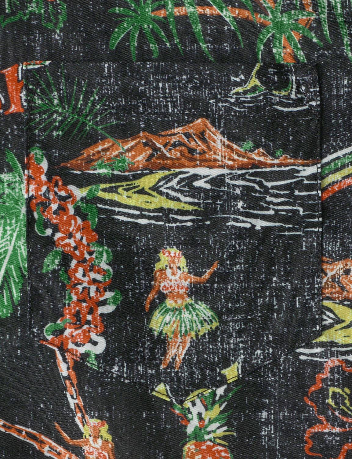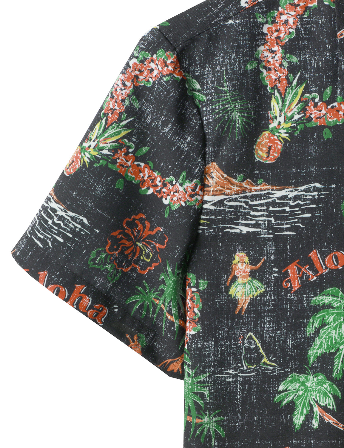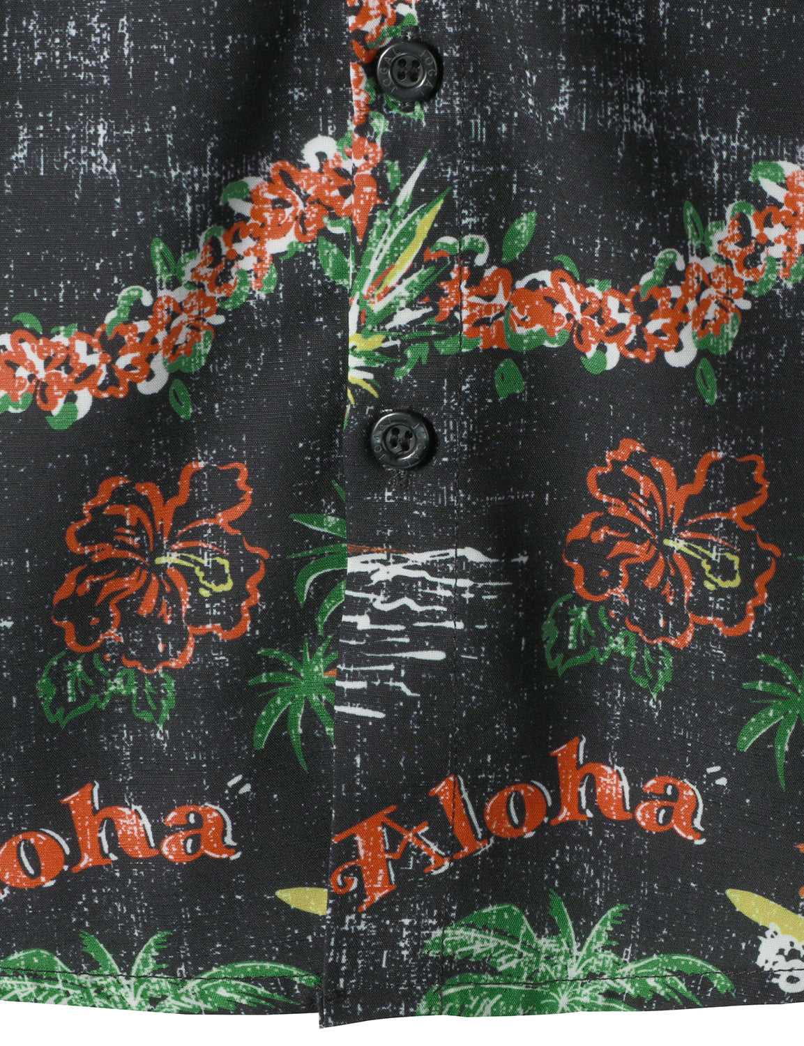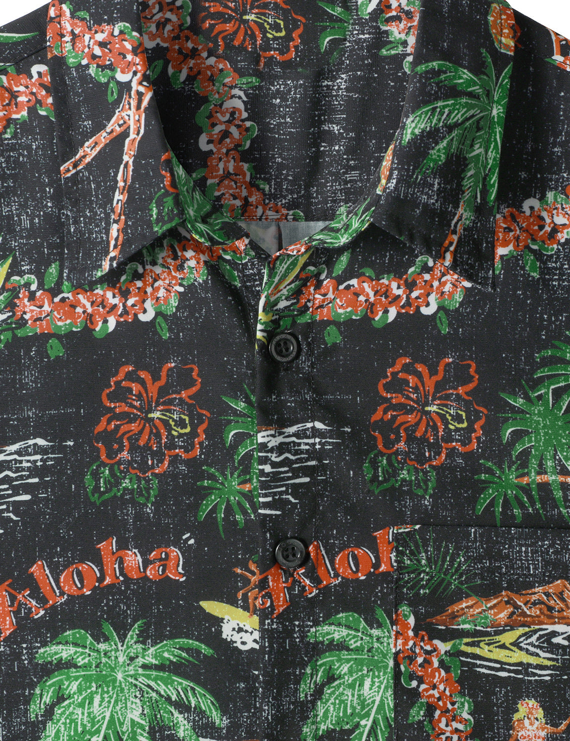 Chemise hawaïenne noire à manches courtes pour homme avec imprimé Aloha vintage