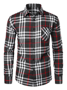 - Chemise manches longues, col revers, fermeture boutonnée, 1 poche poitrine, carreaux et rayures sont raccordés.