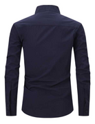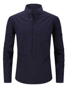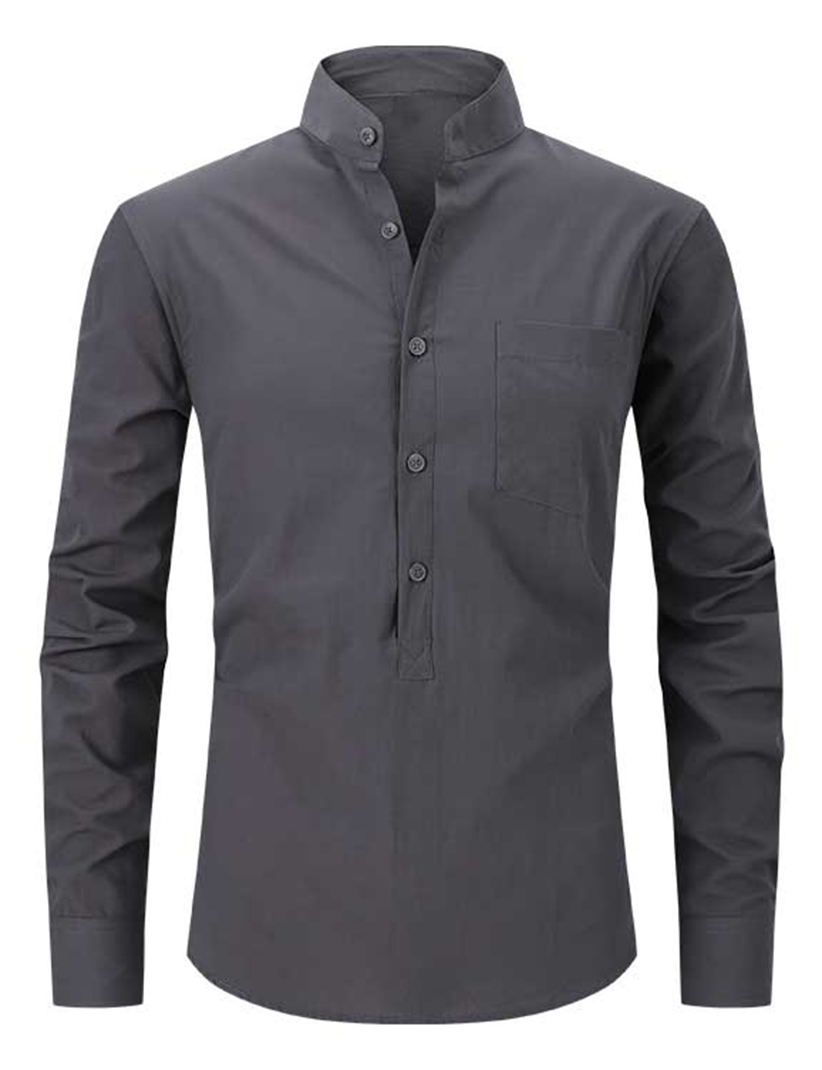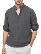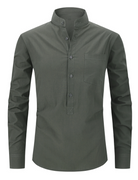 Chemise à manches longues et col Henley pour hommes, couleur unie, décontractée, en coton, avec poches