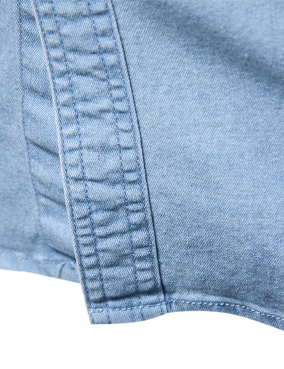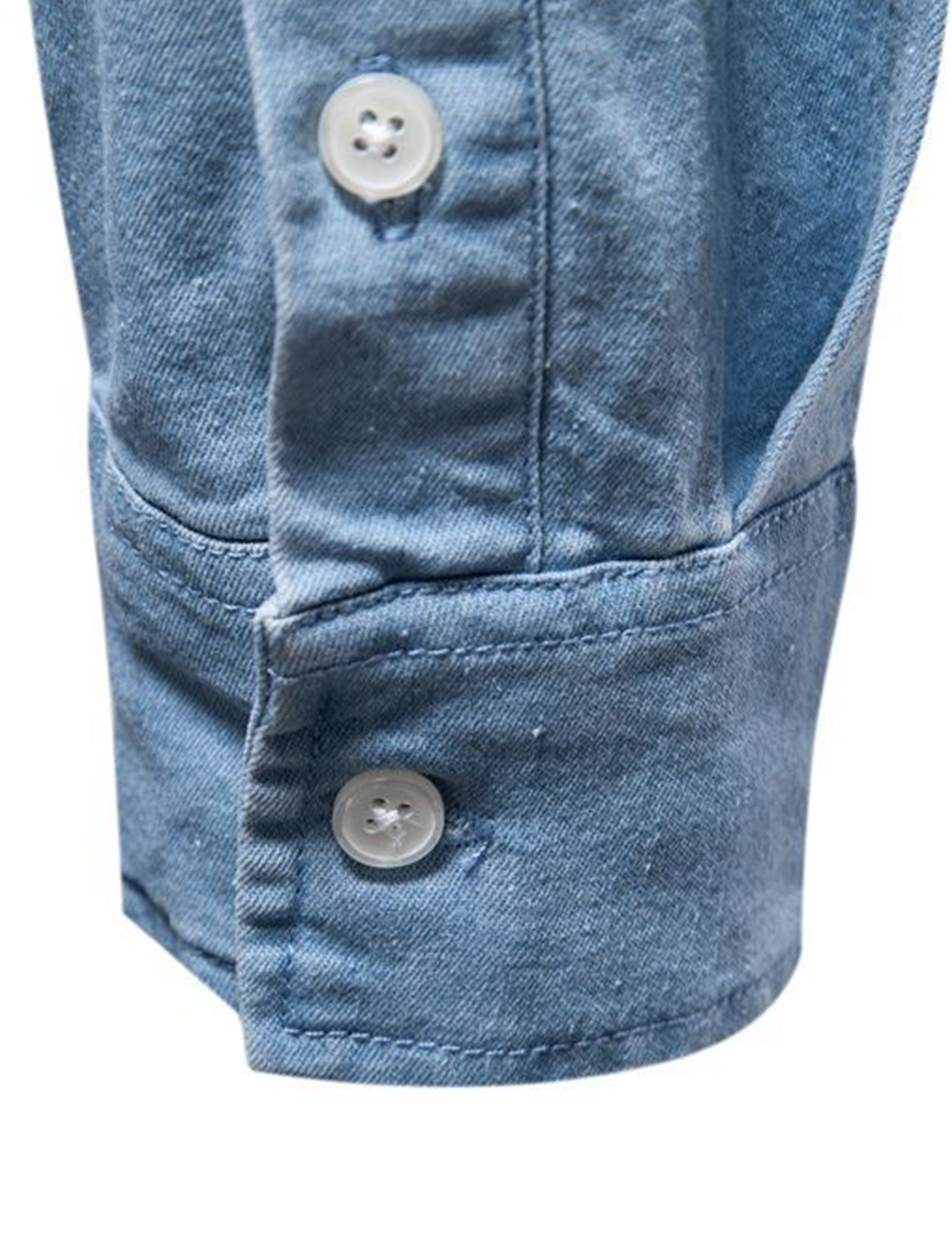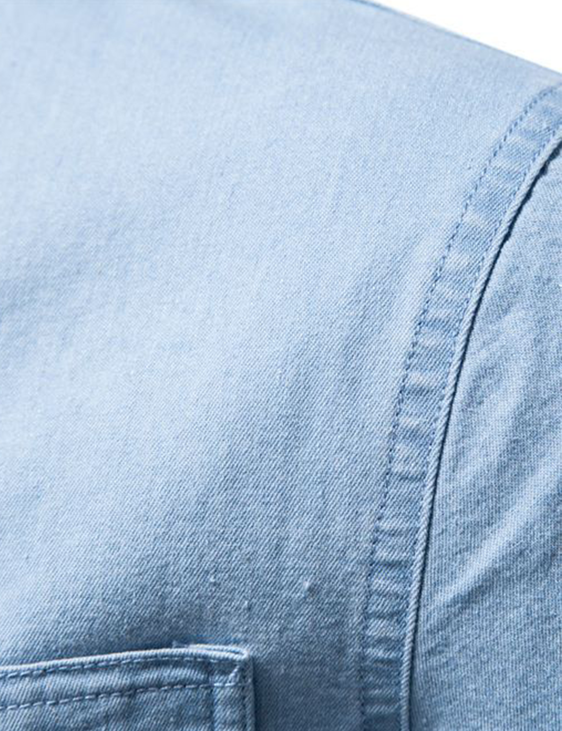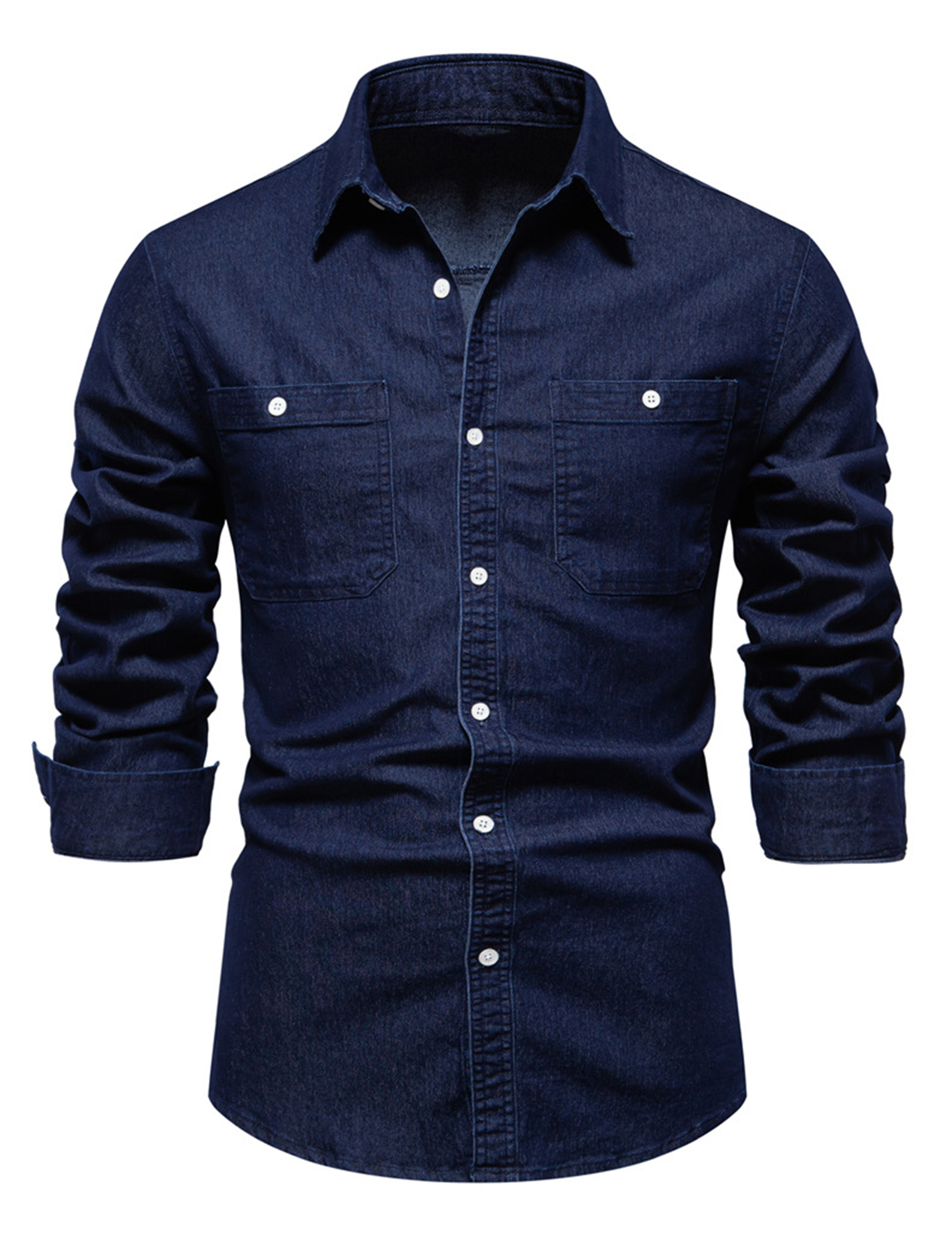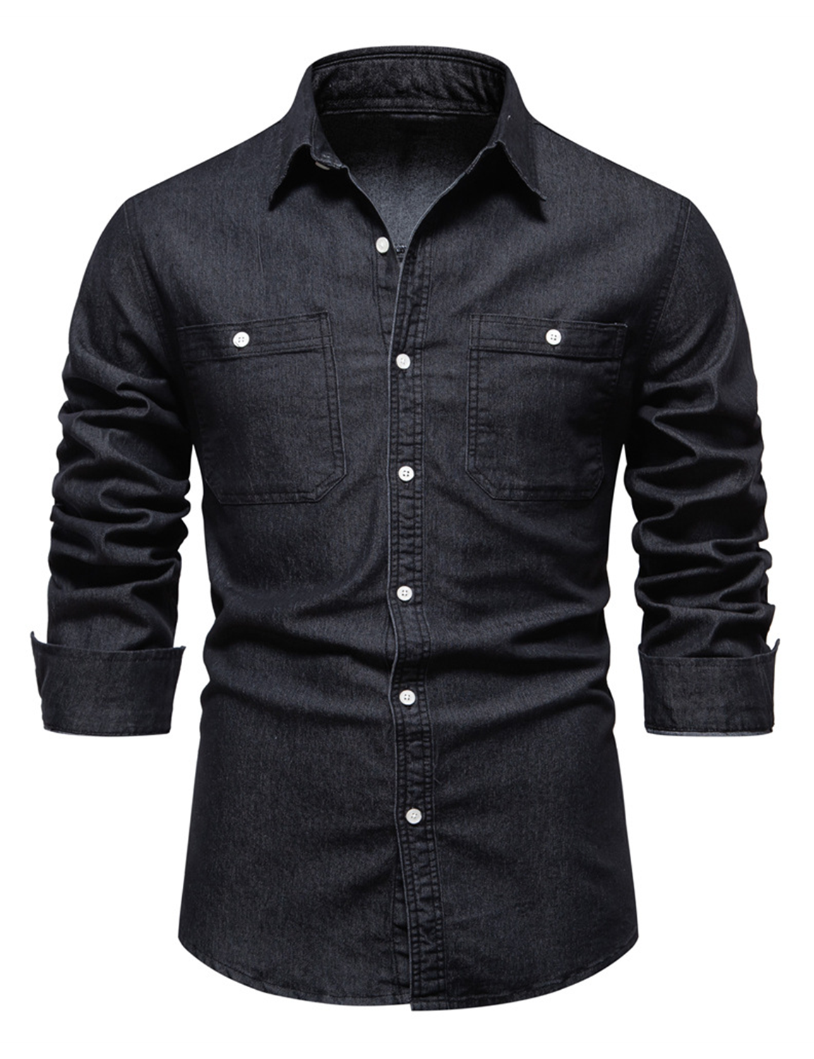 Chemise à manches longues en coton denim de couleur unie pour hommes