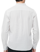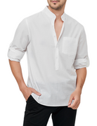 Chemise à manches longues décontractée en coton avec col Henley de couleur unie pour hommes