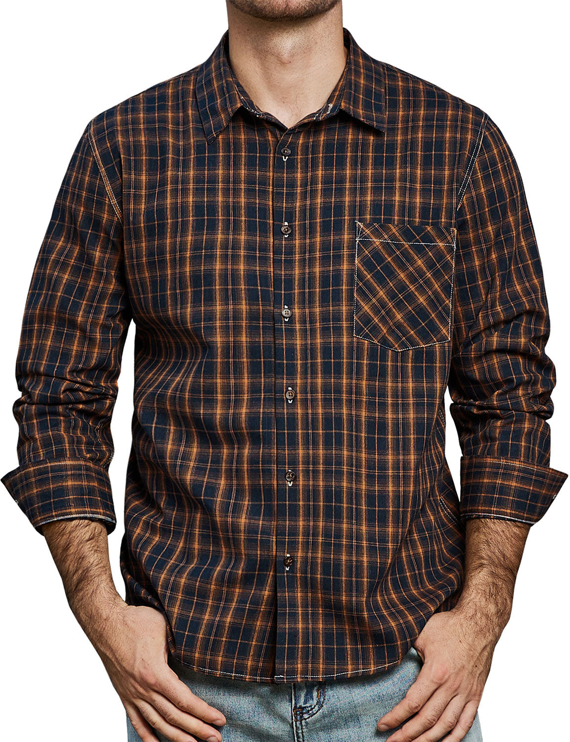 Orange Chemise à manches longues décontractée à carreaux rétro pour hommes Bleu marine Chemise à manches longues décontractée à carreaux rétro pour hommes Beige Chemise à manches longues décontractée à carreaux rétro pour hommes Vert Chemise à manches longues décontractée à carreaux rétro pour hommes Rouge Chemise à manches longues décontractée à carreaux rétro pour hommes + 2 mais