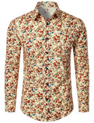 Chemise à manches longues en coton respirant à imprimé floral des années 70 pour homme