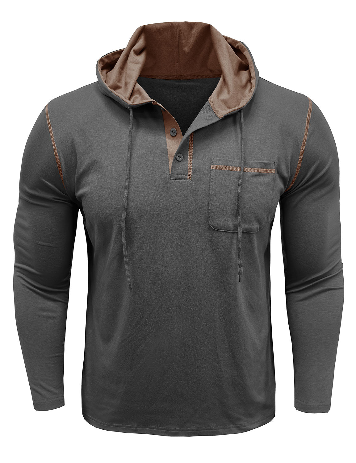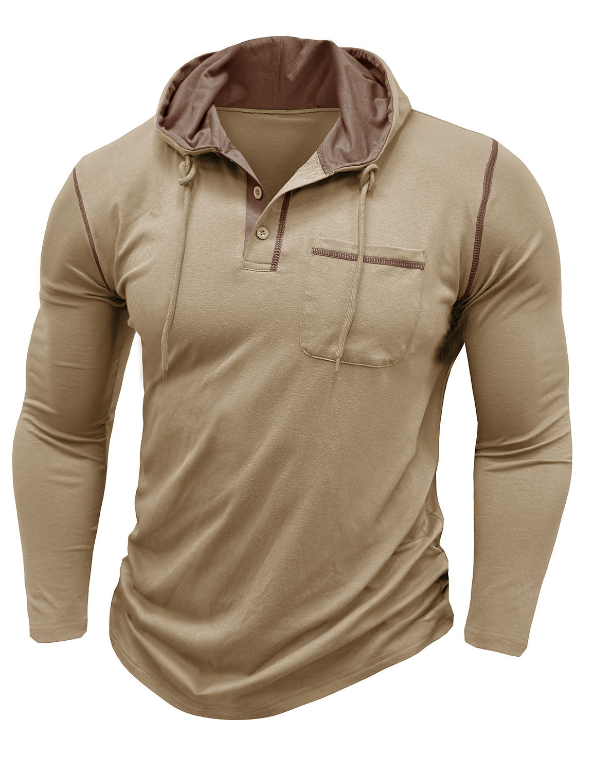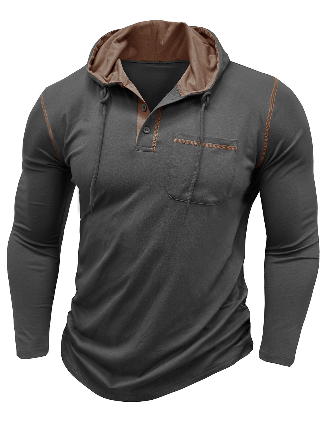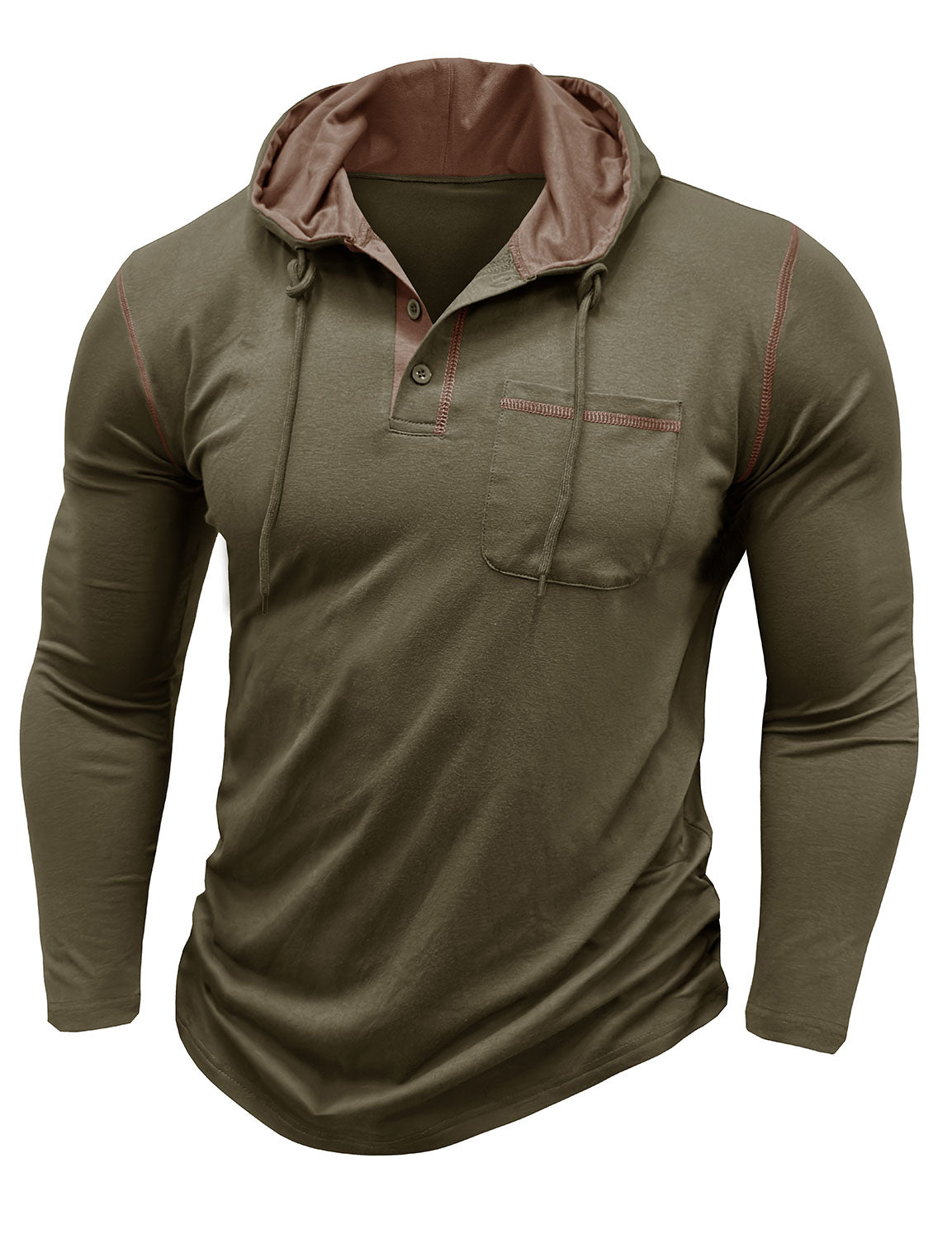 Chemise Henley décontractée à manches longues et capuche pour homme, couleur unie