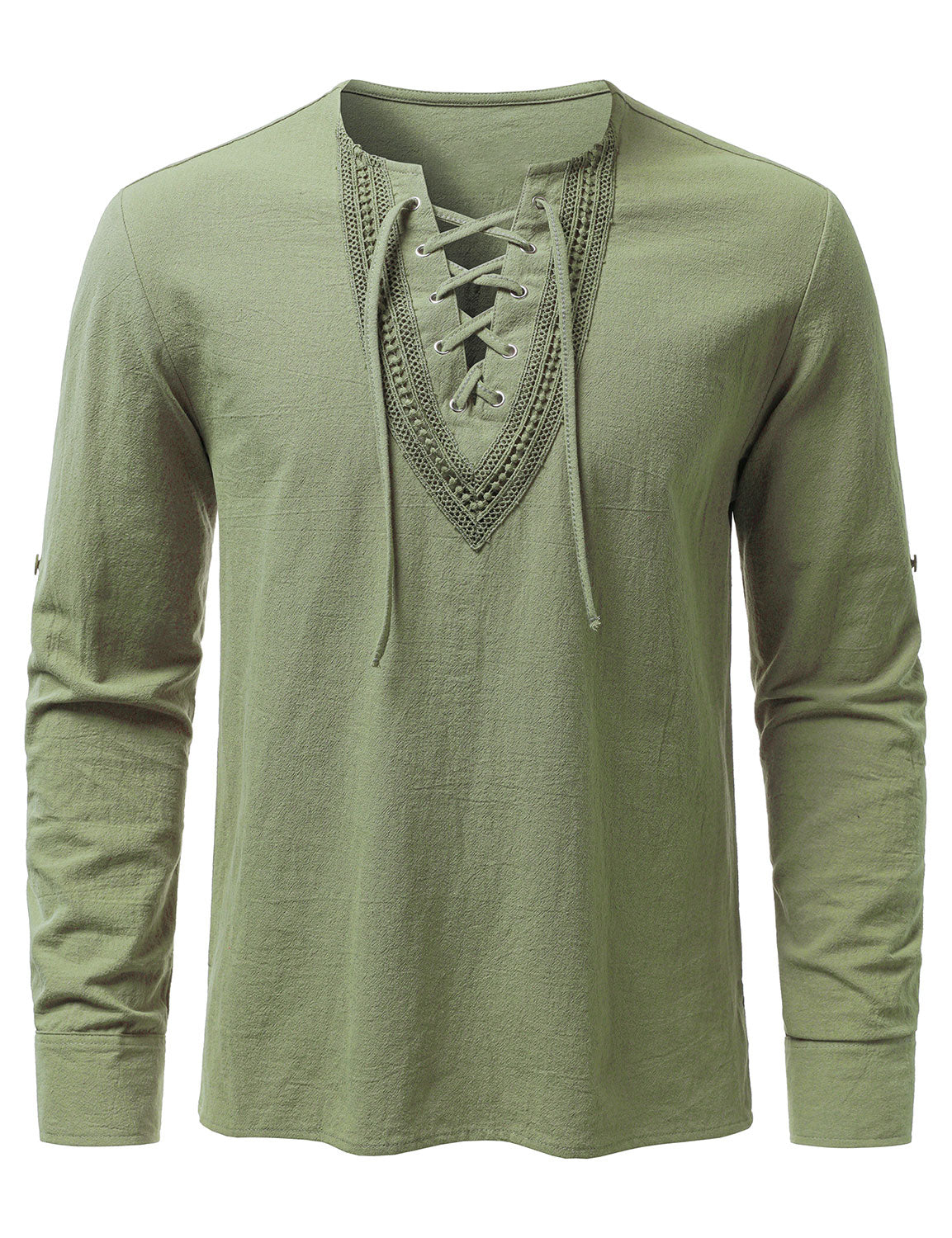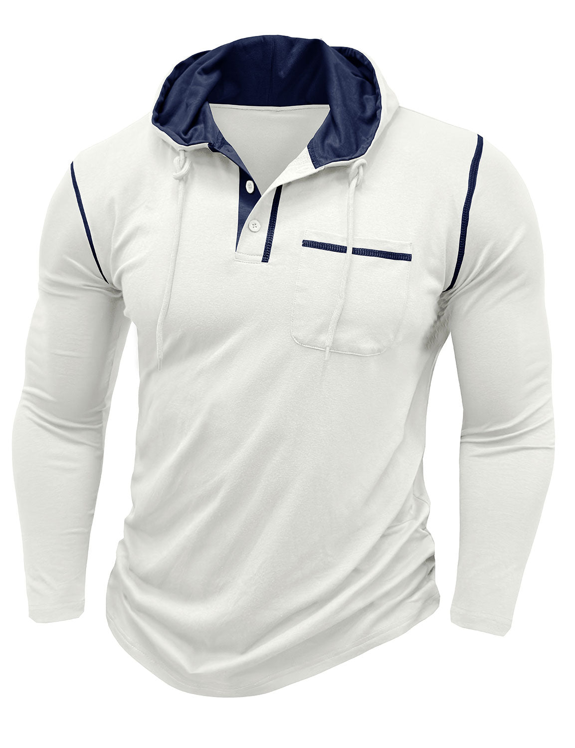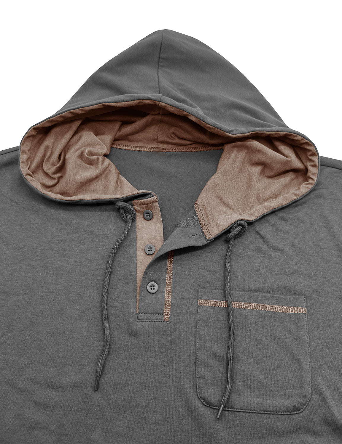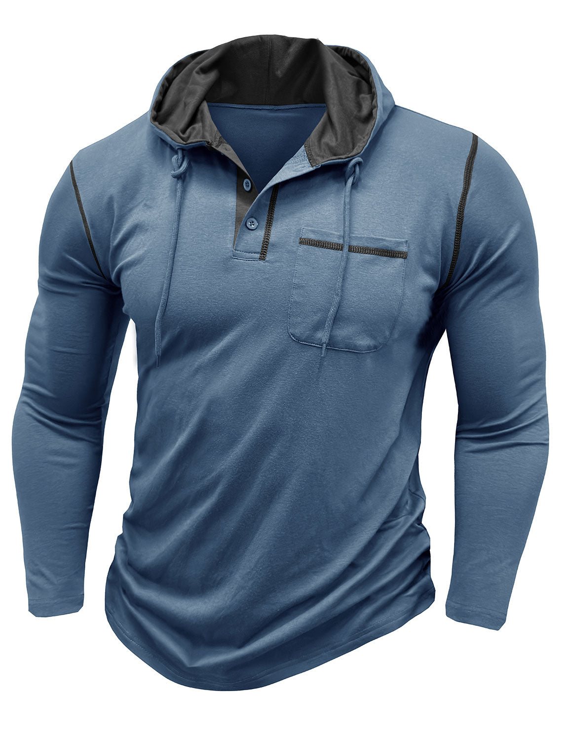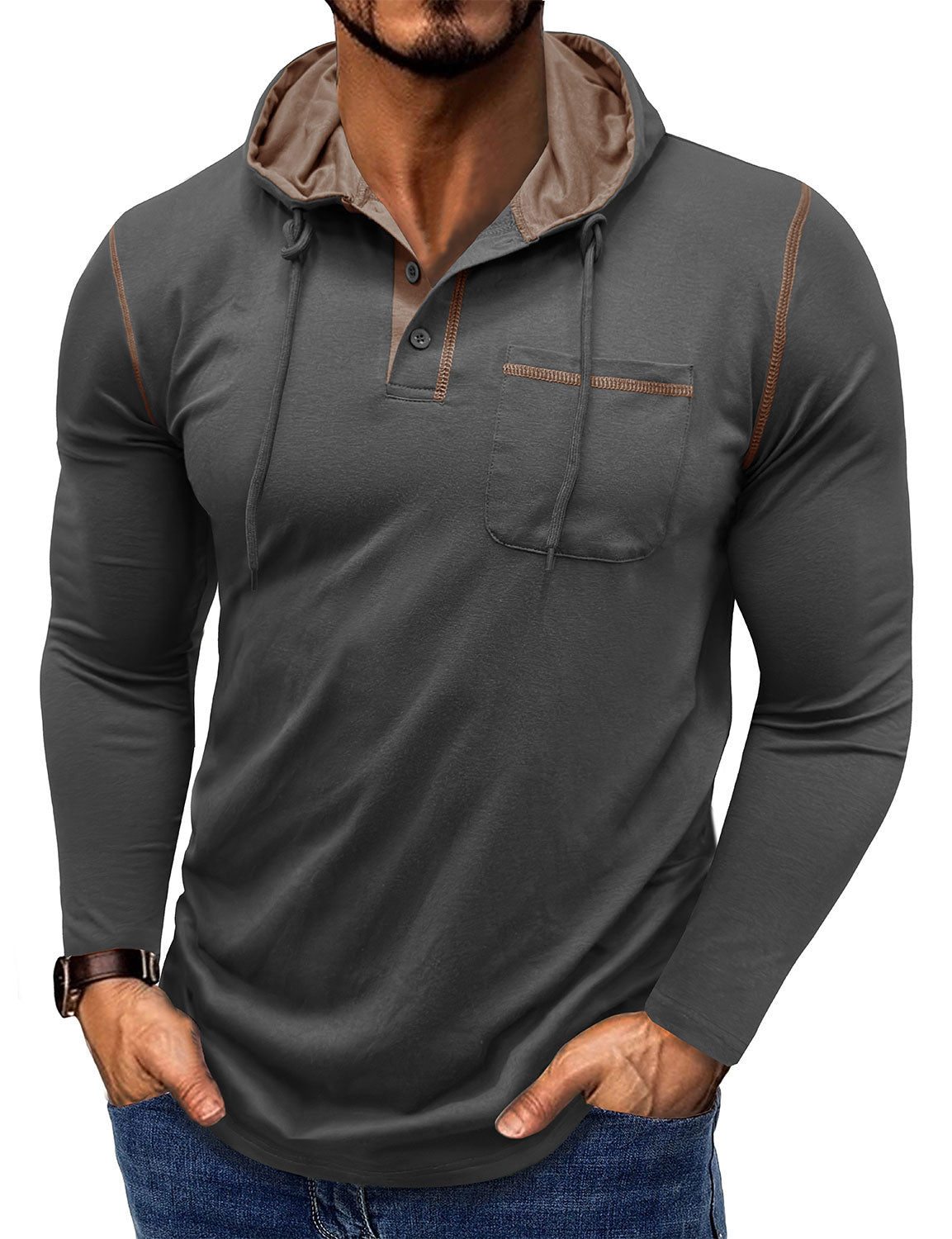 Chemise Henley décontractée à manches longues et capuche pour homme, couleur unie